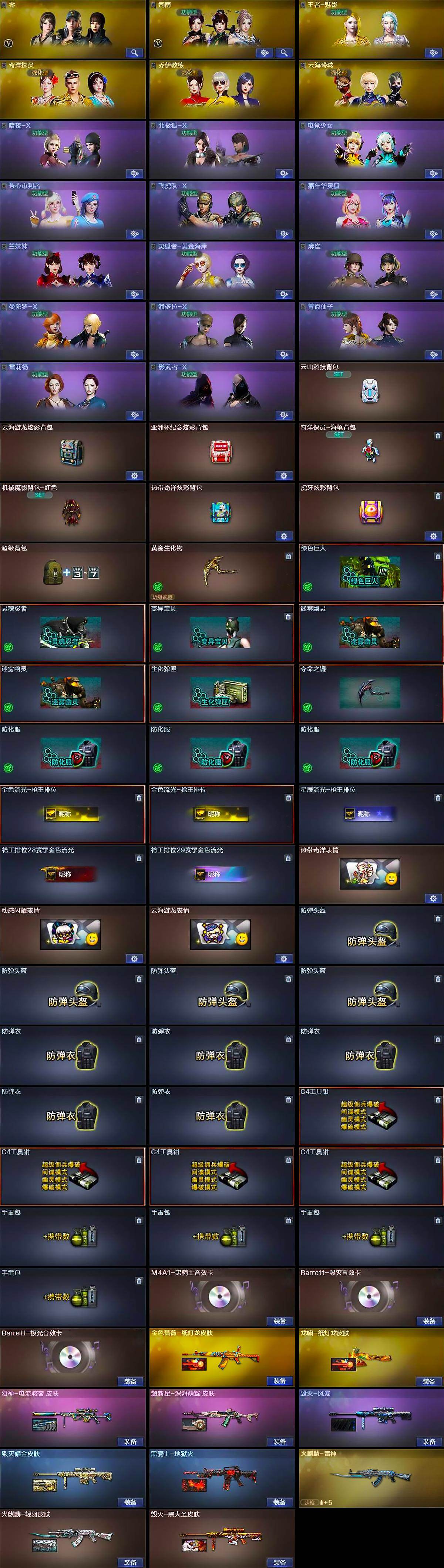 [16481559]河北一区-40v-1王者武器数-1炫金武器数 【热门武器】:q03-金色蔷薇,m4a1-青龙,m200-幻神,m4a1-黑骑士,汤姆逊-烈龙3,加特林-炼狱2,沙鹰-修罗 【王者炫金武器】:王者之力,炫金毁灭 【音效卡】:m4a1-黑骑士音效卡,barrett-毁灭音效卡,barrett-极光音效卡 【皮肤】:幻神-电流骇客 皮肤,金色蔷薇-纸灯龙皮肤,火麒麟-雷神,火麒麟-轻羽皮肤,毁灭耀金皮肤,毁灭-黑大圣皮肤,毁灭-风暴,黑骑士-地狱火,超新星-深海萌鲨 皮肤,龙啸-纸灯龙皮肤 【角色】:零,司雨,王者-魅影,奇洋探员,乔伊教练,云海玲珑,暗夜-x,北极狐-x,电竞少女,芳心审判者,飞虎队-x,嘉年华灵狐,兰-新年限定,兰妹妹,灵狐者-黄金海岸,麻雀,曼陀罗-x,潘多拉-x,青霞仙子,兔囡囡,雪莉杨,影武者-x 【人偶武器】:天龙-乔伊教练,awm-灵狐-15周年嘉年华,迷你深渊冰龙,迷你裂空之翼2,迷你牛魔王,迷你波特博士,迷你火种,生化手蕾-机甲核心 【暴走生化】:超级对讲机 【挑战大师】:冰龙粉碎者-白马银呛,激光毁灭者iii-白马银呛,vepr-12-金魔,机甲撕裂者iii,神圣爆裂者-末日iii,阐释者iii 【英雄级武器】:ak47-火麒麟,m4a1-雷神,m4a1-黑骑士,ak12-天启,m4a1-青龙,无影-神兵利器,黑武士-锦绣游龙,超新星-热带奇洋,q03-金色蔷薇,烈火-动感闪耀,barrett-毁灭,barrett-极光,awm-裁决,m200-幻神,加特林-炼狱2,汤姆逊-烈龙3,烈龙-云海游龙,沙鹰-修罗,沙鹰-天神,天神-动感闪耀,修罗-云海游龙,屠龙,龙啸,麒麟刺,幻灵之锋,屠龙-动感闪耀,擎天-云海游龙,龙啸-热带奇洋,高爆手蕾-幻灵,手蕾-动感闪耀,手蕾-云海游龙,手蕾-热带奇洋,闪光丹-幻灵,盐雾蛋-幻灵2,盐雾蛋-云龙,m4a1-赤狱骑士 【道具】:云山科技背包,云海游龙炫彩背包,亚洲杯纪念炫彩背包,奇洋探员-海龟背包,机械魔影背包-红色,热带奇洋炫彩背包,虎牙炫彩背包,超级背包,黄金生化钩,绿色巨人,灵魂忍者,变异宝贝,迷雾幽灵2,生化弹匣,夺命之镰,防化服3,金色流光-呛王排位2,星辰流光-呛王排位,呛王排位28赛季金色流光,呛王排位29赛季金色流光,热带奇洋表情,动感闪耀表情,云海游龙表