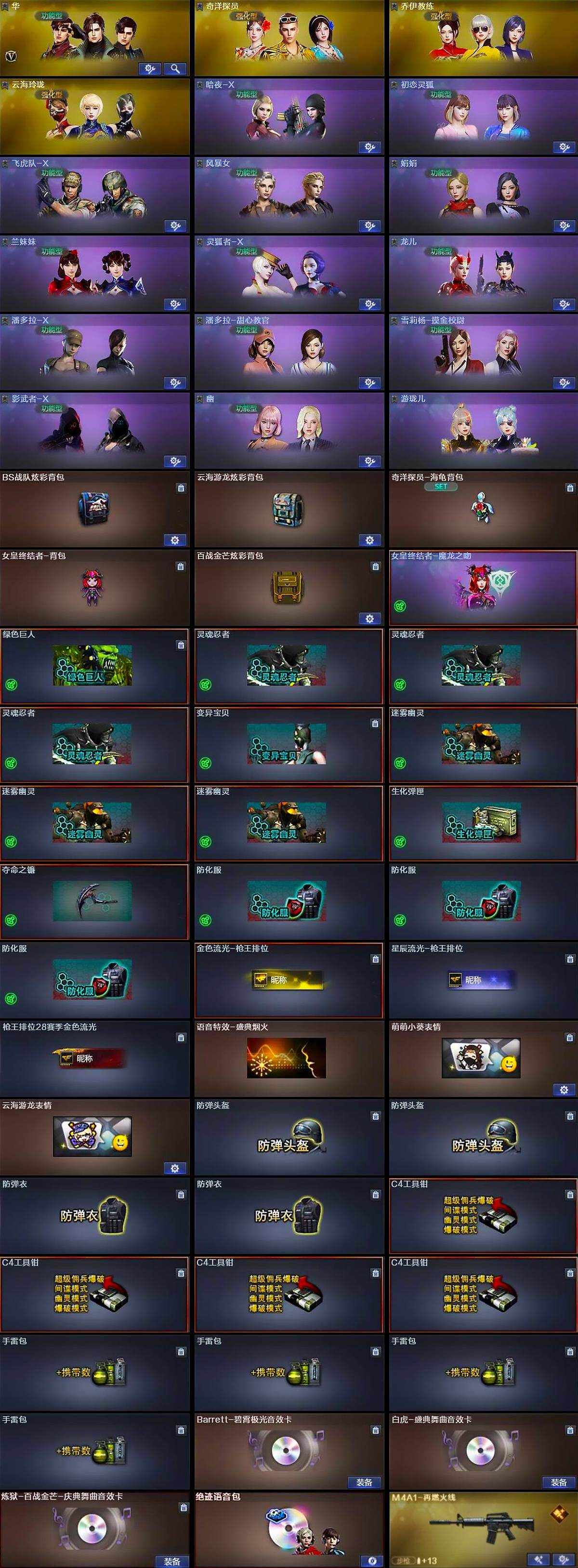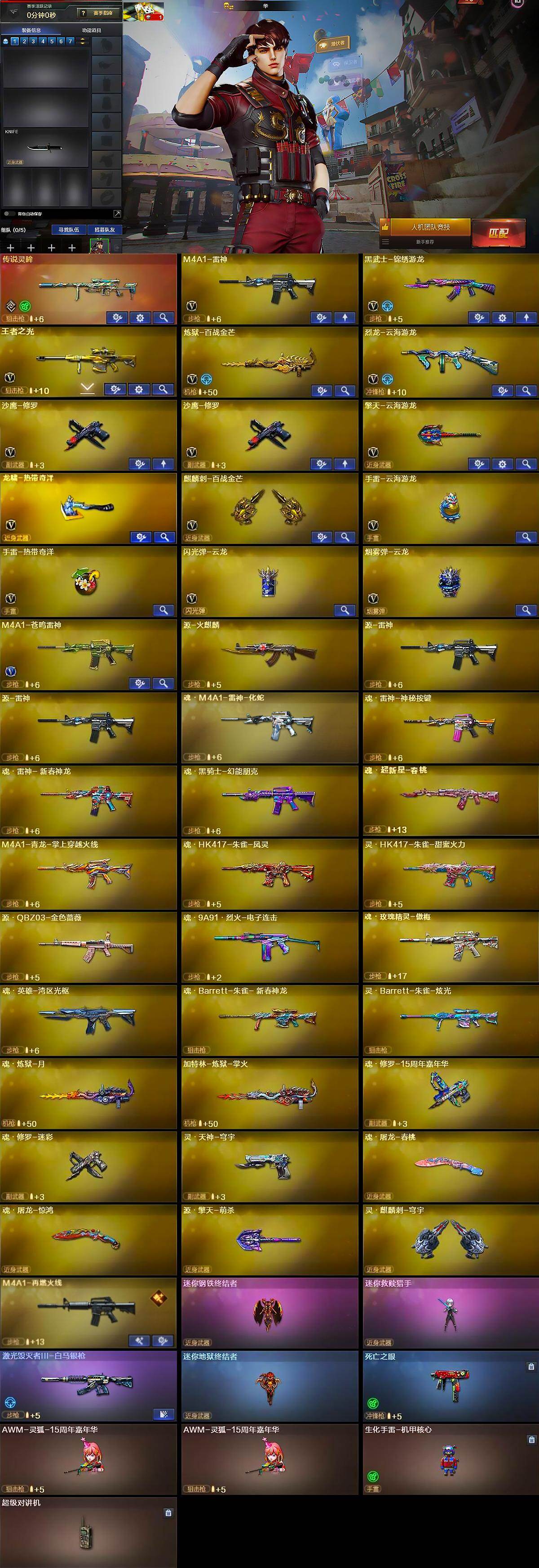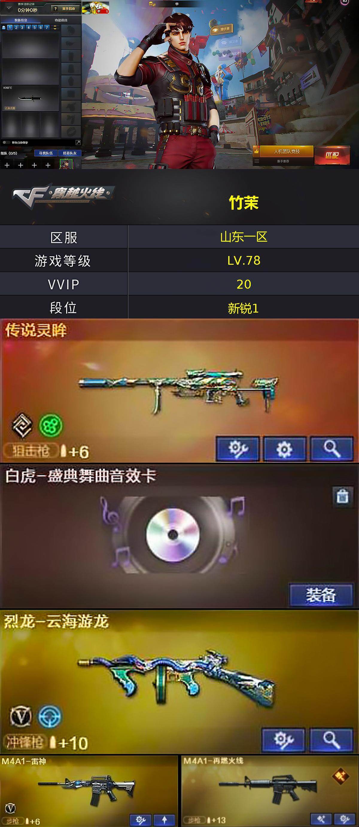 山东一区-20v-1王者武器数-0炫金武器数 【传说武器】:传说灵眸 【热门武器】:传说灵眸,死亡之眼,金色小号,羊驼玩偶,沙鹰-修罗2 【音效卡】:scar light-白虎-热带奇洋音效卡,绝迹语音包,barrett-碧霄极光音效卡,白虎-盛典舞曲音效卡,炼狱-百战金芒-庆典舞曲音效卡 【皮肤