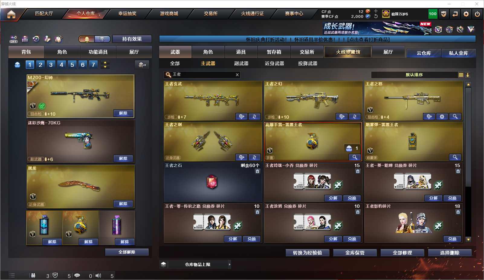 077-CF4519 【山西一区】【可二次】【可排位】 55v 4王者 4炫金 【重要角色】葵/雨棠/战地猎狐/幻面灵狐/葵-阿尔法武装/修道士/代号:翼/铁扇公主/奇洋探员/乔伊教练/铁骑荣耀/灵狐者-黄金海岸 【英雄武器】M200-幻神/Barrett-毁灭/Barrett-暗月传说2/王者之怒-觉醒版/AWM-天龙/AWM-裁决/M4A1-雷神2/M4A1-黑骑士/黑骑士-海王/_Scar Light-白虎/白虎-电玩蓝兔/AK47-火麒麟/无影-神兵利器/AK-47-猩红传说2/QBZ03-金色蔷薇/烈火-动感闪耀/汤姆逊-烈龙/AA-12-雷霆/天神-动感闪耀/沙鹰-天神/沙鹰-修罗/龙啸2/擎天/屠龙-动感闪耀/屠龙3/手雷-动感闪耀/高爆手雷-竞技荣光2/烟雾弹-竞技荣光2/烟雾弹-雷霆王者-觉醒版/闪光弹-竞技荣光/Glock18-雪夜奇缘/手雷-雪夜奇缘/HK417-朱雀-电竞之星/QBZ03-独角-I/机械迷城-穹宇/金色蔷薇-古蛇迷踪/超新星-热带奇洋/黑武士-锦绣游龙/魂·QBZ03-金色蔷薇-古蛇迷踪/Barrett-碧霄极光/炼狱-百战金芒/修罗-古蛇迷踪/屠龙-电竞之星/麒麟刺-百战金芒/龙啸-热带奇洋/唐刀-古蛇迷踪/手雷-热带奇洋/高爆手雷-古蛇迷踪/烟雾弹-古蛇迷踪 【王者武器】王者玄武/王者之幻/王者之刺/高爆手雷-雷霆王者 【小人枪】火麒麟-零·纪元2/M4A1-雷神-精英刀锋/HK417-朱雀-蛇隐宗/C.A.T/天龙-乔伊教练/M82A1-水枪-不败狙神/海滩汪汪-巴雷特/AWM-灵狐-15周年嘉年华/KAC锯式机枪-黑桃战神/COP-白鲨/COP-旗袍/冰火魔兽3/魔能飞环-曼陀罗 【其他重要武器】炫金无影/炫金雷神/炫金武士/炫金骑士【重要武器皮肤】幻神-AG-CFPL S24冠军 皮肤/幻神-曹操 皮肤/毁灭-英雄计划 皮肤/毁灭-墨兰皮肤/毁灭-暗月/巴雷特SV皮肤/天龙-能量核心/火麒麟-CFSTAR/火麒麟-巅峰荣耀/AK47-B-常胜将军-孙权/AK-47-雷神/雷神-神秘按键 皮肤/雷神-R.LGD-CFPLS18冠军/雷神-能量核心/雷神-CFS十周年纪念版 皮肤/金色蔷薇-电竞之星 皮肤/金色蔷薇-纸灯龙皮肤/白虎-电玩粉兔皮肤/战神-流金岁月皮肤/修罗-星空/修罗-CFSTAR/龙啸-巅峰荣耀 皮肤 【重要音效卡】M4A1-雷神音效卡/M4A1-黑骑士音效卡/炼狱-百战金芒-庆典舞曲音效卡 等等装备和皮肤~ 截图展示段位不代表实际段位,如赛季更新等不可抗拒因素发生变化、时限道具不保证所剩时间,其余道具看截图或咨询客服 【小述账号 安全无忧】