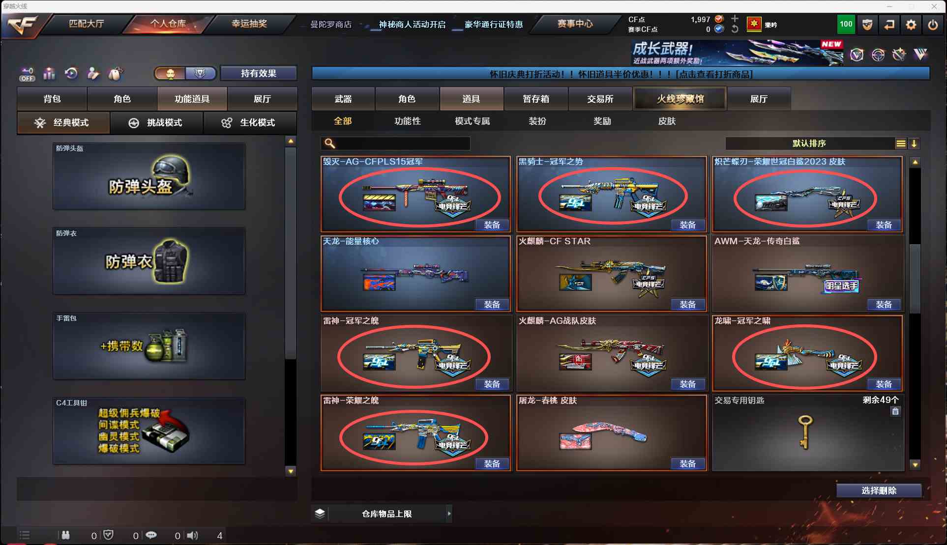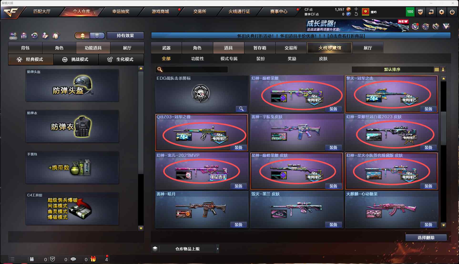 2096 北方大区 幻神四皮【幻神星火小队珍藏版皮肤-宠儿 2021mvp荣耀世冠白沙皮肤-巅峰荣耀皮肤】【幻灵投掷物7套】【炽芒蝶刃-荣耀世冠2023皮肤】【冠军之刃】【98k星神-巅峰荣耀皮肤】【qbz金色蔷薇-冠军之微】【白虎】【荣耀世冠】手枪【冠军之特-cop幻灵x2】【四防影豹】皮肤【擎天冠军之击-毁灭AGcfpls15冠军-雷神冠军之魂-龙啸冠军之啸-雷神荣耀之魄】