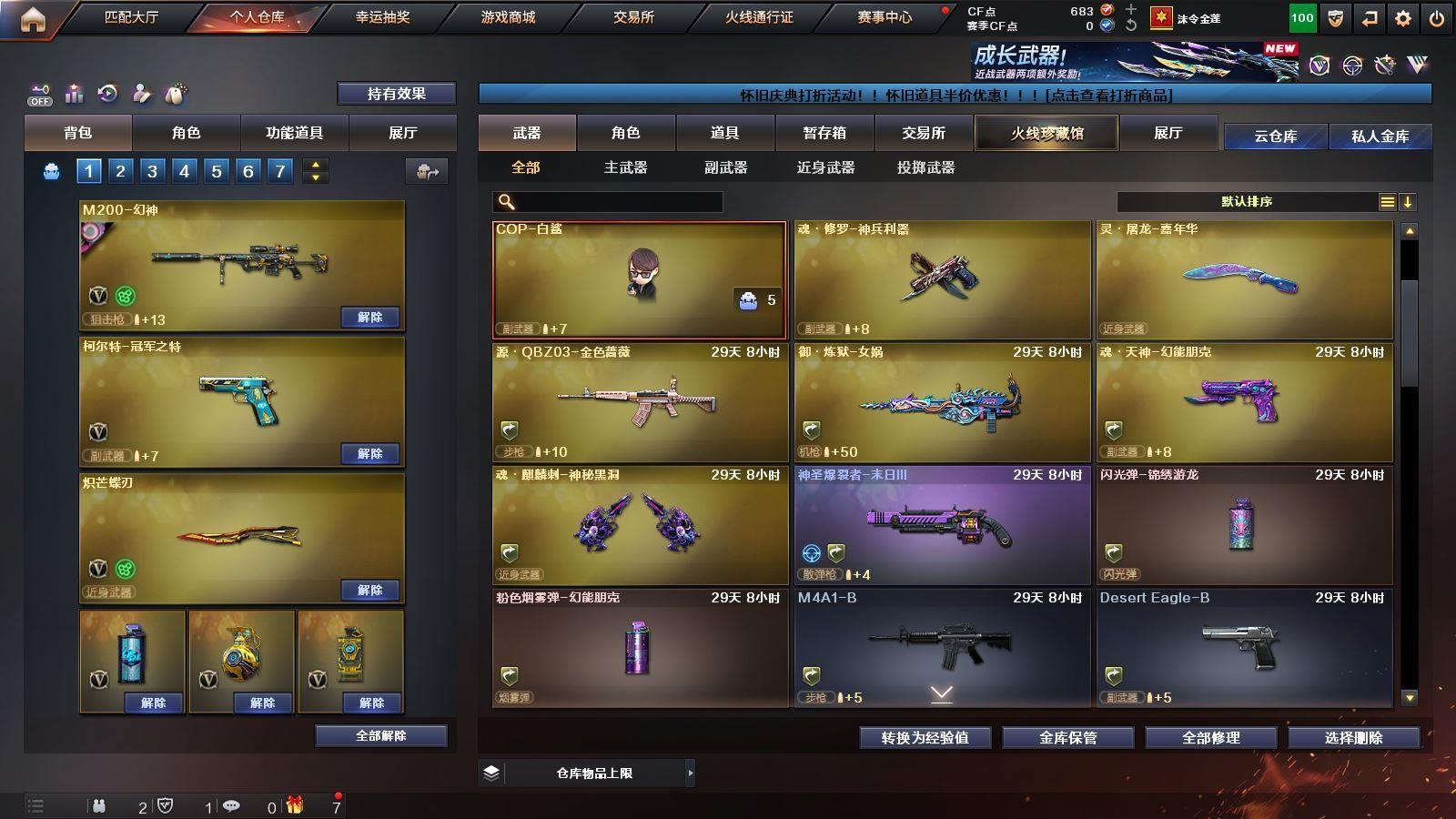 CFD539644号【福建一区】vip6 90V 【幻神三皮三件套!!!】 【M200幻神幻神音效卡宠儿皮肤N92022MVP皮肤荣耀世冠白鲨皮肤冠军之特炽芒蝶刃4防传说影煞】 【98k星神冠军之星皮肤巅峰荣耀皮肤usp雷暴4防荒漠琉璃】 【白虎白虎之魄】 【qbz03金色蔷薇金色蔷薇音效卡热带奇洋皮肤】【竞技荣光套装】 【王者火魄 王者之武 王者蔷薇】 【雷神雷神音效卡CFPLS18冠军皮肤荣耀之魄皮肤】 【火麒麟冠军之心】 【黑骑士】【黑龙黑龙音效卡冠军之武皮肤】【毁灭冠军之怒】 【青龙 玄武 无影神兵利器 锦绣游龙 热带奇洋 烈火动感闪耀 天龙 2烈龙】——【usp雷暴 冠军之特 沙鹰修罗 天神动感闪耀 王者之灵】——【炽芒蝶刃 屠龙 龙啸 麒麟刺 战神刀雷暴 擎天竞技荣光 屠龙动感闪耀 擎天云海游龙 龙啸热带奇洋 雷霆王者之锋 龙啸烈火龙威】——【雷暴投掷武器套装4 幻灵投掷武器套4 竞技荣光投掷武器套装】——【热门武器/小人枪】【毁灭孙三炮 cop白鲨 斯泰尔蝴蝶】——【角色】【4防(传说影煞 荒漠琉璃 王者潘多拉】【魅影 王者瞳闭月羞花】