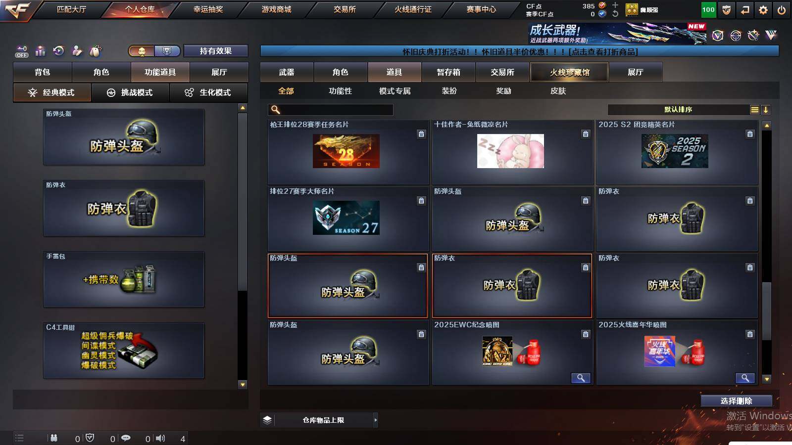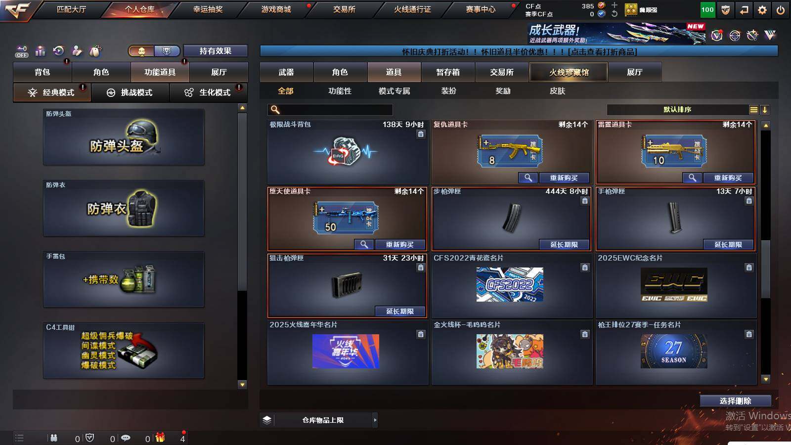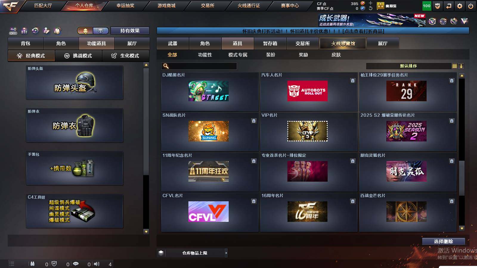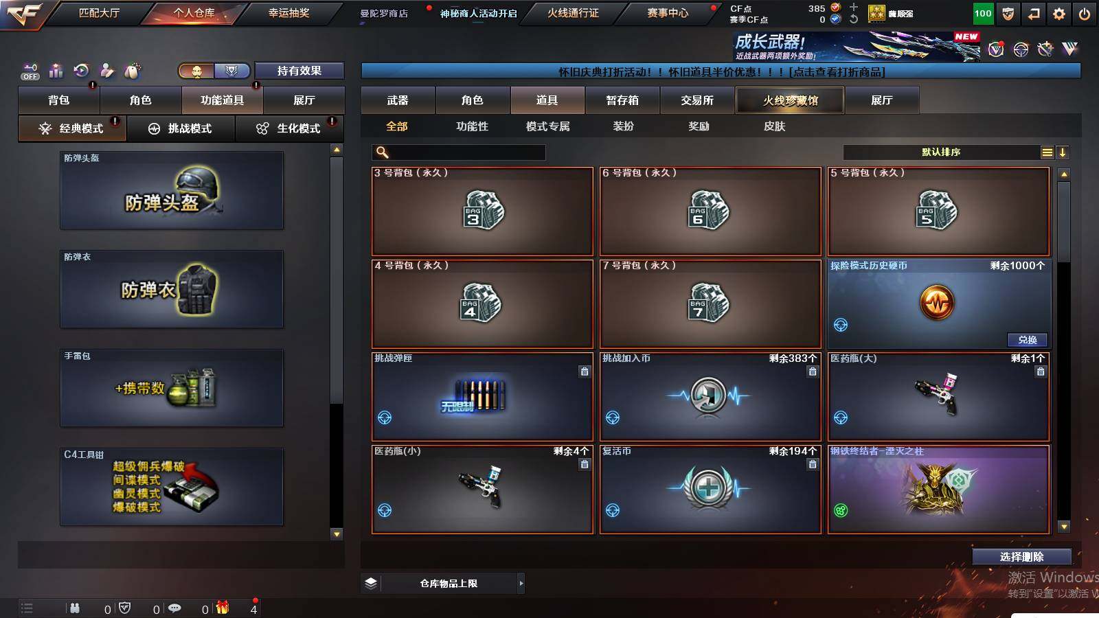黑龙江区-20v 【热门武器】:沙鹰-修罗2 【音效卡】:barrett-碧霄极光音效卡,白虎-盛典舞曲音效卡,炼狱-百战金芒-庆典舞曲音效卡 【皮肤】:m4a1-再燃火线,轻型军用手斧-再燃火线 【角色】:玄豹,暗夜-x,飞虎队-x,风暴女,荆棘玫瑰,潘多拉-x,樱-战斗天使,游珑儿 【人偶武器】:迷你钢铁终结者,加特林-机械猎手,awm-灵狐-15周年嘉年华,生化手蕾-机甲核心2,灵狐