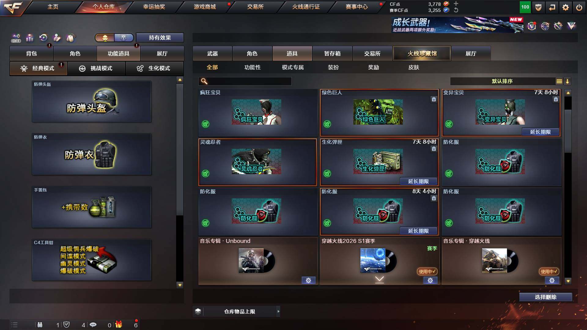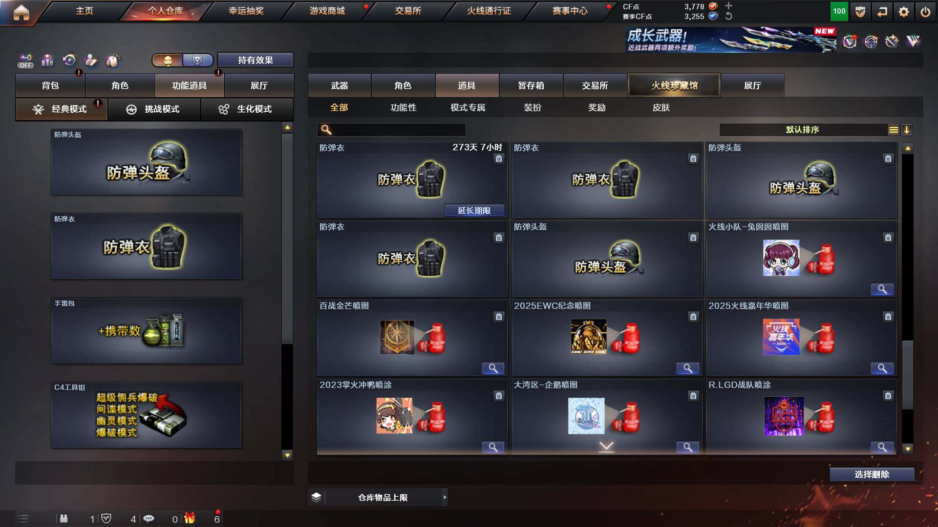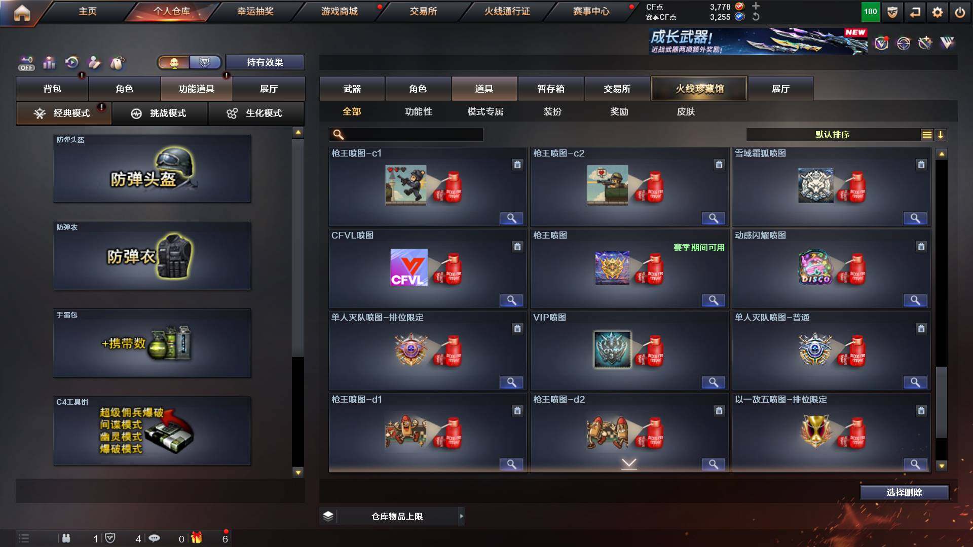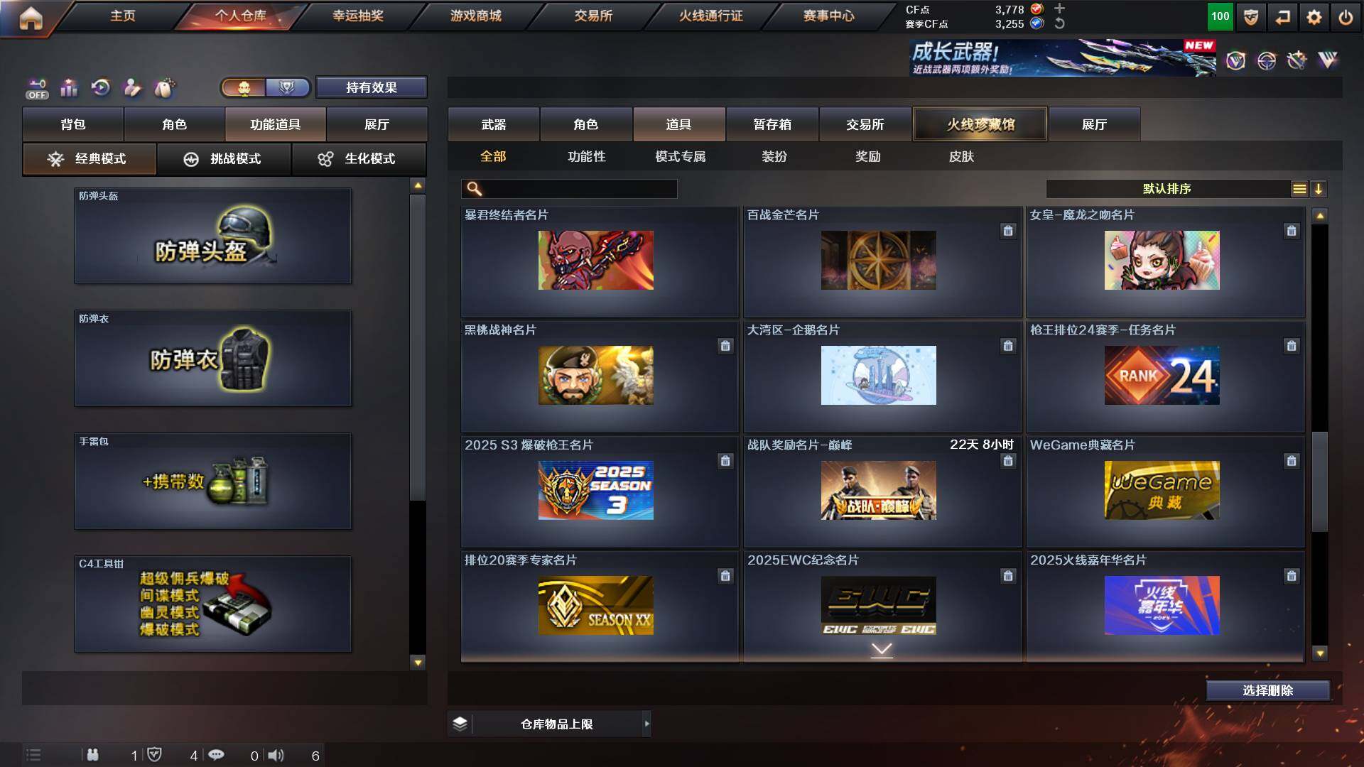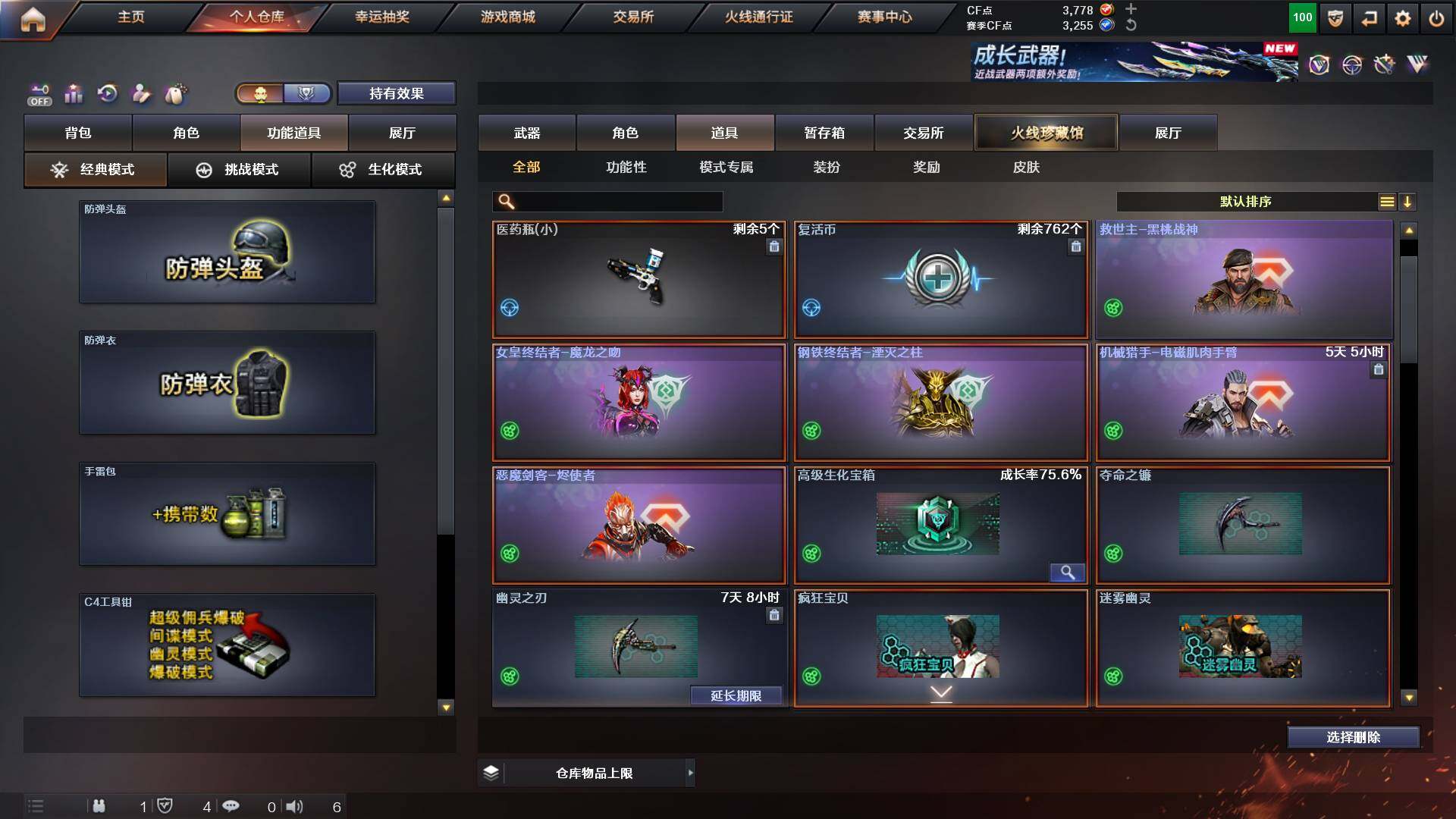 吉林一区-42v-4王者武器数-0炫金武器数 【热门武器】:m200-幻神,m200-竞技荣光,m4a1-黑骑士,usp-雷暴 【音效卡】:m200-幻神音效卡,q03-天罚音效卡,barrett-碧霄极光音效卡,白虎-盛典舞曲音效卡,炼狱-百战金芒-庆典舞曲音效卡,死神-雪域霜狐-怀旧音效卡 【皮肤】:白虎-百战金芒 皮肤,m4a1-战神赵云,雷神-机甲刑天皮肤,雷神-宇航兔皮肤,m4a