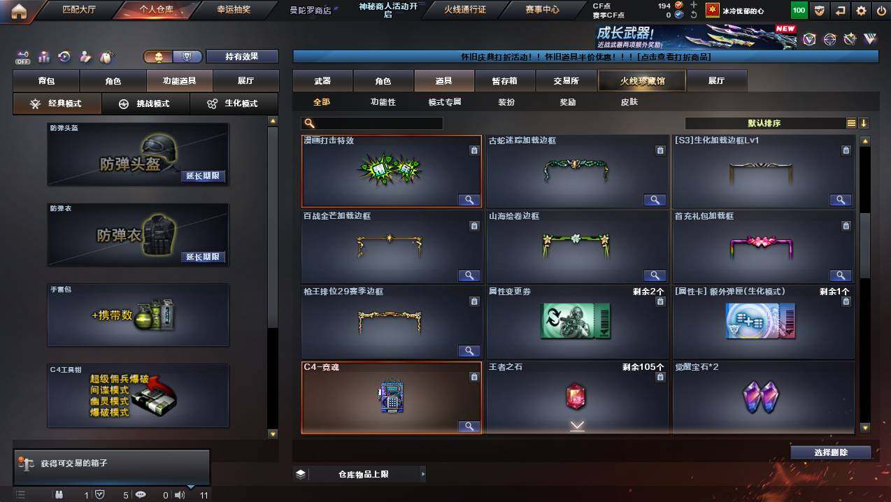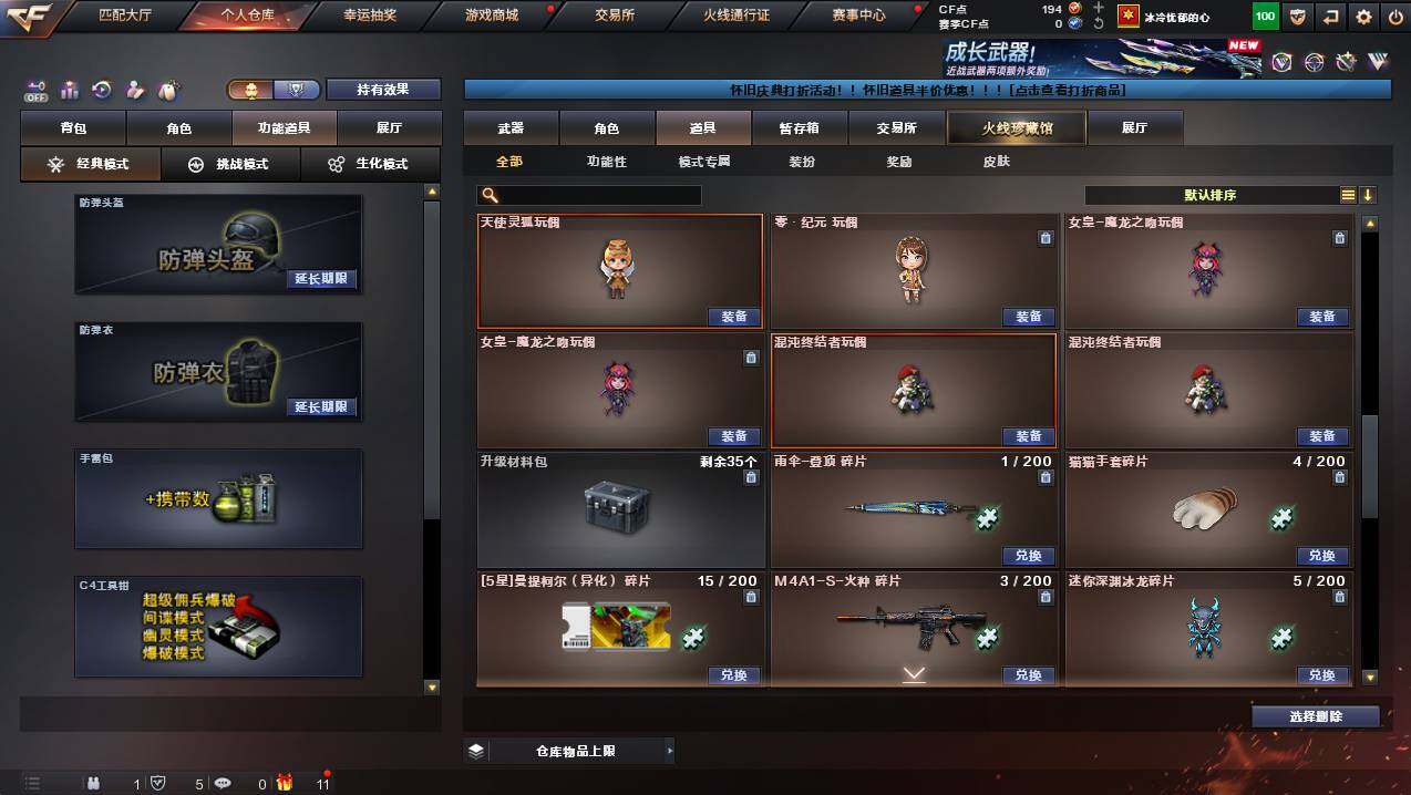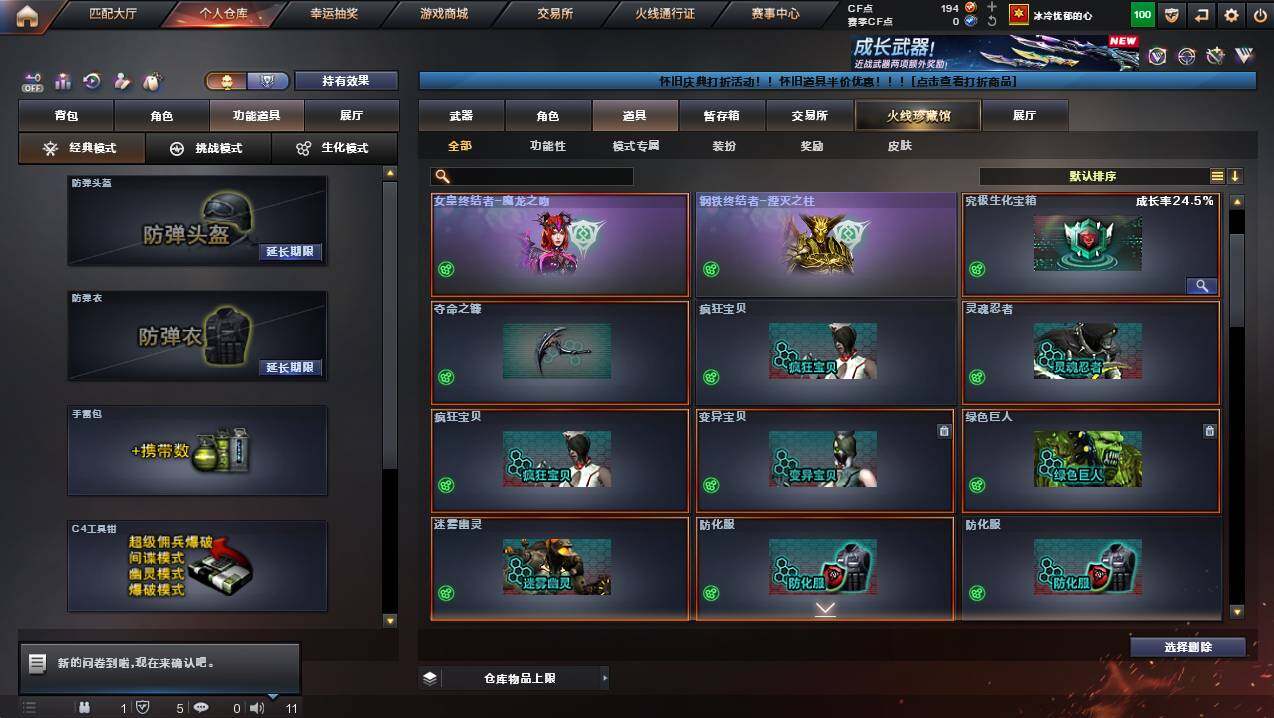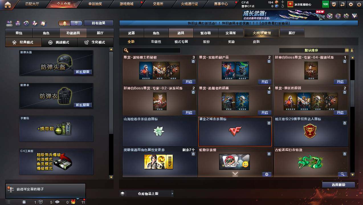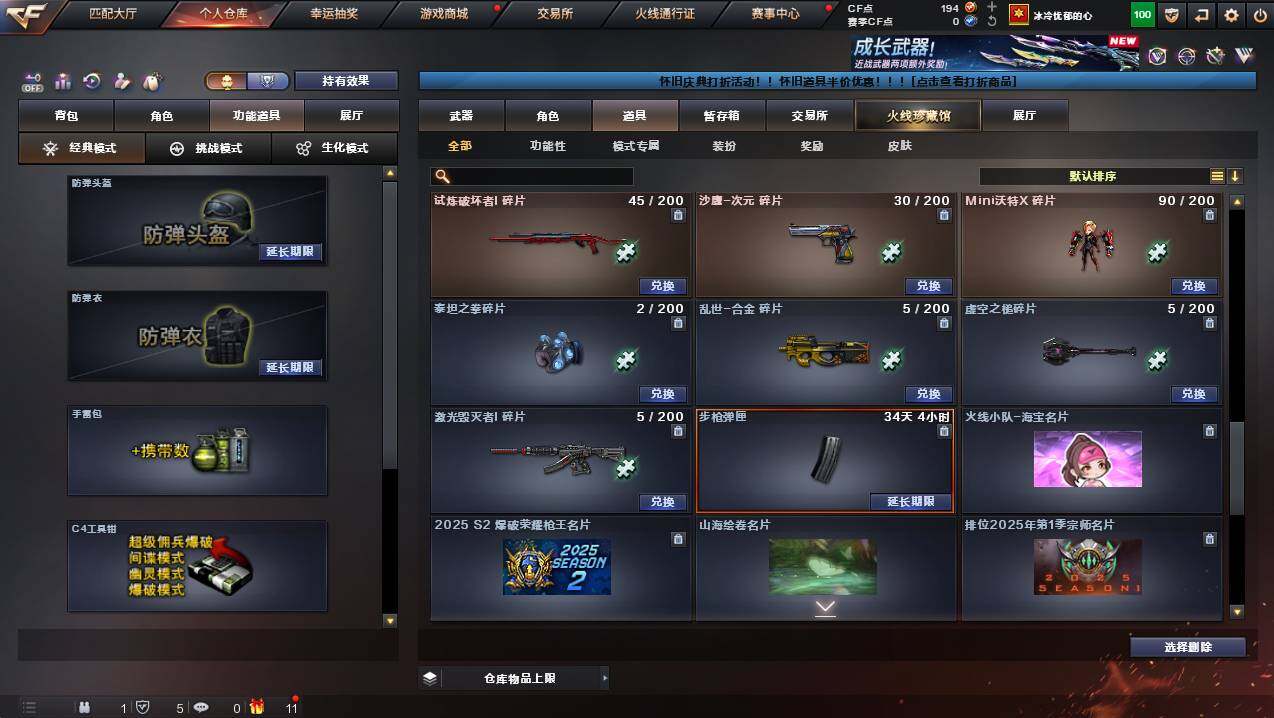 浙江一区-25v-2王者武器数-0炫金武器数 【传说武器】:传说夜影 【热门武器】:传说夜影,g36c-幻影,m200-幻神,柯尔特-荣耀世冠白鲨2023,金色蔷薇-古蛇迷踪,修罗-古蛇迷踪,八面凌龙,汤姆逊-烈龙 【王者炫金武器】:王者星光,王者之霆 【皮肤】:幻神-ag-cfpls17冠军,裁决-流光秘银,毁灭-巅峰荣耀 皮肤,黑骑士-ag-s4冠军典藏2,八面凌龙-封心寒雪 皮肤,aw