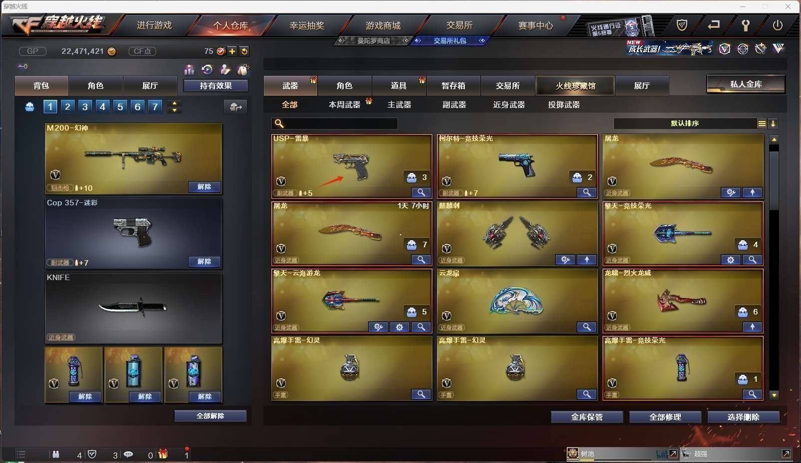 CFD540560号湖南一区62v vip4【m200幻神usp雷暴】【m200竞技荣光套装电竞教官云悠悠】【qbz03金色蔷薇荣耀世冠白鲨皮肤】【m4a1幻灵】【雷神lgd冠军皮肤】【王者冰魄】【毁灭 火麒麟 雷神 超新星 黑鲨 黑龙 玫瑰精灵 黑武士锦绣游龙 无影神兵利器 裁决 天龙 极光 烈龙】——【热门武器/小人呛】【裁决雪莉杨 cop白鲨 牛牛ak 】——【usp雷暴 柯尔特竞技荣光 天神 修罗】——【麒麟刺 擎天竞技荣光 屠龙 云龙扇 擎天云海游龙 龙啸烈火龙威】——【幻灵投掷武器套装竞技荣光投掷武器套装7】——【角色】【4防(电竞教官云悠悠 五号兵器赛博朋克 )】【荒漠琉璃 隼 影豹】【云海玲珑】