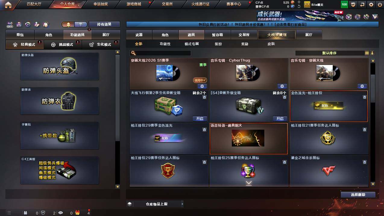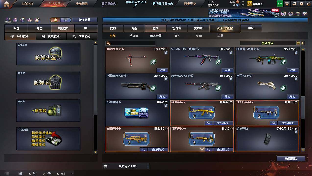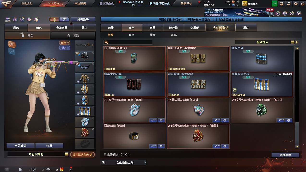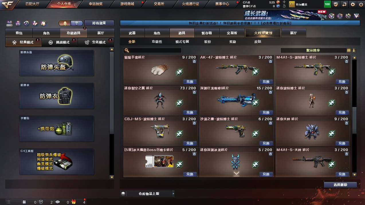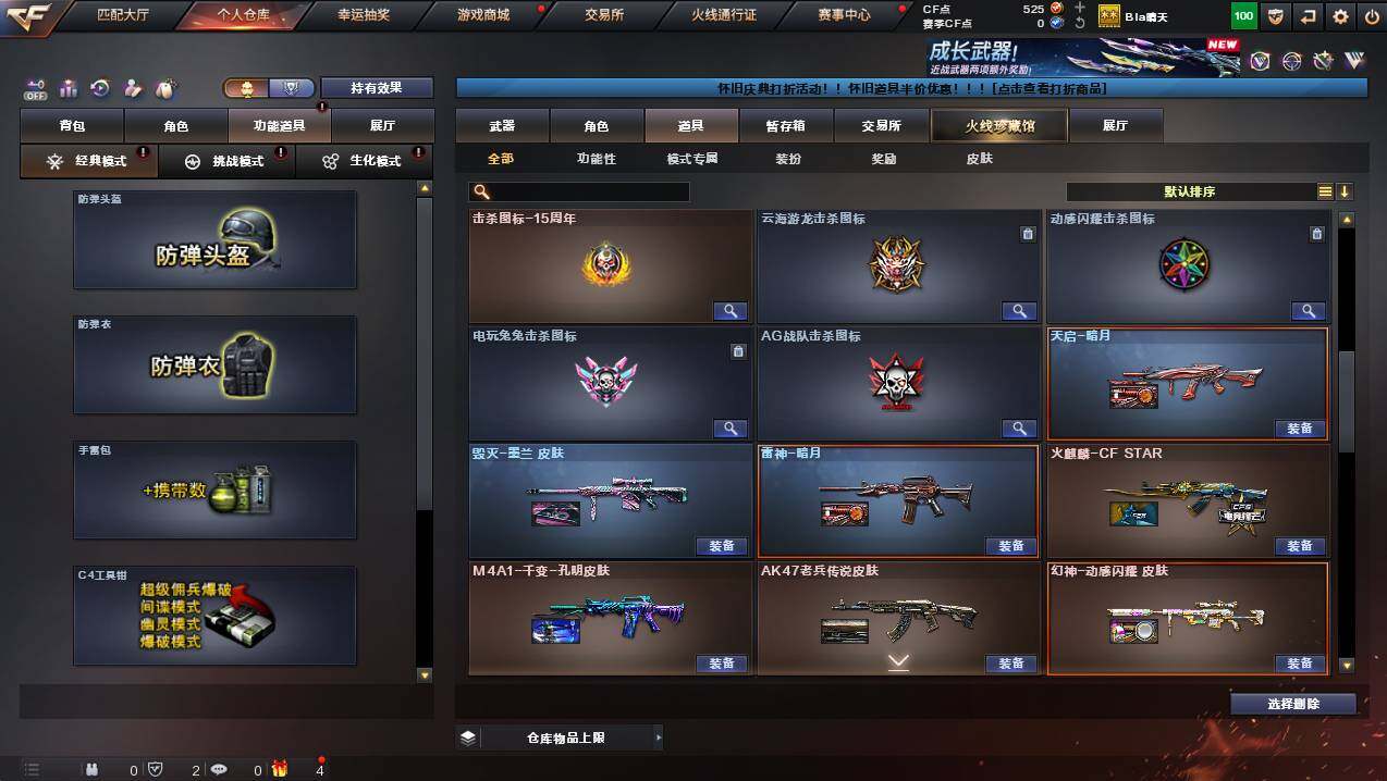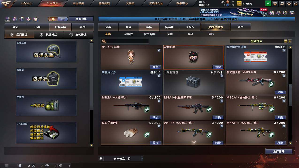 江西一区-7v-1王者武器数-0炫金武器数 【热门武器】:王者白虎,m200-幻神 【王者炫金武器】:王者白虎 【音效卡】:m4a1-黑龙音效卡,炼狱-百战金芒-庆典舞曲音效卡 【皮肤】:幻神-动感闪耀 皮肤,雷神-暗月,m4a1-再燃火线,m4a1-千变-孔明皮肤,天启-暗月,轻型军用手斧-再燃火线 【角色】:云海玲珑,暗夜-x,嘉年华灵狐,疾风,娟娟,麻雀,潘多拉-x,潘多拉-甜心教官,潜