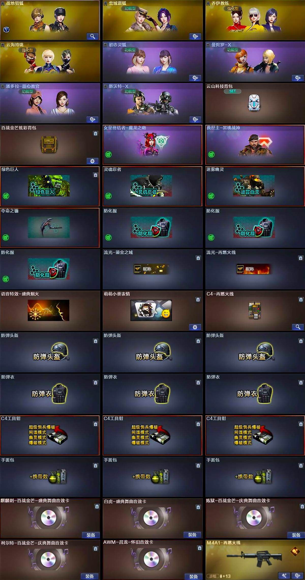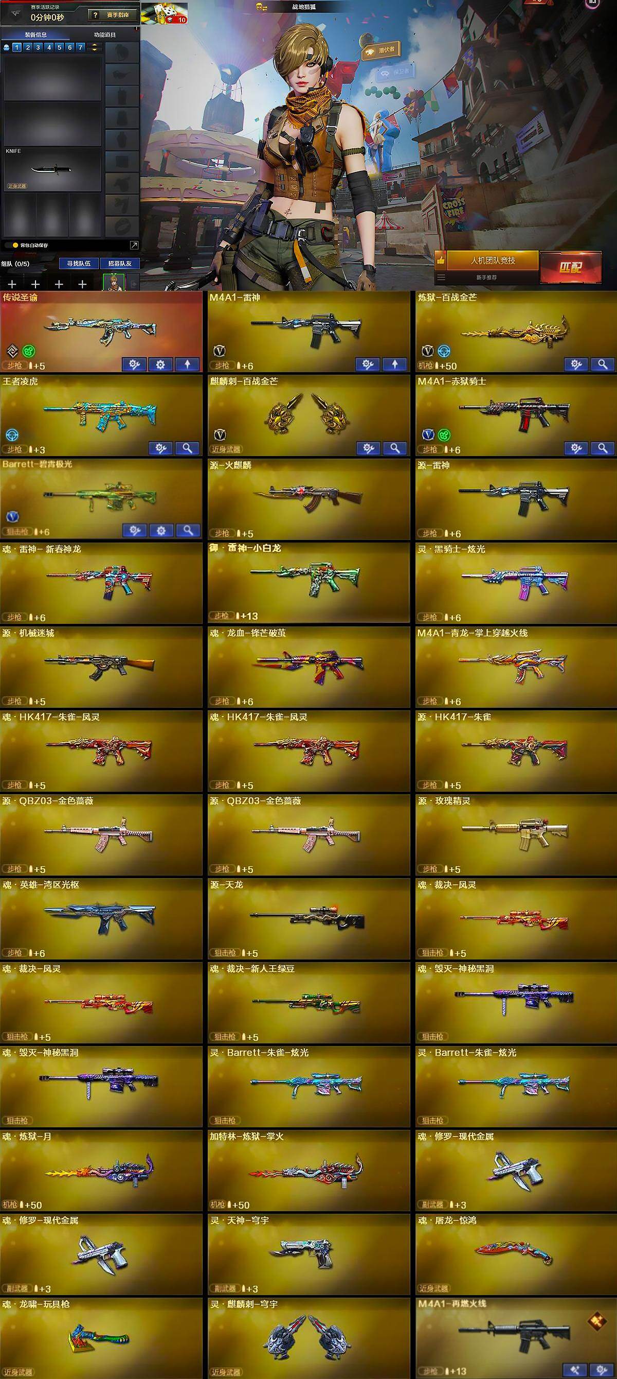 四川一区-13v-1王者武器数-0炫金武器数 【传说武器】:传说圣谕 【热门武器】:传说圣谕 【王者炫金武器】:王者凌虎 【音效卡】:麒麟刺-百战金芒-盛典舞曲音效卡,白虎-盛典舞曲音效卡,炼狱-百战金芒-庆典舞曲音效卡,柯尔特-百战金芒-庆典舞曲音效卡,awm-昌龙-怀旧音效卡 【皮肤】:m4a1