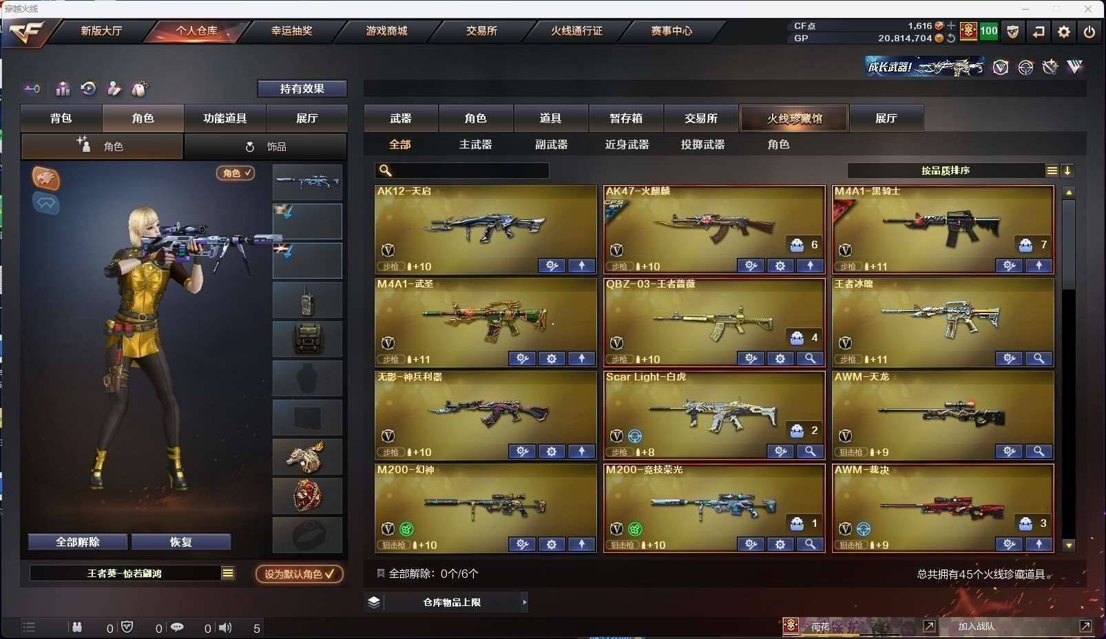 CFD541630号重庆一区 33v vip1【m200幻神usp雷暴】【m200竞技荣光套装】【白虎白虎热带奇洋音效卡】【qbz王者蔷薇】【王者冰魄】【黑骑士黑骑士音效卡】【天启 火麒麟 武圣 无影-神兵利器 天龙 裁决 悦蓝惊涛骇浪 烈龙2】——【热门武器/小人呛】【awm灵狐15周年嘉年华】——【usp雷暴 glock18武圣 柯尔特竞技荣光2 修罗2】——【龙啸 擎天竞技荣光 屠龙】——【竞技荣光投掷武器套装2】——【角色】【4防王者葵惊若翩鸿】【审判者】【奇洋探员】