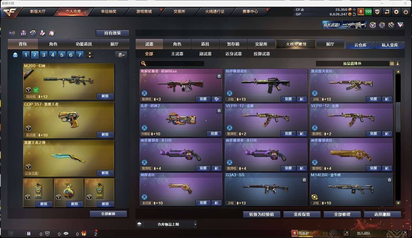 CFD542196号江苏一区 vip6 128v【m200幻神黄忠皮肤】【98k星神】【6盘龙6烈龙2炼狱斯泰尔蝴蝶斯泰尔死亡之眼】【雷霆王者套装】【夜魔套装】【qbz03金色蔷薇qbz03云龙】【黑骑士黑骑士音效卡】【雷神雷神音效卡传奇n9皮肤】【毁灭呛娘格雷姐妹皮肤】【黑武士cf网剧冠军武器套装】【王者火魄 王者炎心】【王者之魄 王者之光 王者之城 王者之势 王者之武】【朱雀】【烈火 天启 常胜将军 身先士卒 黑鲨 火麒麟 无影 黑骑士 龙血 青龙 死神 武圣 玄武 玄武 黑武士锦绣游龙 天龙 芭蕾特暗月传说 极光 芭蕾特金色蔷薇 裁决】——【热门武器/小人呛】【火麒麟灵狐 斯泰尔蝴蝶 m37葵 ak47斯沃特】——【cop雷霆王者3 武圣2 usp雷暴 破空呛刃夜魔 天神 修罗2 天神cf网剧冠军套装】——【幻灵之锋 雷霆王者之锋 龙啸4 马来剑夜魔 麒麟刺 擎天2 擎天cf网剧冠军武器套装 荣耀世冠龙啸 屠龙3 王者之击 王者之啸 斩神刀雷暴】——【雷暴投掷物套装4 雷霆王者投掷物套装 夜魔投掷物套装4】——【角色】【4防职业经理】【迷迭香 炫】【修道士 王者之瞳】
