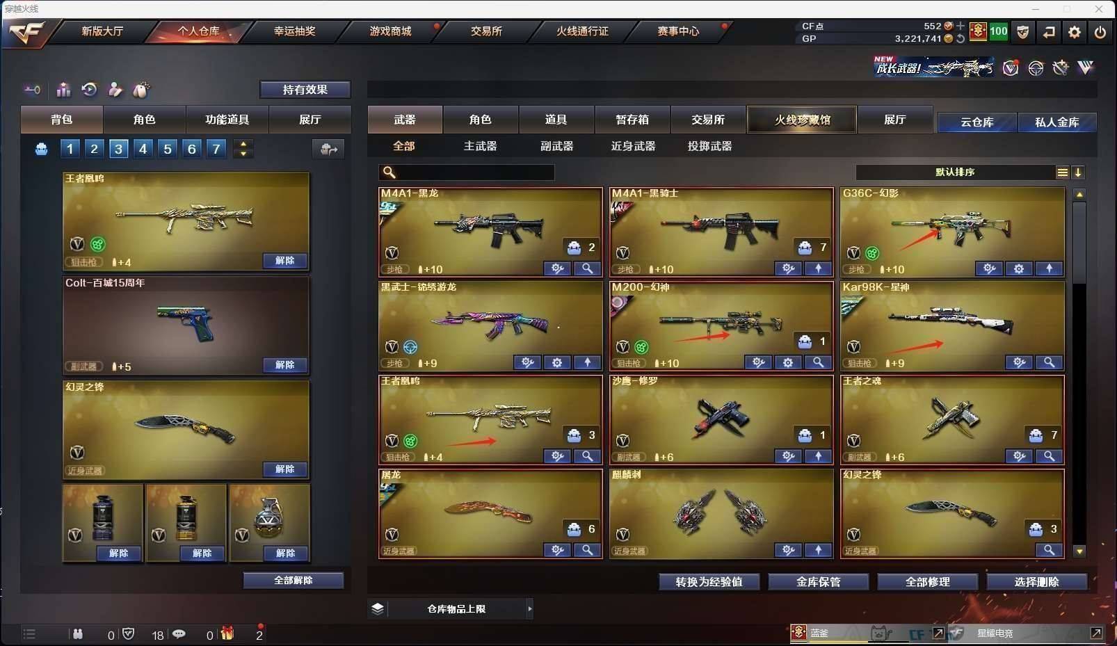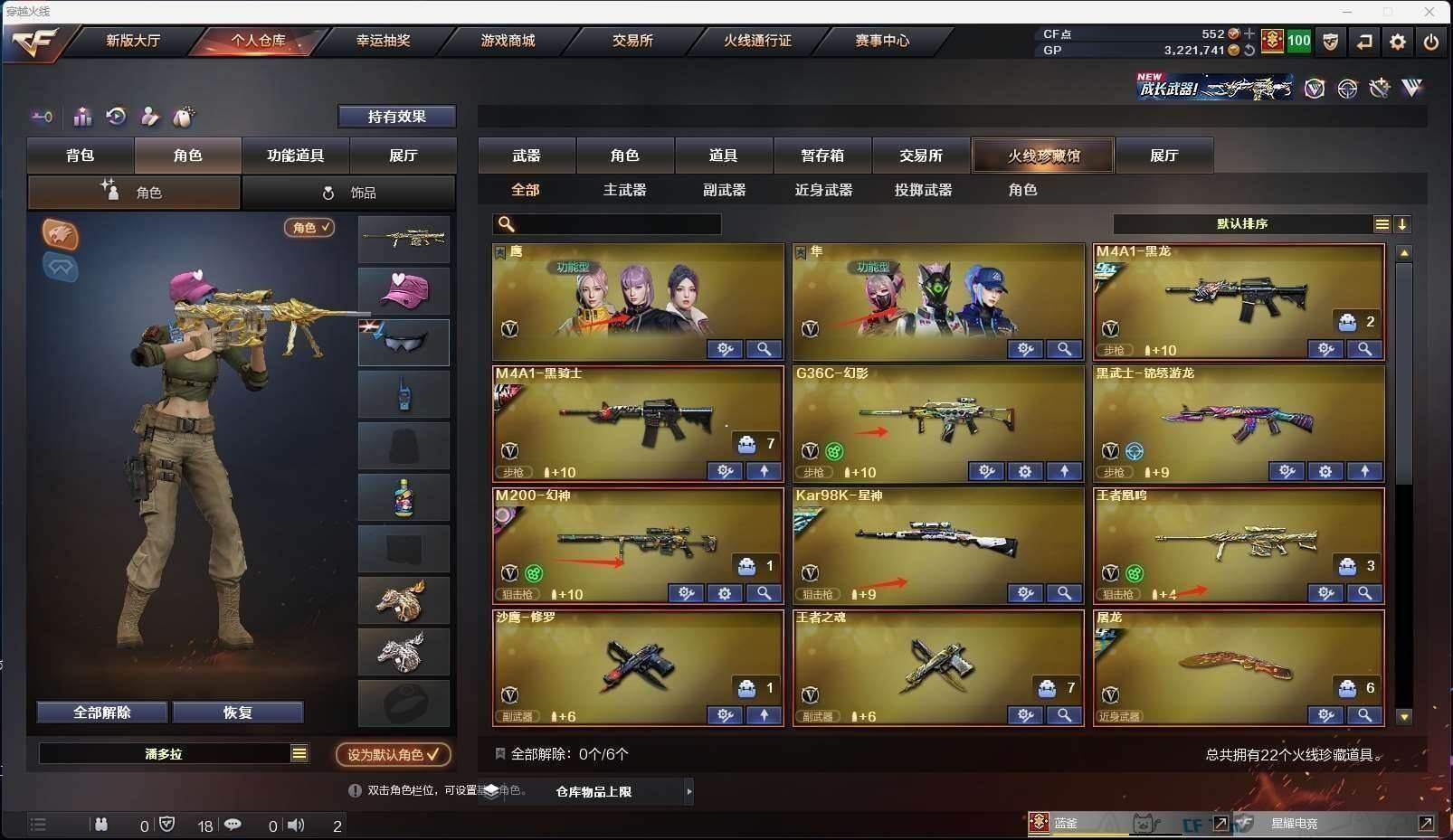 CFD542207号广东一区22v vip6【星神3件套!!!】【m200幻神宠儿皮肤n9皮肤冠军之幻皮肤冠军之刃】【98k星神星神音效卡冠军之星皮肤破竹皮肤】【g36c幻影】【黑龙冠军之武皮肤】【黑骑士s4冠军典藏】【王者凰鸣】【黑武士锦绣游龙】——【修罗 王者之魂】——【幻灵之锋 麒麟刺 屠龙 云龙扇】——【幻灵投掷武器套装云龙投掷武器套装】——【角色】【4防隼】【鹰】