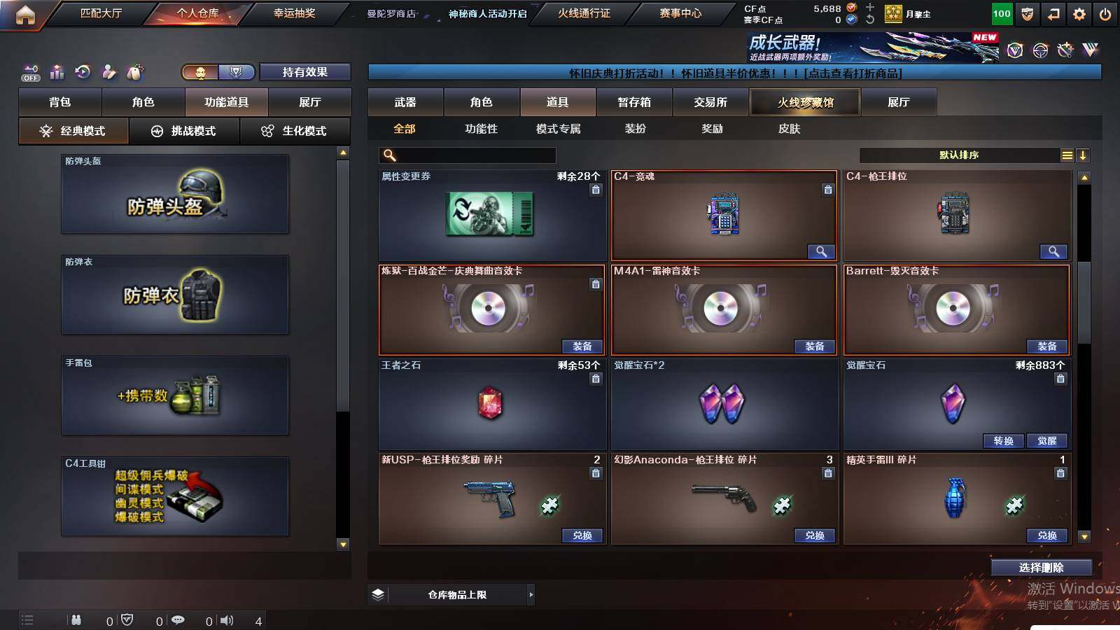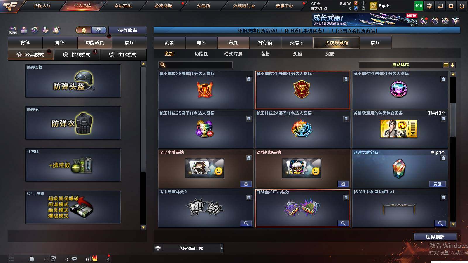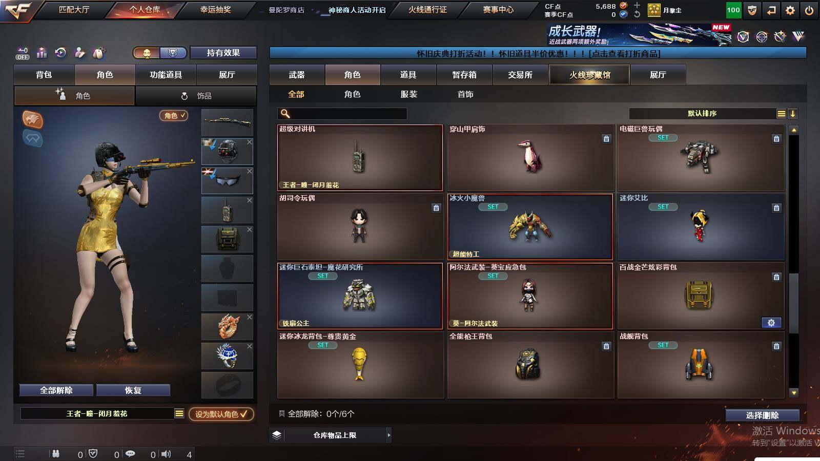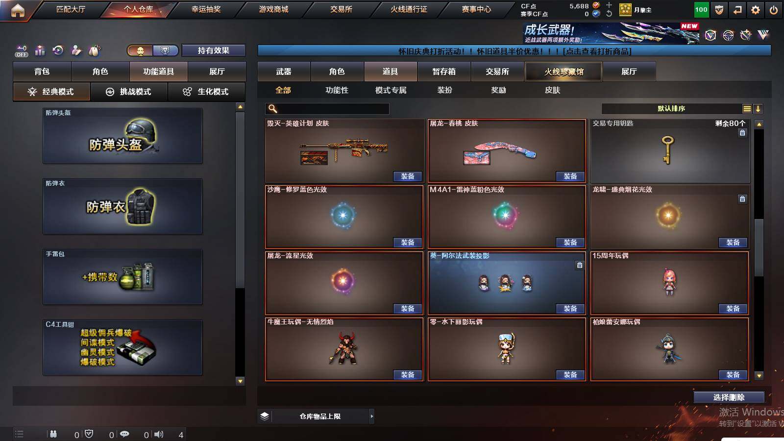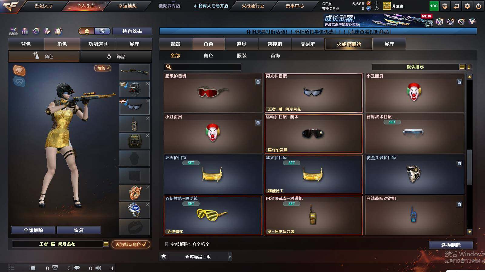 广东一区-27v 【热门武器】:m200-幻神,rpk-盘龙,沙鹰-修罗 【王者炫金武器】:王者之戮,炼狱-悦蓝 【音效卡】:m4a1-雷神音效卡,barrett-毁灭音效卡,炼狱-百战金芒-庆典舞曲音效卡 【皮肤】:雷神-暗月,雷神-能量核心,雷神-机甲刑天皮肤,雷神-梦蝶 皮肤,雷神-源计划2.0专属 皮肤,m4a1-再燃火线,火麒麟-雷神,火麒麟-平天大圣,火麒麟-心动糖果,毁灭-黑大圣