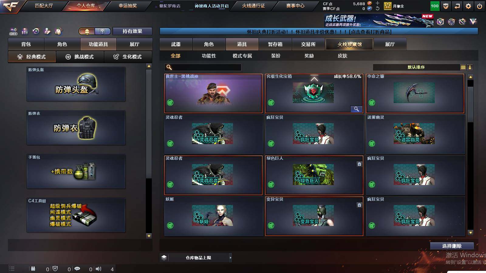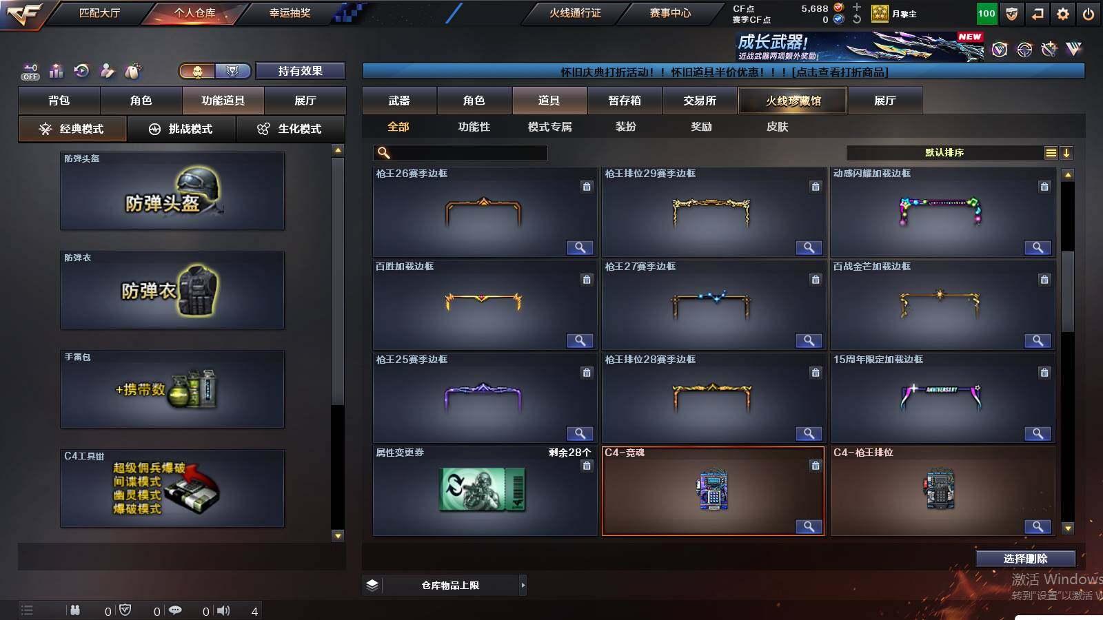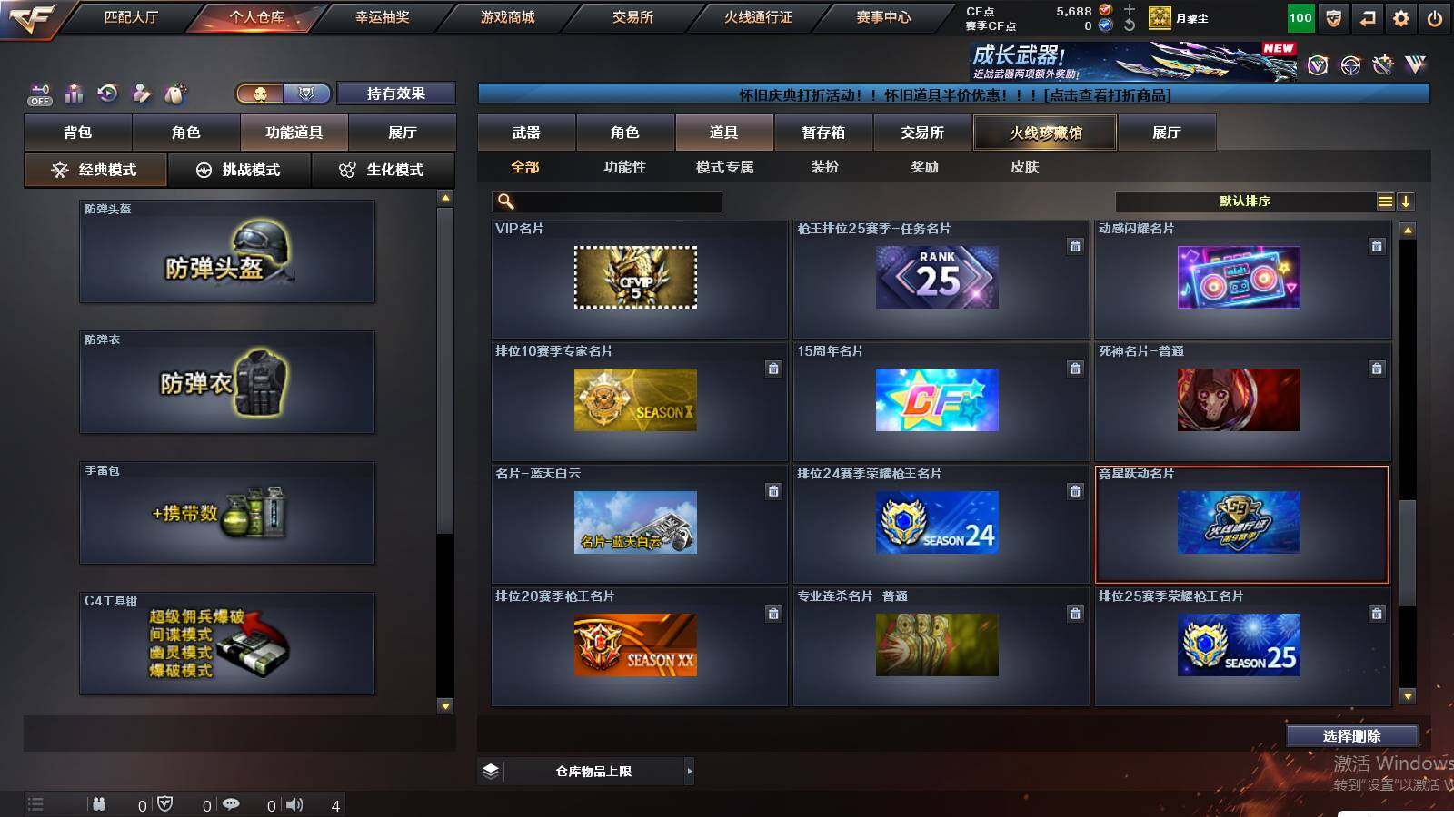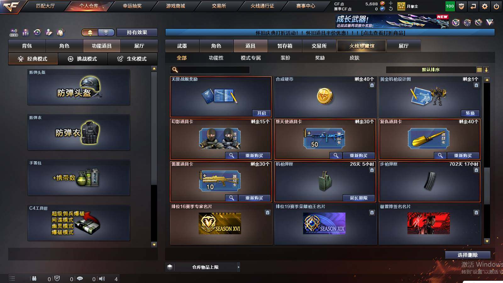 广东一区-27v 【热门武器】:m200-幻神,rpk-盘龙,沙鹰-修罗 【王者炫金武器】:王者之戮,炼狱-悦蓝 【音效卡】:m4a1-雷神音效卡,barrett-毁灭音效卡,炼狱-百战金芒-庆典舞曲音效卡 【皮肤】:雷神-暗月,雷神-能量核心,雷神-机甲刑天皮肤,雷神-梦蝶 皮肤,雷神-源计划2.0专属 皮肤,m4a1-再燃火线,火麒麟-雷神,火麒麟-平天大圣,火麒麟-心动糖果,毁灭-黑大圣