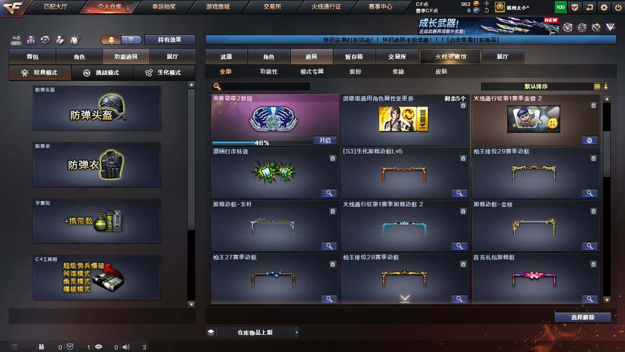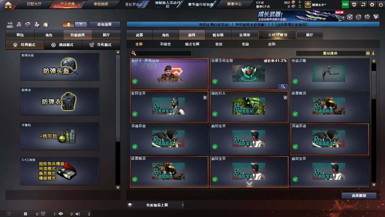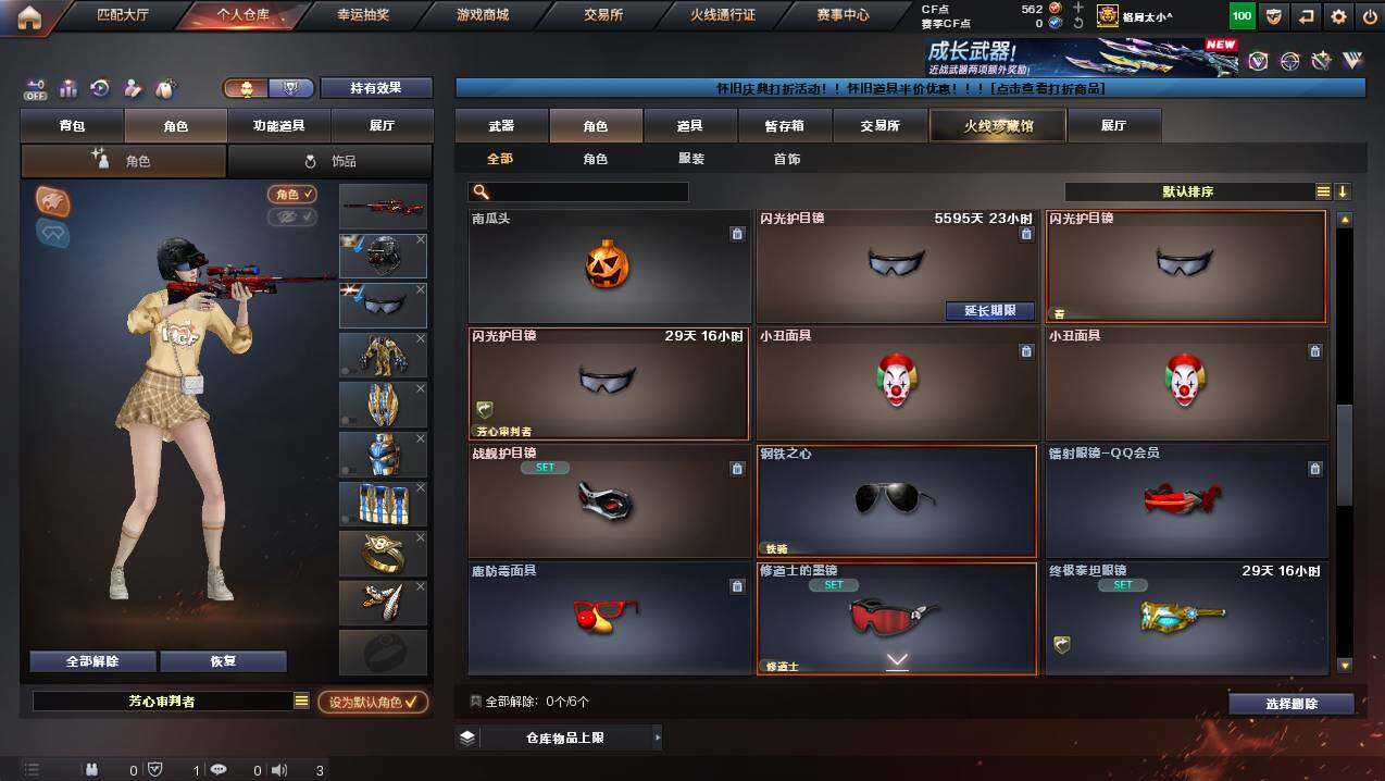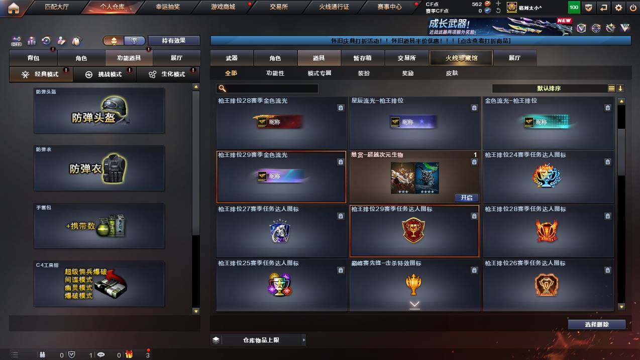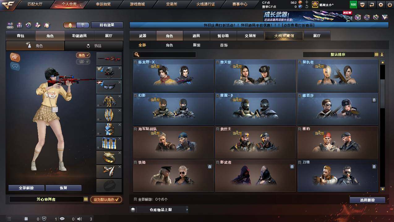 湖南一区-107v-10王者武器数-3炫金武器数 【热门武器】:q03-金色蔷薇,m200-幻神,死亡之眼,金色小号,m4a1-黑骑士3,汤姆逊-烈龙8,rpk-盘龙5,加特林-炼狱,斯泰尔-蝴蝶,usp-雷暴,沙鹰-修罗4 【王者炫金武器】:王者之幻,王者之翼,王者之力,炼狱-悦蓝,王者之灵2,炫金骑士,炫金超新星,炫金天龙 【音效卡】:m4a1-黑骑士音效卡,barrett-