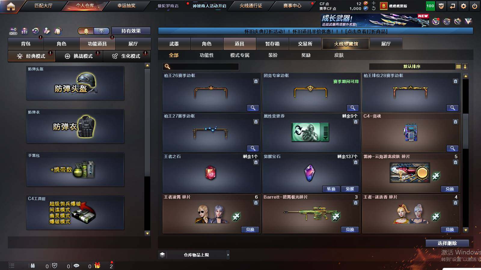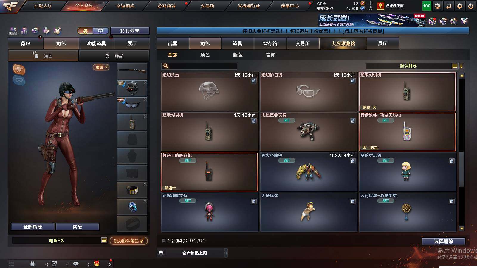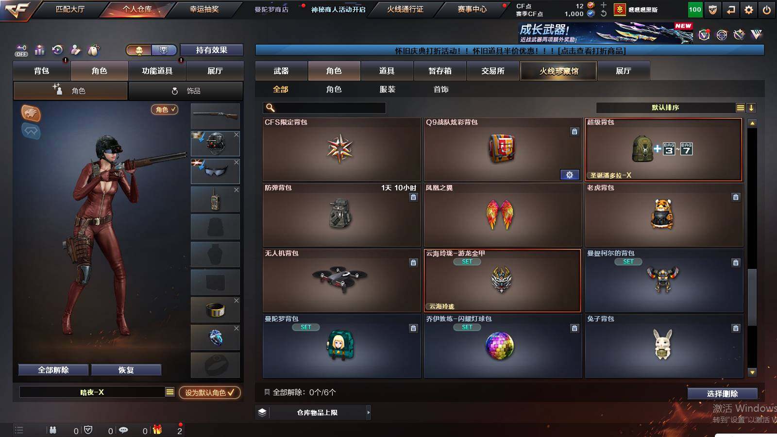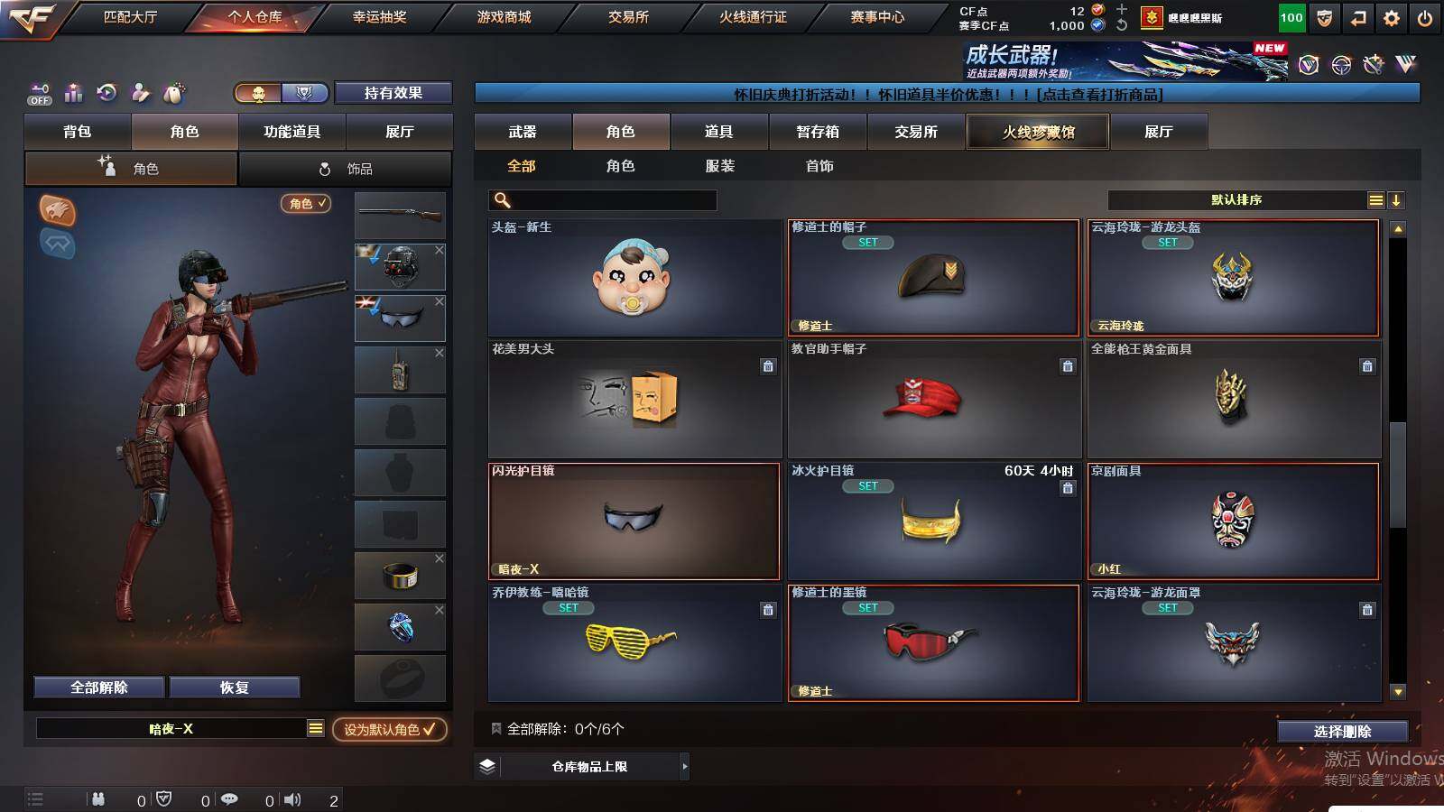 重庆一区-5v 【热门武器】:q03-金色蔷薇,m200-幻神,死亡之眼 【王者炫金武器】:炫金毁灭 【皮肤】:q03-荣耀世冠白鲨,雷神-暗月,毁灭-黑大圣皮肤 【角色】:乔伊教练,修道士,云海玲珑,暗夜-x,北极狐-x,荆棘玫瑰,0号玩家,潘多拉-甜心教官,青霞仙子,蜀雪,雪莉杨,雪莉杨-摸金校尉 【人偶武器】:awm-灵狐-15周年嘉年华,迷你生化手蕾,生化手蕾-机甲核心2,迷