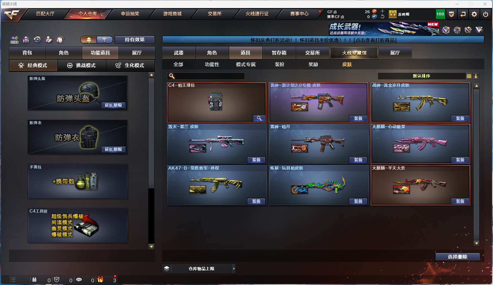 CF4551【四川一区】【可二次实名】【可排位】【新锐1】【CF点26】【V武器数31】【死亡之眼】【传说辉光】【M200-幻神】【王者风神】【白虎-电玩蓝兔】【M14EBR-玄武】【加特林-炼狱】【炼狱-悦蓝-觉醒版】【魂·炼狱-玩具枪】【汤姆逊-烈龙】【死亡之眼】【隼】【M4A1-雷神】【雷神-暗月】【雷神-源计划2.0专属 皮肤】【AK47-火麒麟】【火麒麟-平天大圣】【火麒麟-心动糖果】等等~ 截图展示段位不代表实际段位,如赛季更新等不可抗拒因素发生变化、时限道具不保证所剩时间,其余道具看截图或咨询客服 【小述账号 安全无忧】