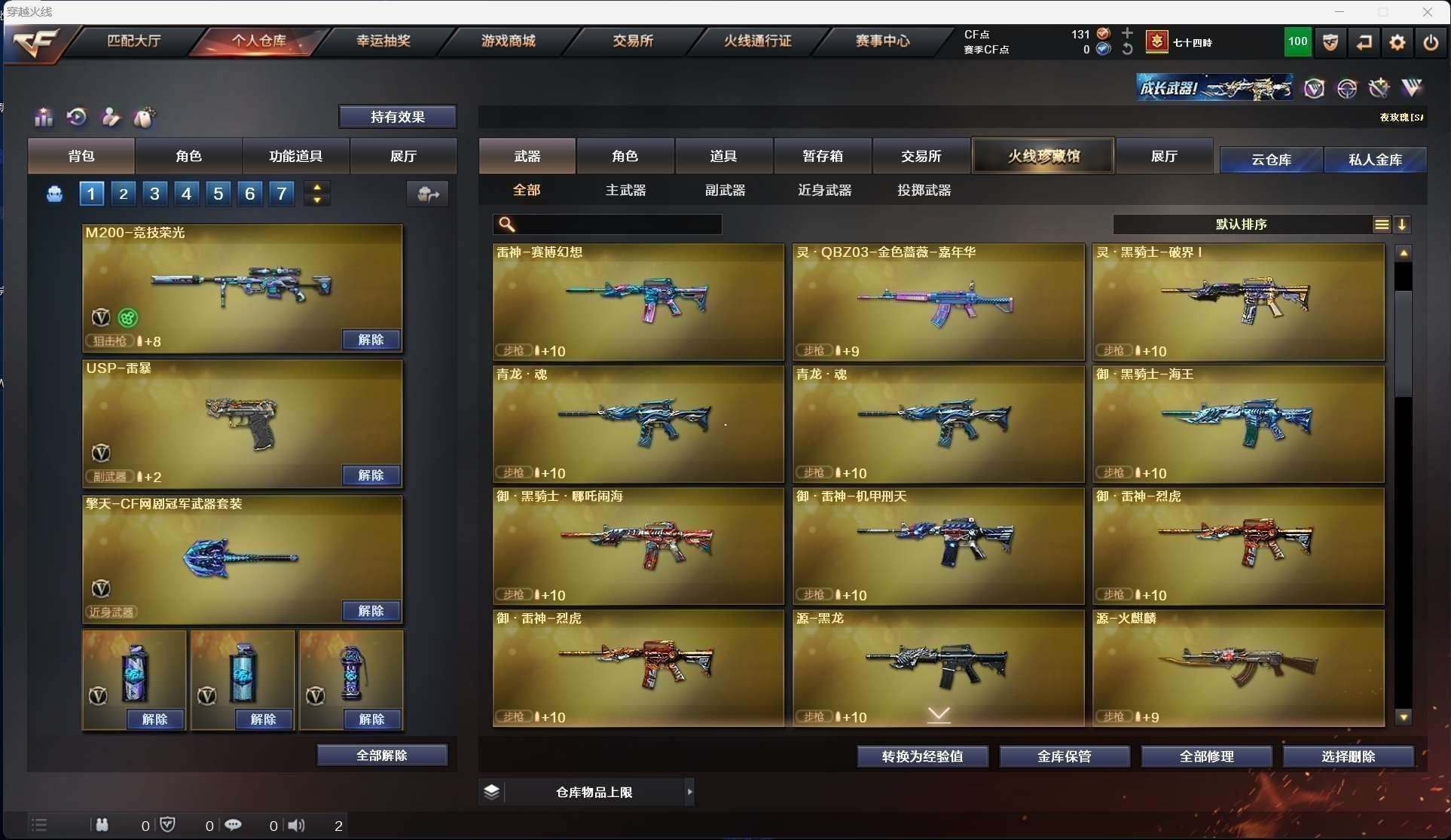 CFD543180号河南一区23v【m200竞技荣光套装usp雷暴电竞教官云悠悠】【王者之心】【火麒麟 雷神 毁灭 黑龙 战神 黑武士 暗月传说】——【usp雷暴 柯尔特竞技荣光】——【擎天网剧冠军 擎天竞技荣光】——【竞技荣光投掷武器套装】——【角色】【电竞教官云悠悠】