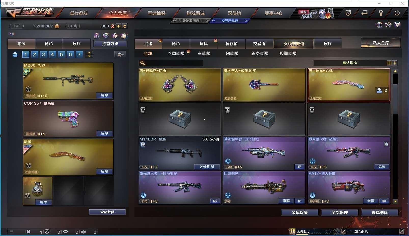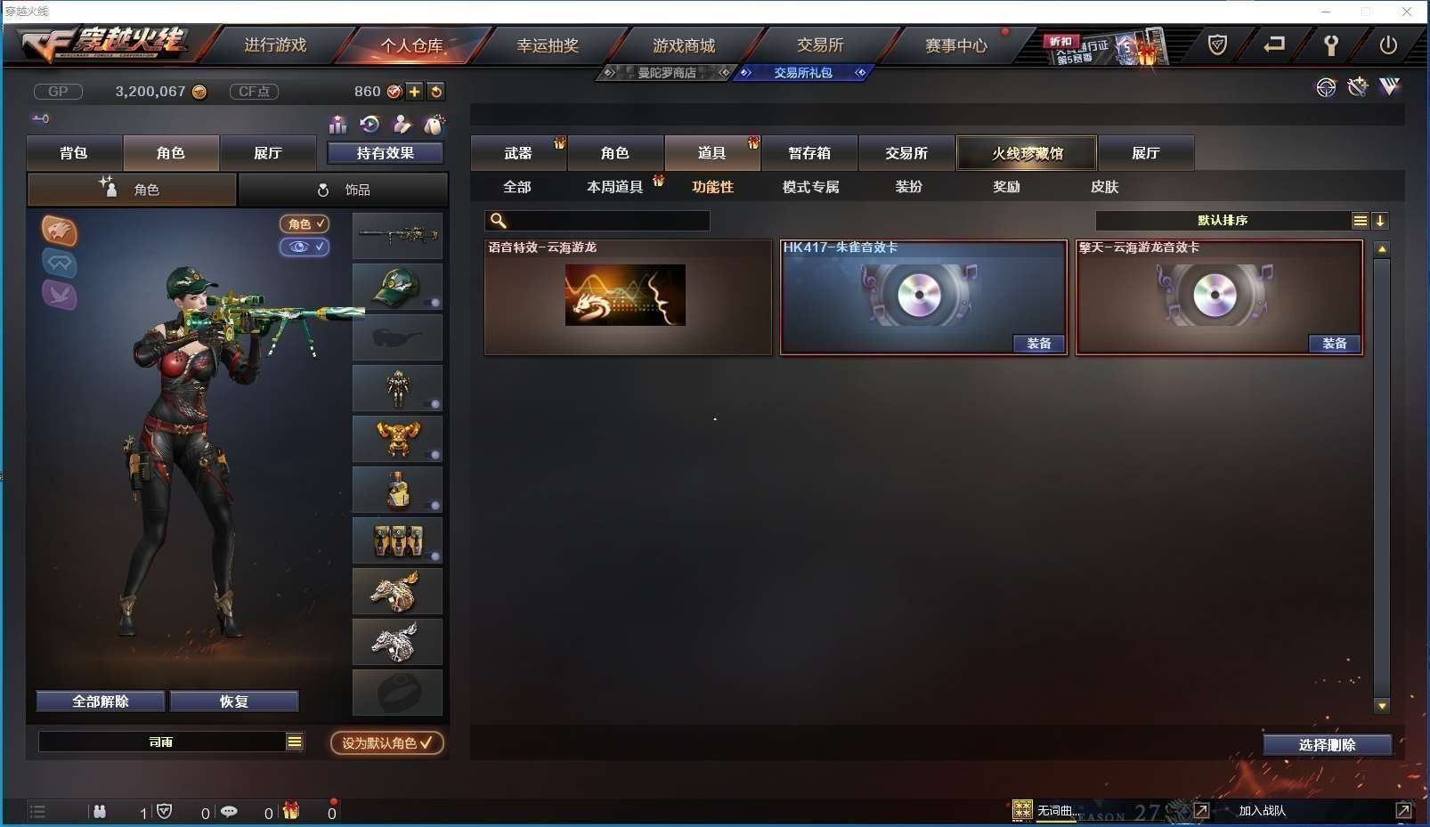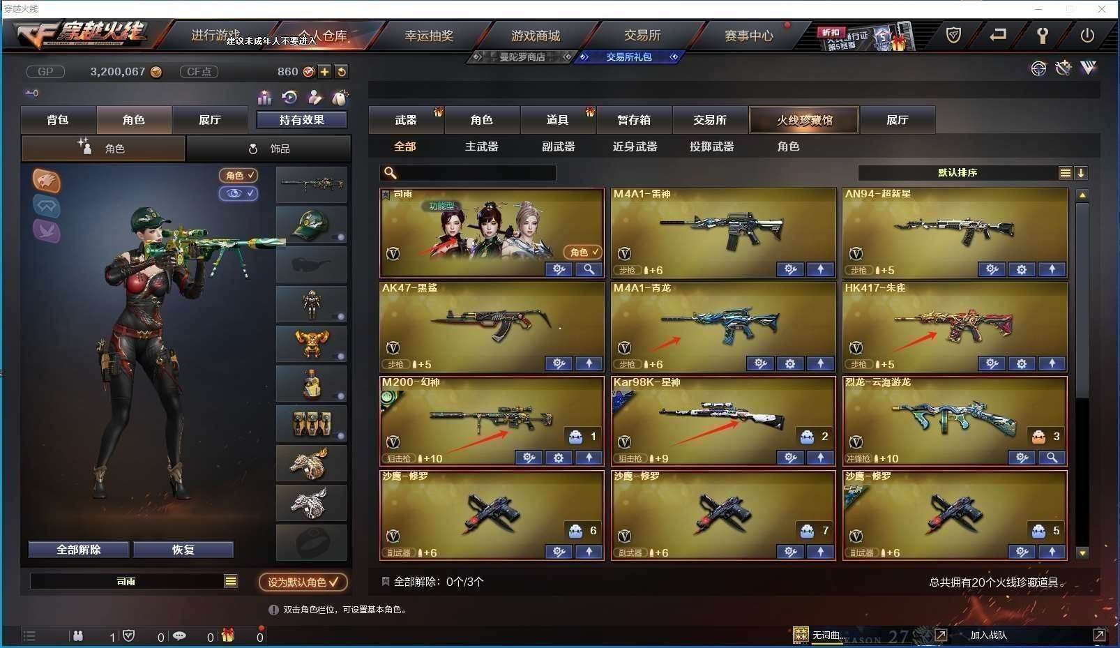 CFD544606号湖南一区 20v【m200幻神青鹤皮肤纸灯龙皮肤】【98k星神璀璨皮肤】【朱雀朱雀音效卡】【青龙】【炫金毁灭 炫金天龙 炫金千变】【雷神 超星神 黑鲨 烈龙云海游龙】——【热门武器/小人呛】【金色小号 猫猫手套】——【沙鹰修罗3】——【龙啸烈火龙威 屠龙】——【幻灵投掷套装】——【角色】【司雨】【云海玲珑 刀锋x 电竞少女 风暴女 麻雀 潘多拉 维纳斯 幽】