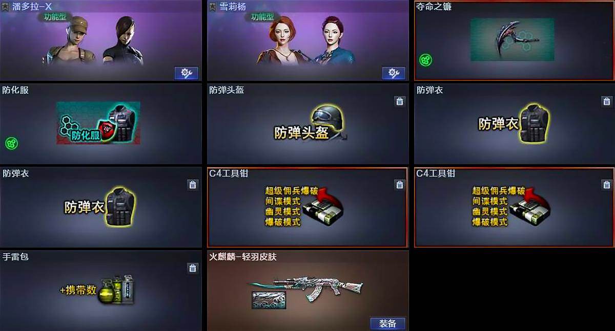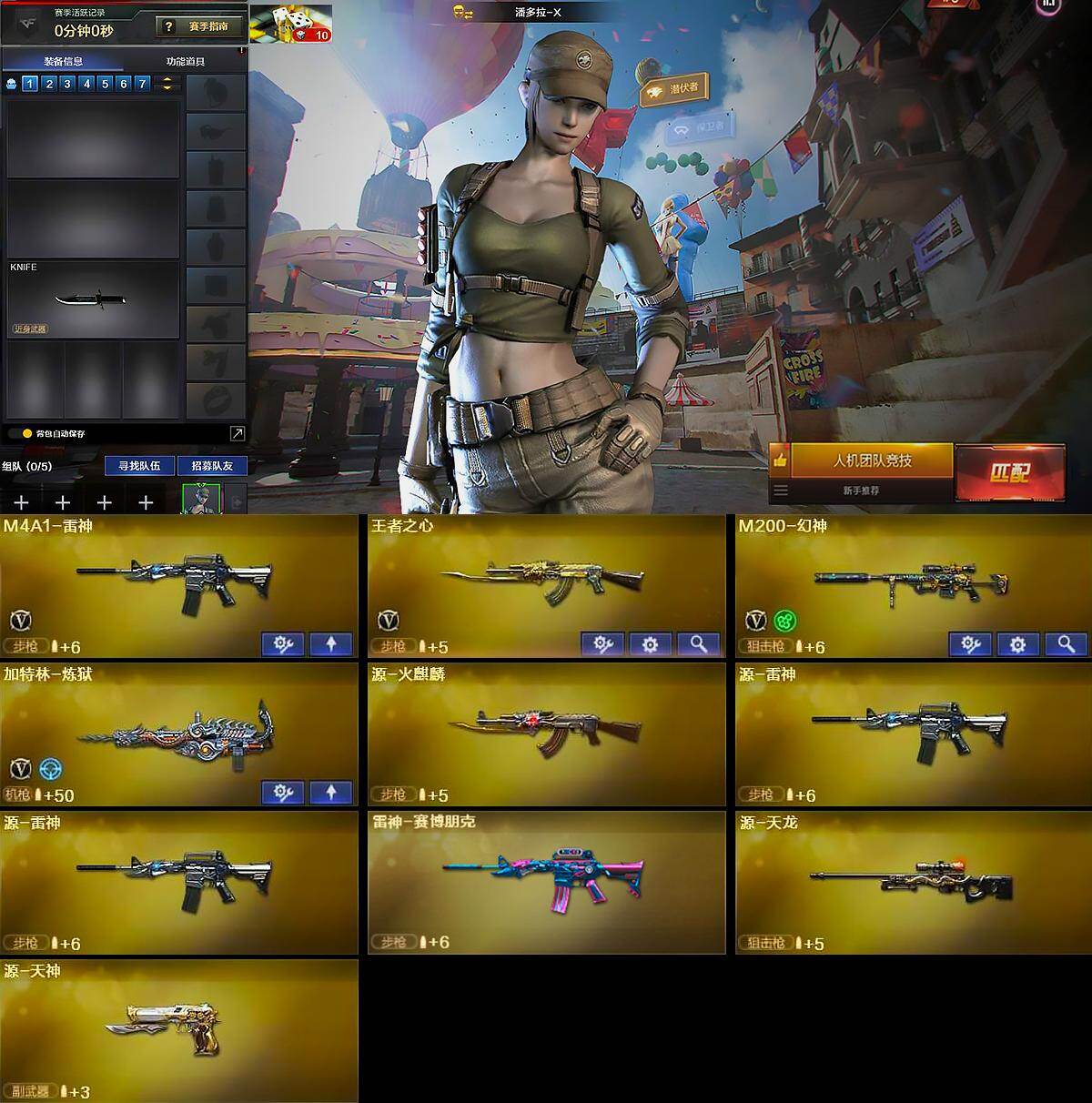 山东一区-4v-1王者武器数-0炫金武器数 【热门武器】:m200-幻神,加特林-炼狱 【皮肤】:火麒麟-轻羽皮肤 【角色】:潘多拉-x,雪莉杨 【英雄级武器】:m4a1-雷神,王者之心-觉醒版,m200-幻神,加特林-炼狱 【道具】:夺命之镰,防化服,防弹头盔,防弹衣2,c4工具钳2,手蕾包 【特殊呛械】:1炼狱
