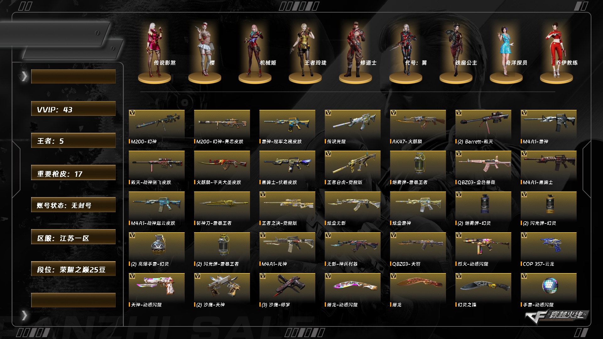 xh5344/东部/江苏一区/可排位/【荣耀之巅25豆】/【lv.99 上将6】vip5/42v/【三防传说】/传说影煞/传说光耀/幻神/幻神英雄计划/幻神黄忠/q金色蔷薇/q音效卡/q天罚/王者白虎/cop云龙/修罗/3/一套神工天巧雷/两套幻灵雷/一套云龙雷/【音效卡】/雷神音效卡