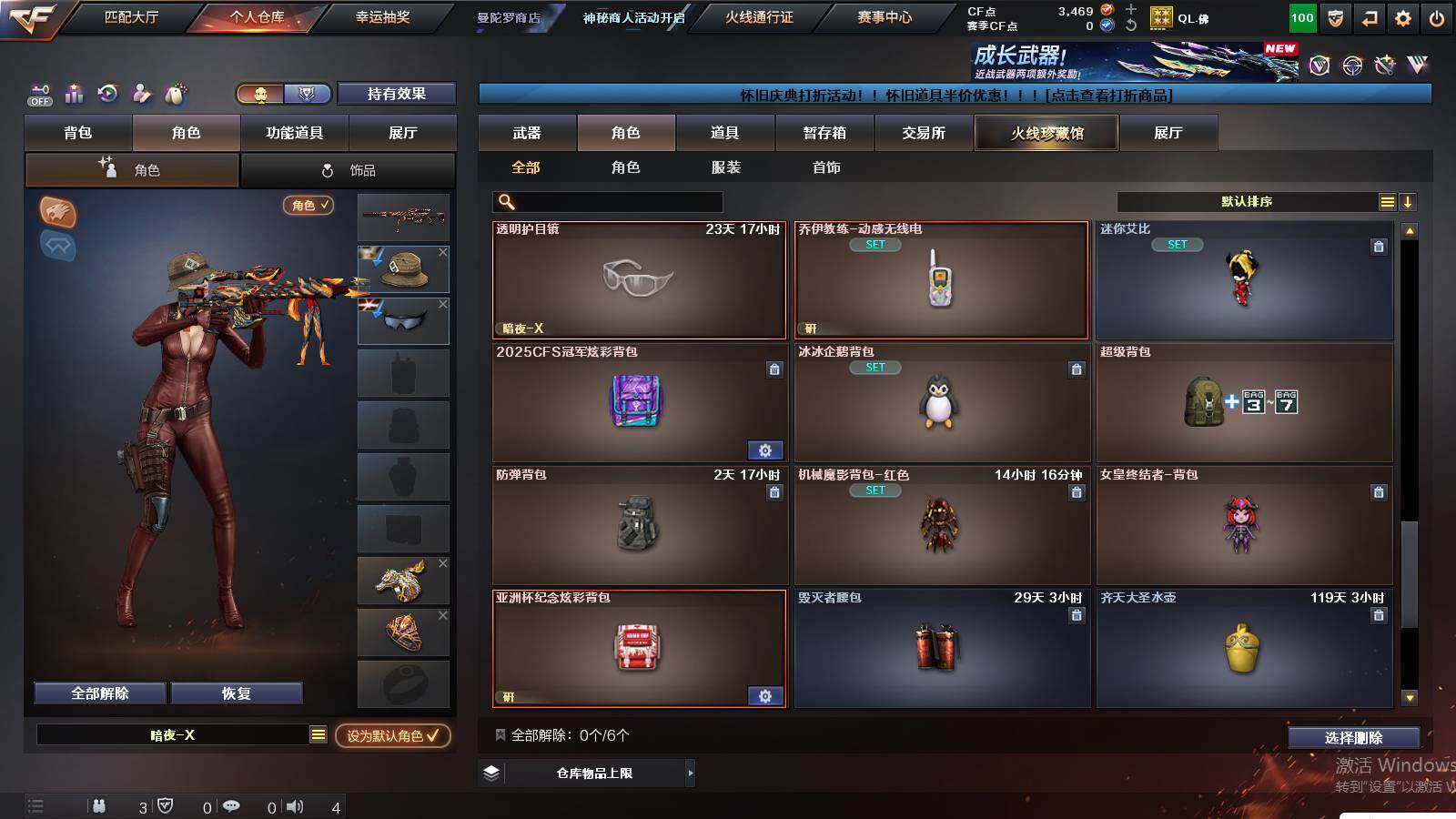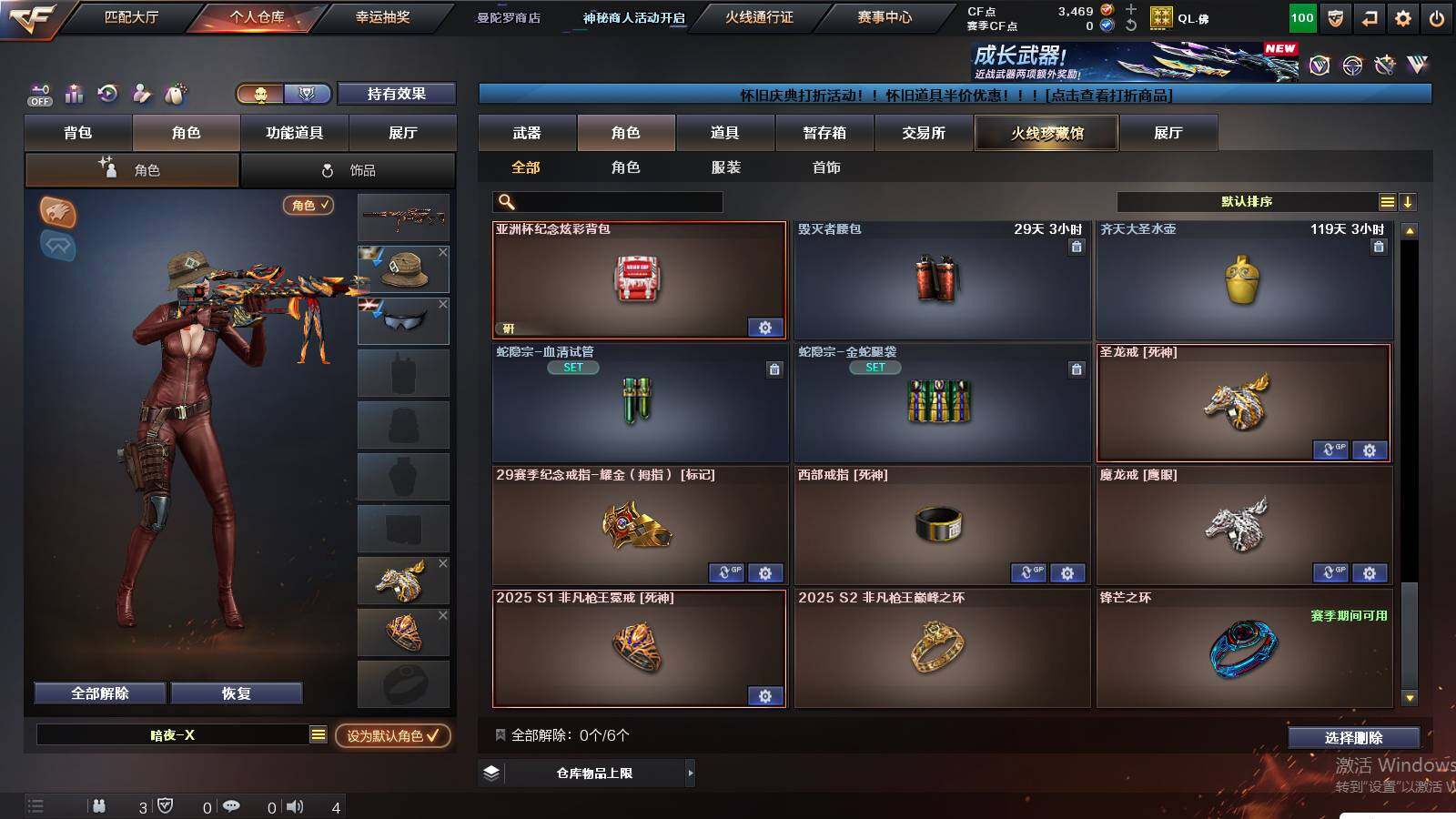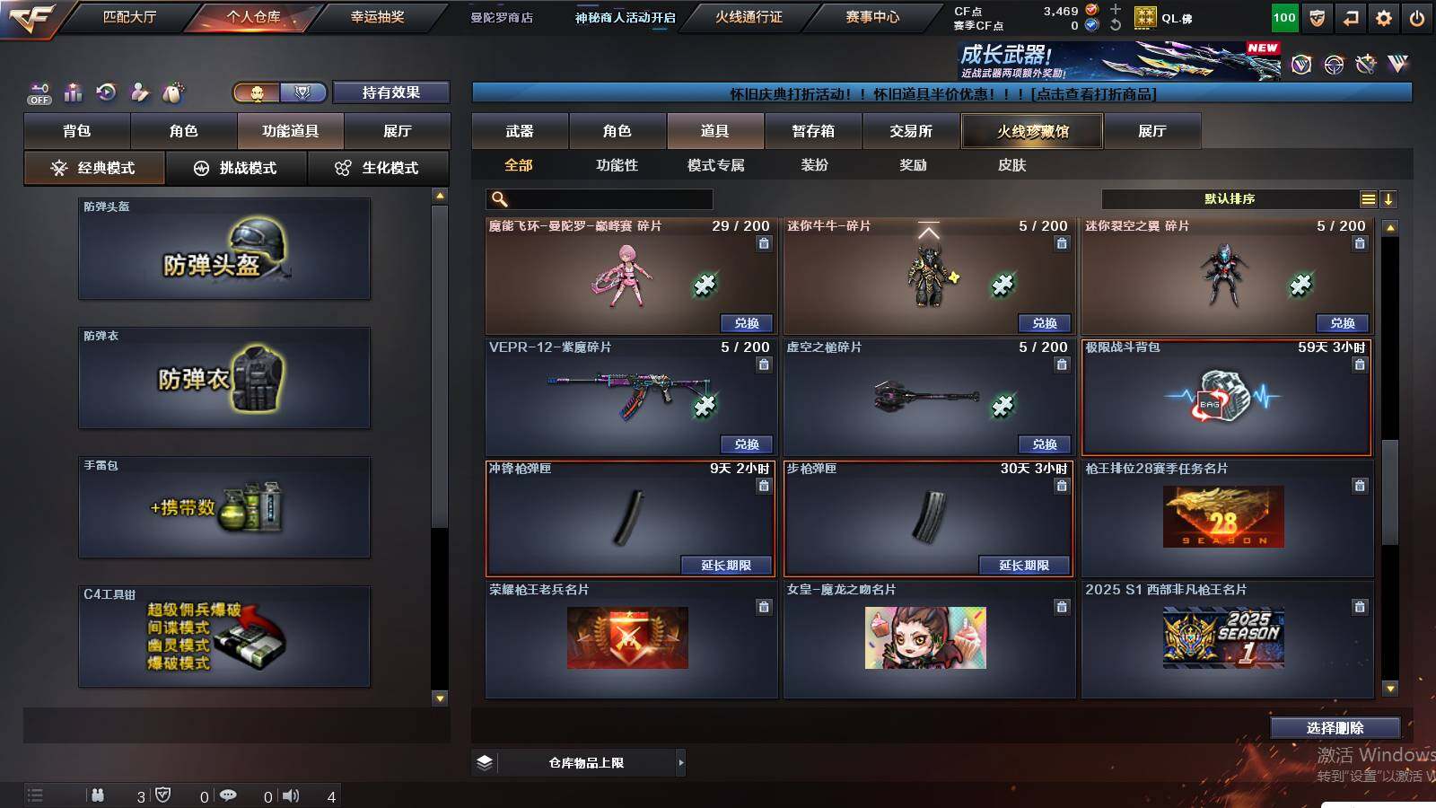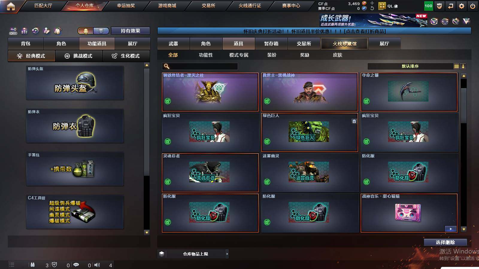 陕西一区-18v 【传说武器】:传说圣谕,传说幽瞳 【热门武器】:传说幽瞳,传说圣谕,m200-幻神,cat-刀锋,m4a1-黑骑士,羊驼玩偶,沙鹰-修罗 【王者炫金武器】:王者星光,王者冰锋 【音效卡】:awm-裁决音效卡,barrett-碧霄极光音效卡 【皮肤】:幻神-电流骇客 皮肤,裁决-运输船 皮肤,毁灭-航天科技皮肤,屠龙-惊鸿 皮肤,擎天-傲竹金蛇 皮肤 【角色】:研,战地猎狐,乔
