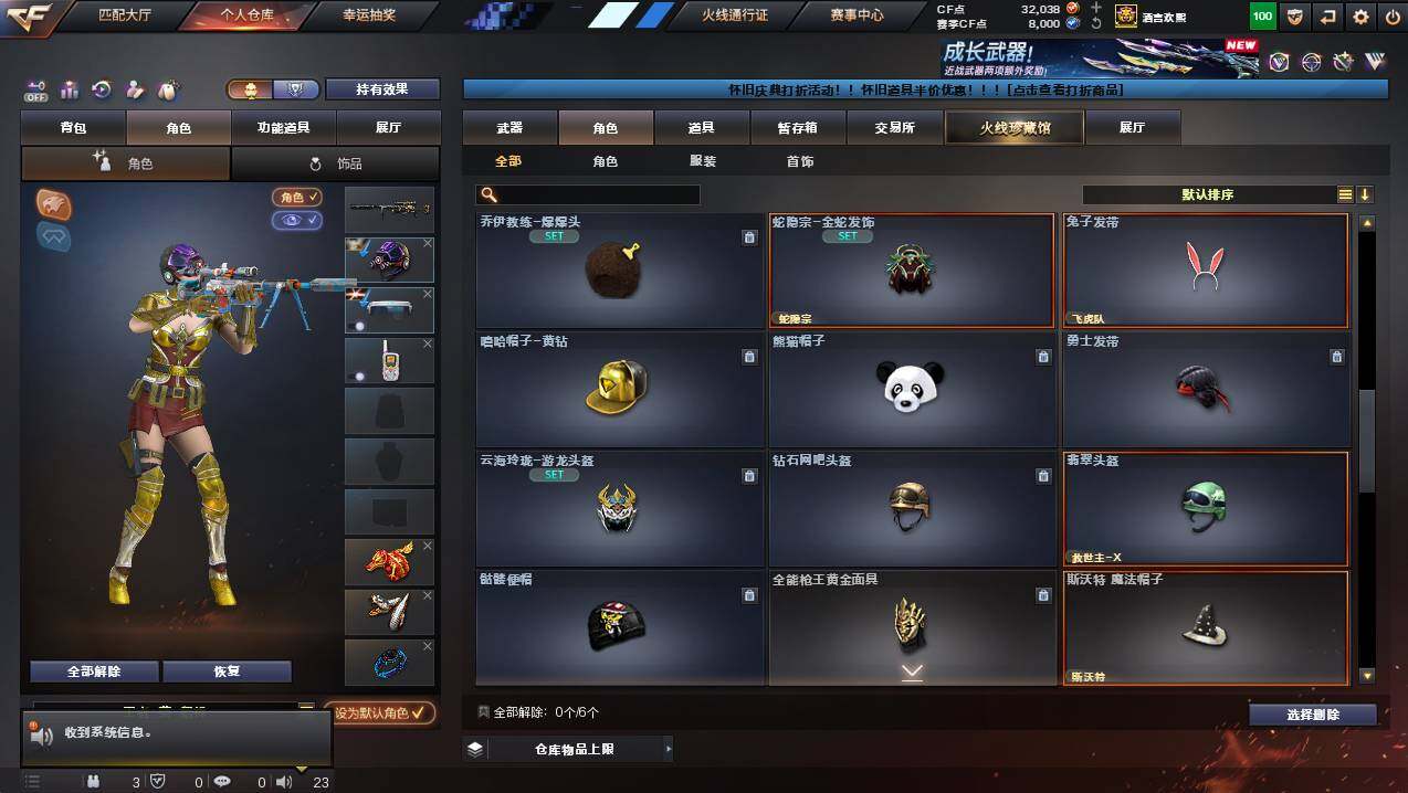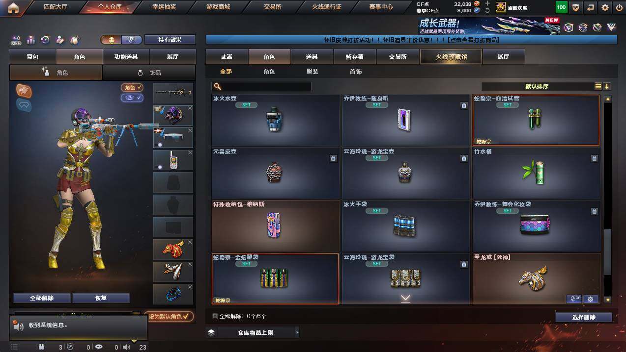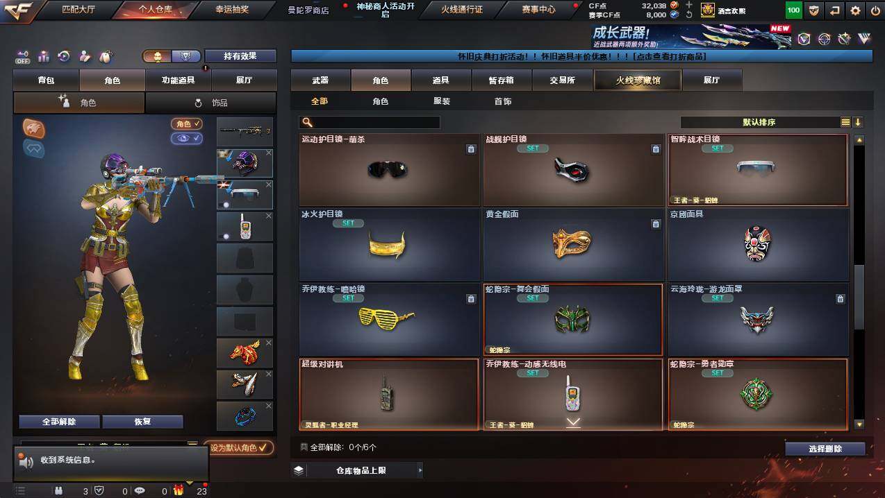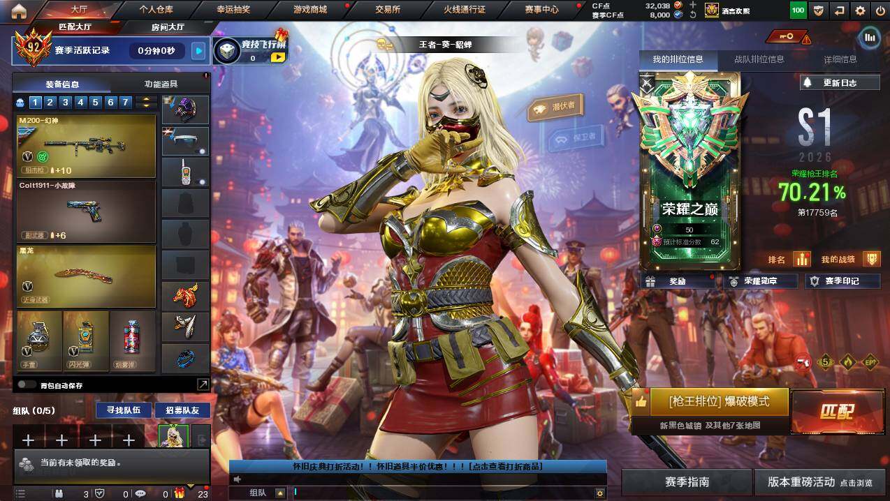 河南一区-78v-12王者武器数-2炫金武器数 【传说武器】:传说圣灵,传说幽冥 【热门武器】:传说圣灵,传说幽冥,g36c-幻影,q03-金色蔷薇,m200-幻神,金色蔷薇-古蛇迷踪,修罗-古蛇迷踪,八面凌龙,荣耀世冠-柯尔特,m4a1-黑骑士,汤姆逊-烈龙3,沙鹰-修罗2,炽芒蝶刃,荣耀世冠-龙啸 【王者炫金武器】:炫金骑士,炫金雷神 【音效卡】:m4a1-黑骑士音效卡,barre