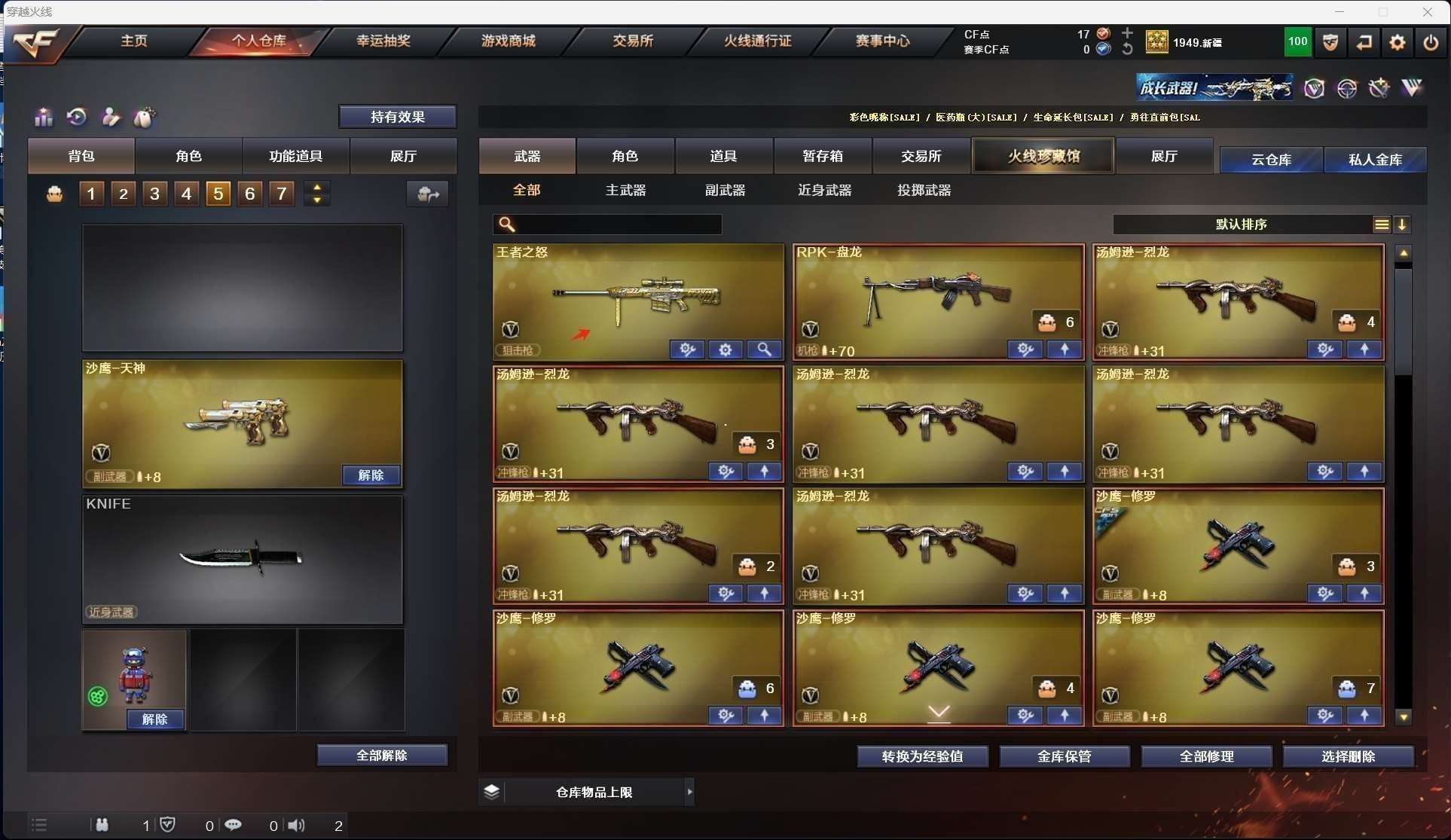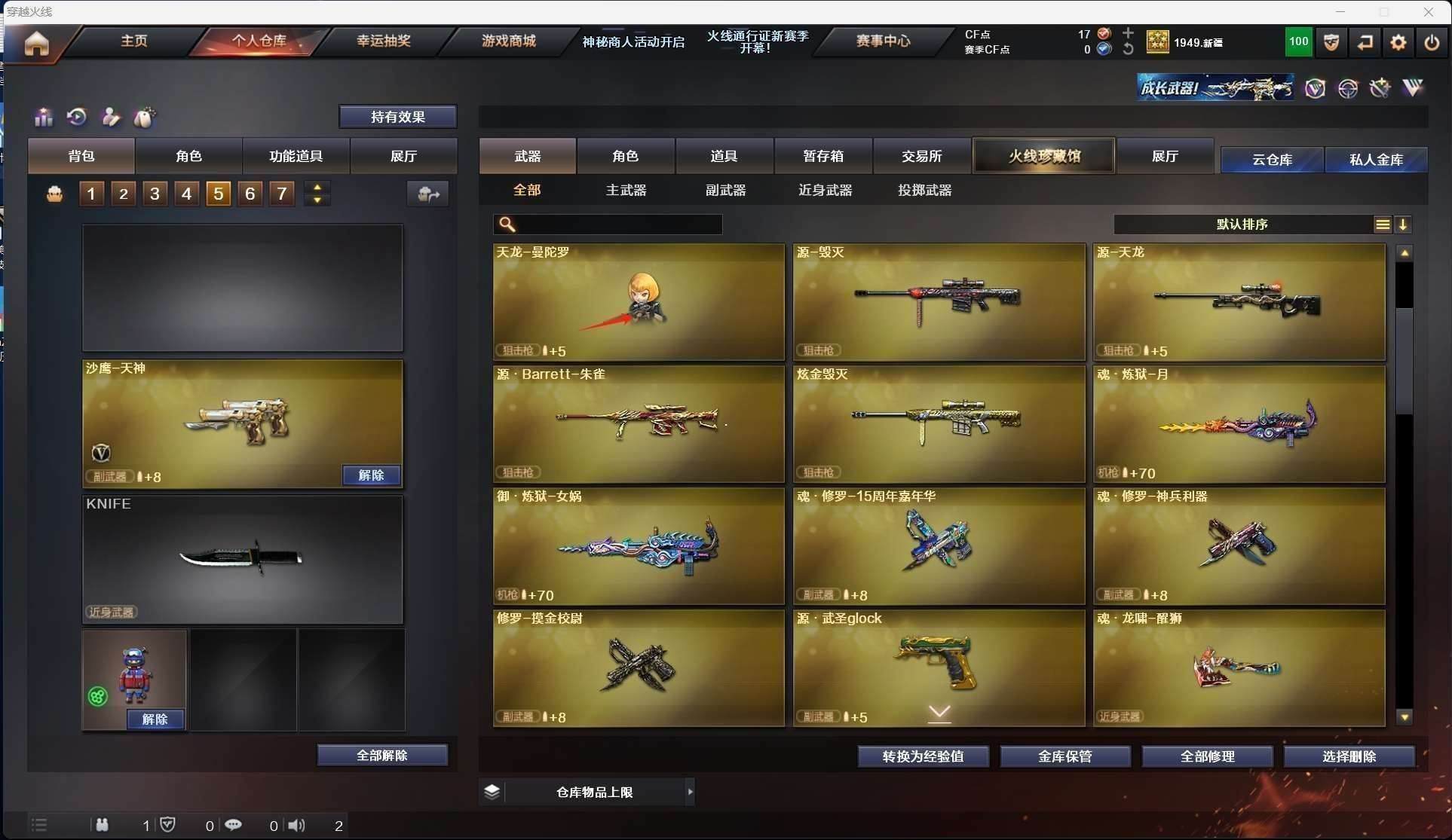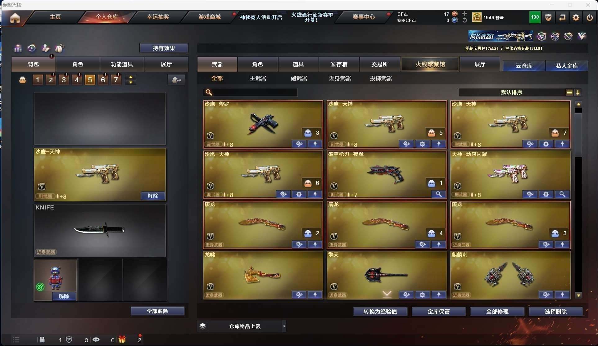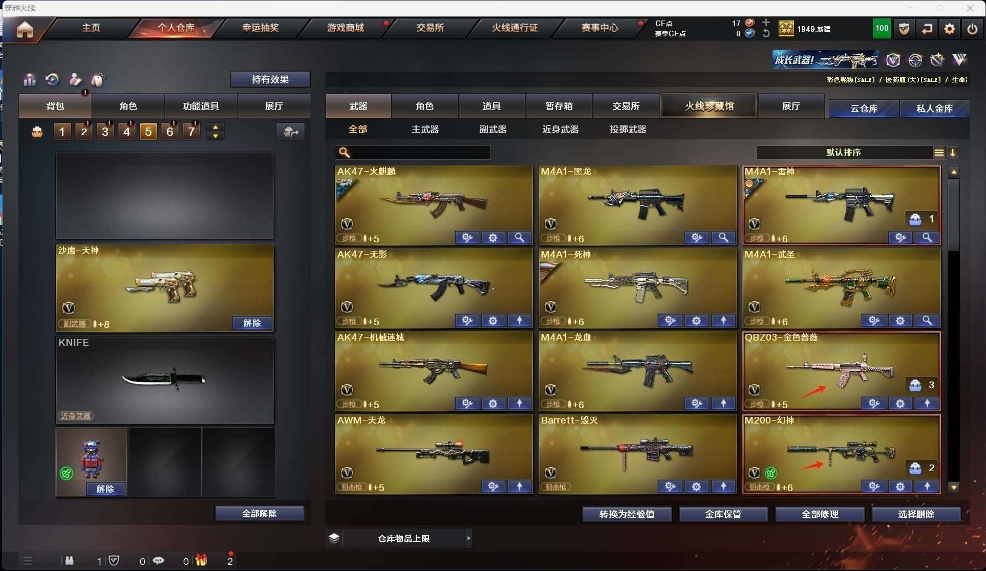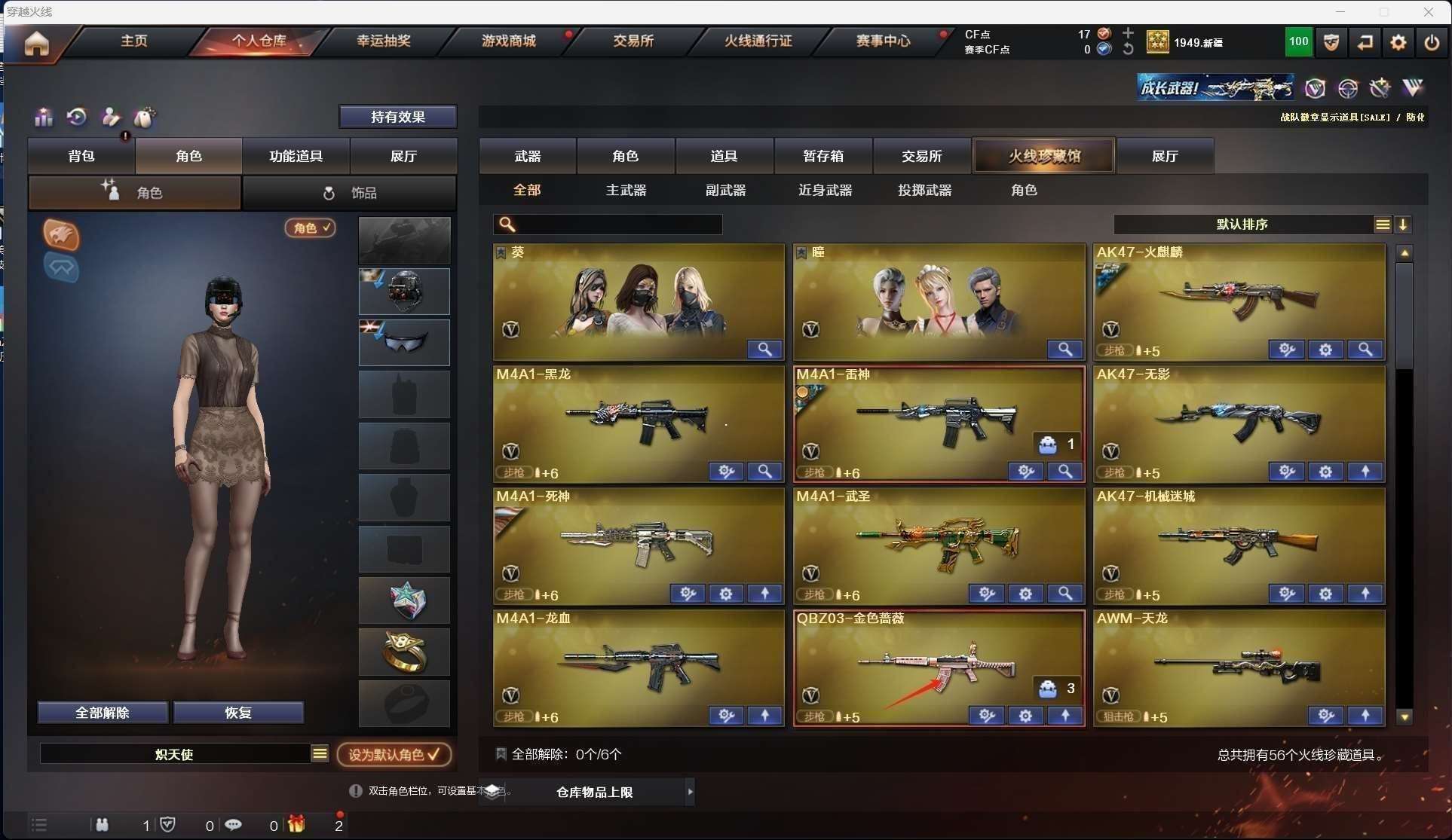 CFD545435号陕西一区56v vip4【m200幻神】【qbz03金色蔷薇】【6烈龙1盘龙死亡之眼】【王者之心 王者之武 王者之怒】【火麒麟 机械迷城 无影 黑龙 雷神 龙血 死神 武圣 天龙 毁灭】——【热门武器/小人呛】【天龙曼陀罗 】——【破空呛刃夜魔 天神3 修罗5 天神动感闪耀】——【龙啸 龙啸烈火龙威 马来剑夜魔 麒麟刺 擎天 屠龙 王者之啸】——【夜魔投掷武器套装4】——【角色】【4防(王者涂鸦 灵狐者职业经理)】【葵 瞳 】