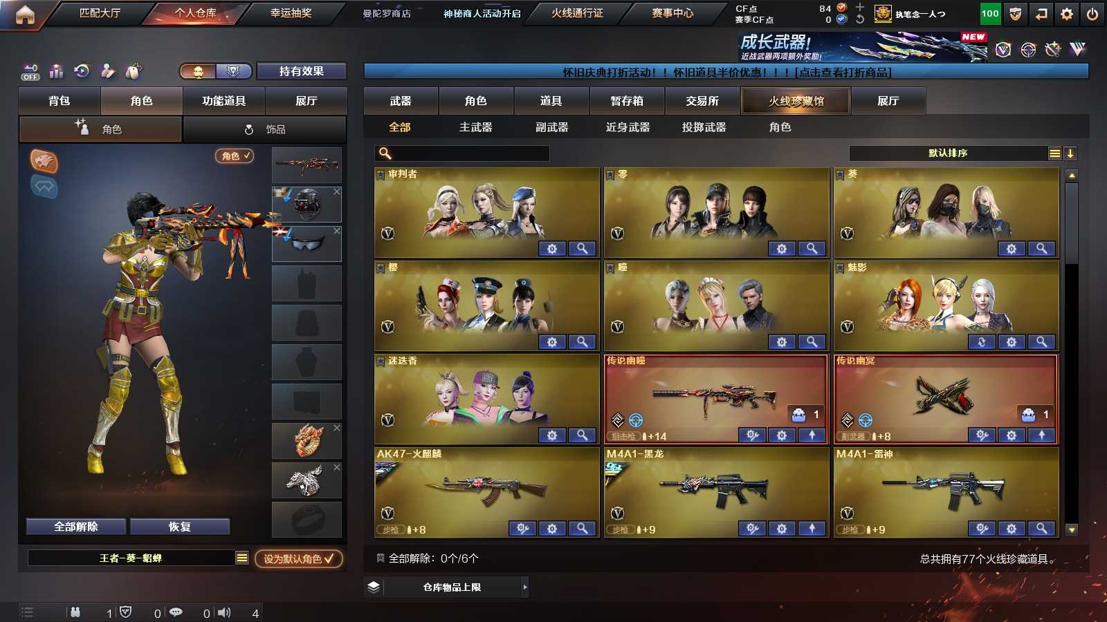 特15177可排位-可二次【陕西一区/77V/vip1/2传说】【传说幽冥/传说幽瞳/幻神三件套/星神三件套/8手呛/2四防角色/白虎带音效卡】【M200-幻神/M200-幻神音效卡/幻神-CFS2022/幻神-星耀 皮肤】【Kar98K-星神/Kar98K-星神音效卡/星神-巅峰荣耀 皮肤】【王者之幻】【柯尔特-无冕之王】【Scar Light-白虎/Scar Light-白虎音效卡】【QBZ03-金色蔷薇】【M4A1-雷神2/雷神-脉冲核心/雷神-杨戬/雷神-星空】【Barrett-毁灭/Barrett-毁灭音效卡/毁灭-SV-CFPLS16冠军/毁灭-风暴/毁灭耀金皮肤】【AK47-火麒麟/AK47-火麒麟-传奇EVEN/火麒麟-CFSTAR/火麒麟-盘古】【M4A1-黑骑士/M4A1-黑骑士音效卡/黑骑士-冠军之势/黑骑士-海王】【M4A1-黑龙/黑龙-冠军之武】【AK47-无影/无影-能量核心】【AK47-黑武士2/黑武士-CF网剧冠军】【AWM-天龙/天龙-CFSTAR】【Barrett-极光】【AWM-裁决】【M4A1-死神】【RPK-盘龙2】【加特林-炼狱】【死亡之眼/迷你生化手雷】【沙鹰-修罗2/修罗-CFSTAR】【沙鹰-天神2/天神-CF网剧冠军】【麒麟刺3】【擎天/擎天-CF网剧冠军】【屠龙5】【龙啸2】【职业选手/王者-迷迭香/王者玲珑-小乔/王者-葵-貂蝉/王者-瞳-闭月羞花/魅影/迷迭香/龙儿-小淘气/暗夜-X/审判者/葵-赛博朋克/木兰/修道士/零-水下丽影/紫霞/青霞仙子/灵狐者-黄金海岸/妲己/雪莉杨/影武者-X/铁骑荣耀/新娜塔莎/幻影/堕天使/复仇者】【M4A1-玫瑰精灵/M4A1-龙血】【Scar Light-像素/AK47-B-常胜将军/AK47-B-身先士卒/AK47-B-战士/AK-47-猩红传说】【AK47-黑鲨/AK47-机械迷城/AK12-天启/天启-暗月】【AN94-超新星3】【Barrett-暗月传说】【Colt1911-小故障/新USP-枪王排位奖励4】【斩神刀/金刚伞/迷你深渊冰龙】【激光毁灭者III/冰龙粉碎者-白马银枪3/阐释者III2】【斯泰尔-巧克力/轻型军用手斧-镜2】【牛牛-AK47/猫猫手套/C.A.T/Cat-刀锋/M4A1-雷神-精英刀锋/夺魂2/暗杀者-街机/金色小号】【王者之势/王者之锋/王者之击/王者之啸/王者之武】【闪光弹-雷暴】【闪光弹-雷霆】【炫金武士2/炫金骑士/炫金超新星】【白鲨语音包/语音特效-生化/语音特效-机器人】【透明头盔/透明护目镜/烟雾保护头盔/闪光护目镜/超级对讲机/超级背包/炫彩背包/防弹头盔3/防弹衣2/C4工具钳2/手雷包2/防化服2】截图展示段位不代表实际段位,如赛季更新等不/拒因素发生变化、时限道具不保证所剩时间