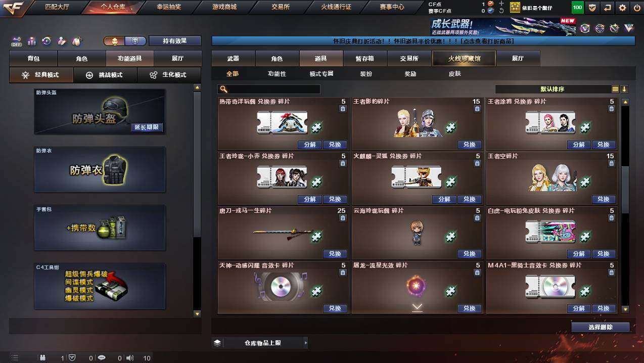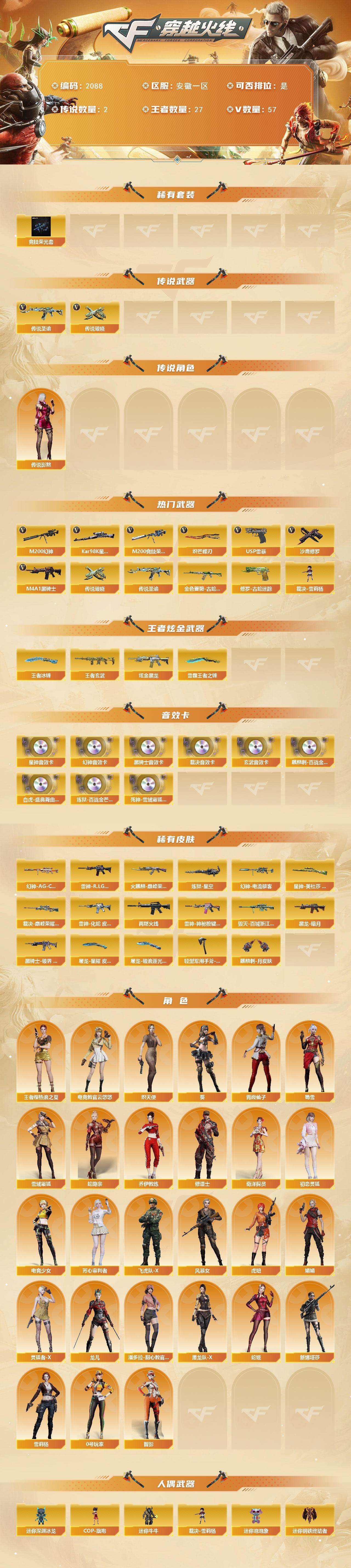 安徽一区-76v-26王者武器数-1炫金武器数 【传说武器】:传说圣谕,传说破晓 【传说角色】:四防传说影煞 【热门武器】:传说圣谕,传说破晓,m200-幻神,金色蔷薇-古蛇迷踪,修罗-古蛇迷踪,m200-竞技荣光,kar98k-星神,m4a1-黑骑士,裁决-雪莉杨,usp-雷暴,沙鹰-修罗,炽芒蝶刃 【王者炫金武器】:王者玄武,雷霆王者之锋3,王者冰锋2,炫金黑龙 【音效卡】:m200-