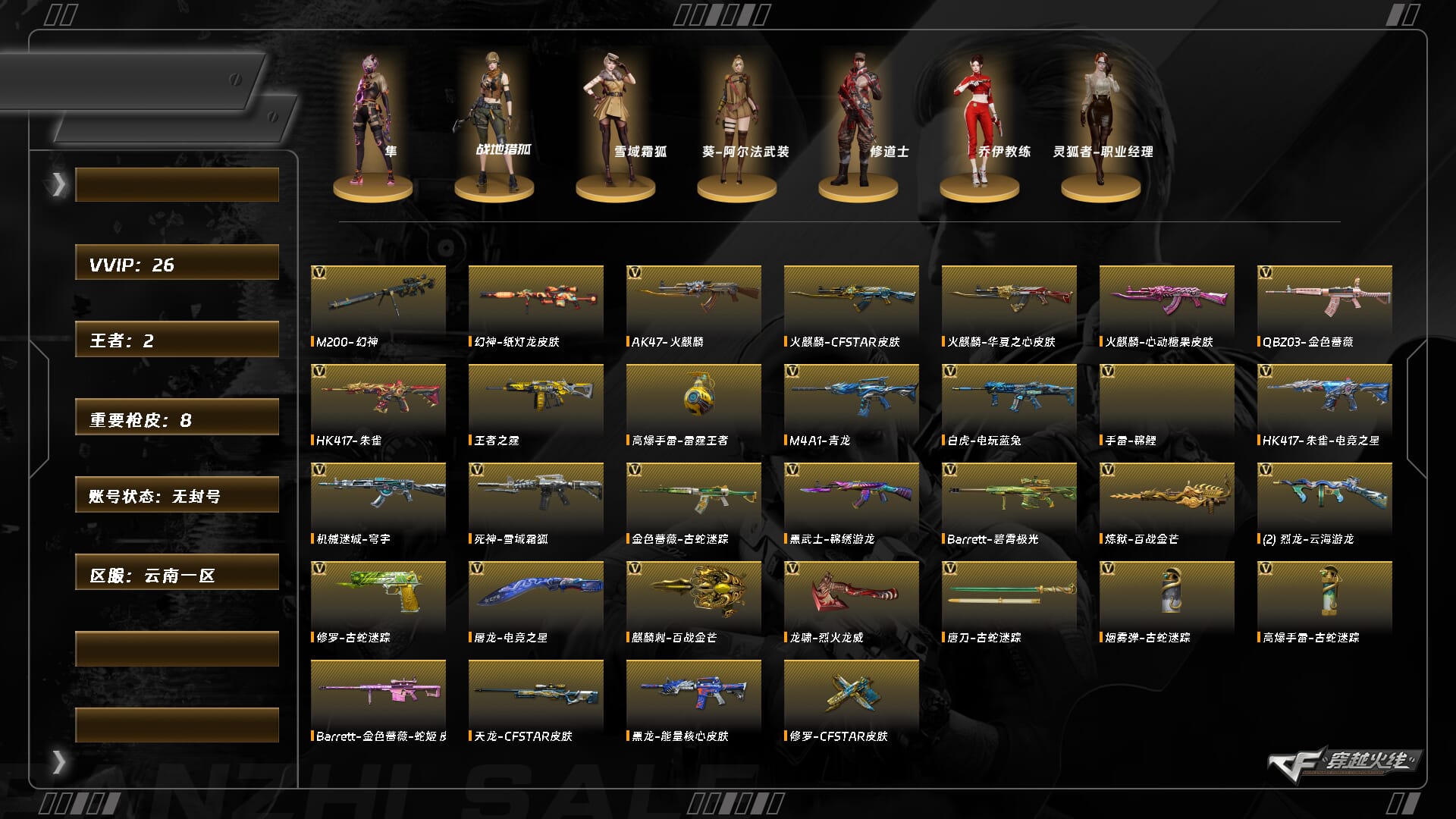 5403/西部/云南一区/可排位/段位未定段/lv.94 上将1/vip6/26v/幻神/幻神纸灯龙/青龙/朱雀/q金色蔷薇/金色蔷薇古蛇迷踪/白虎电玩蓝兔/朱雀电竞之星/火麒麟/无影神兵利器/死神雪域霜狐/【皮肤音效卡】/火麒麟心动糖果/死神雪域霜狐怀旧音效卡/炼狱百战金芒庆典舞曲音效卡/