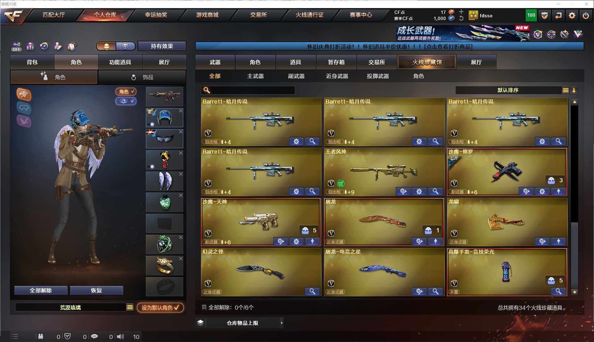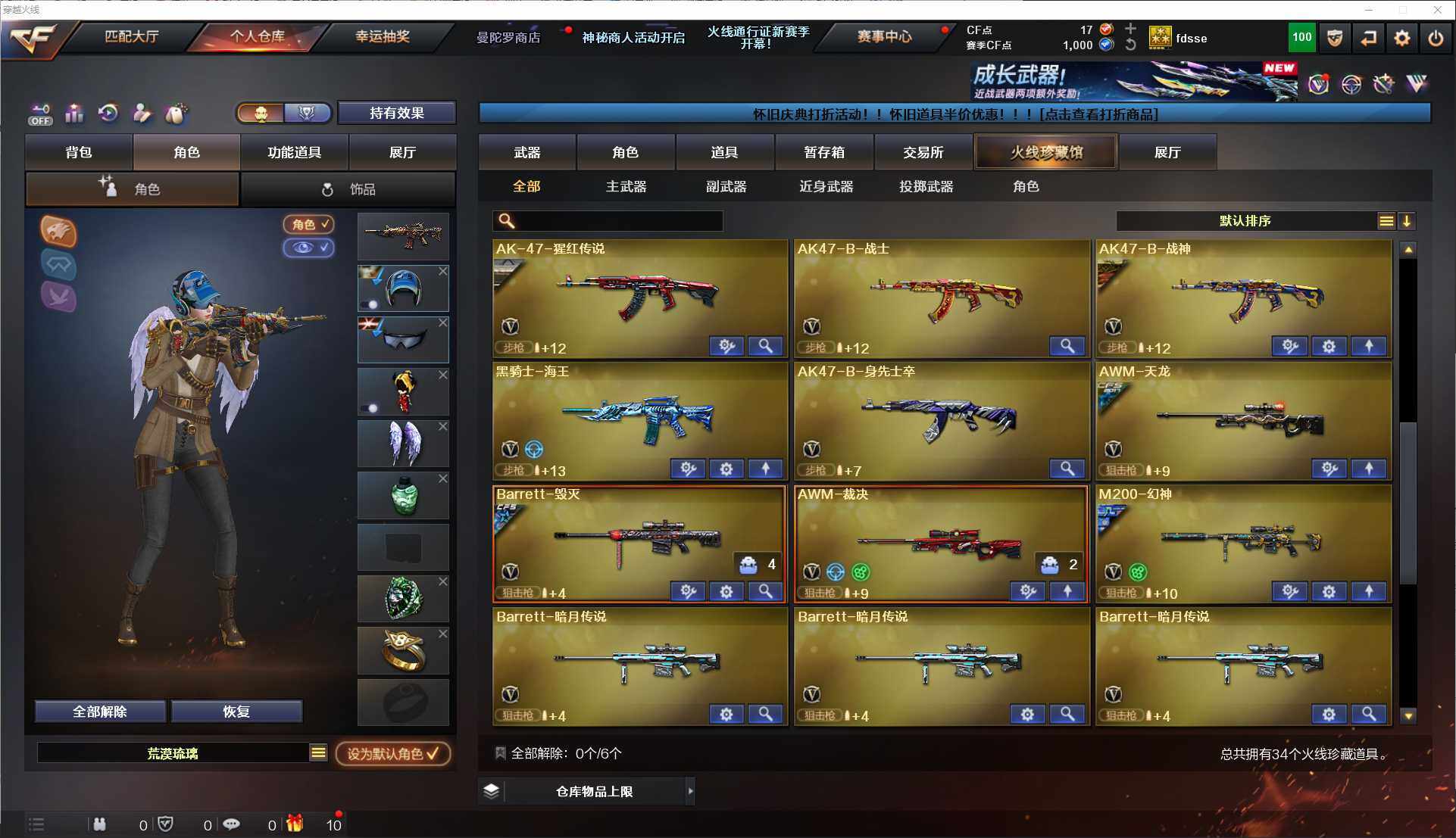 [16637436]a10709/可二次/湖南一区/34v/传奇2段位/【传说暗裔】【m200幻神电竞之星皮肤王者风神】awm-裁决/m4a1-雷神/m4a1-死神/q金色蔷薇竞星悦动音效卡/m4a1玫瑰精灵/毁灭sfs2018皮肤英雄计划皮肤//hk417朱雀-电竞之星音效卡/屠龙电竞之星音效卡/黑骑士音效卡/