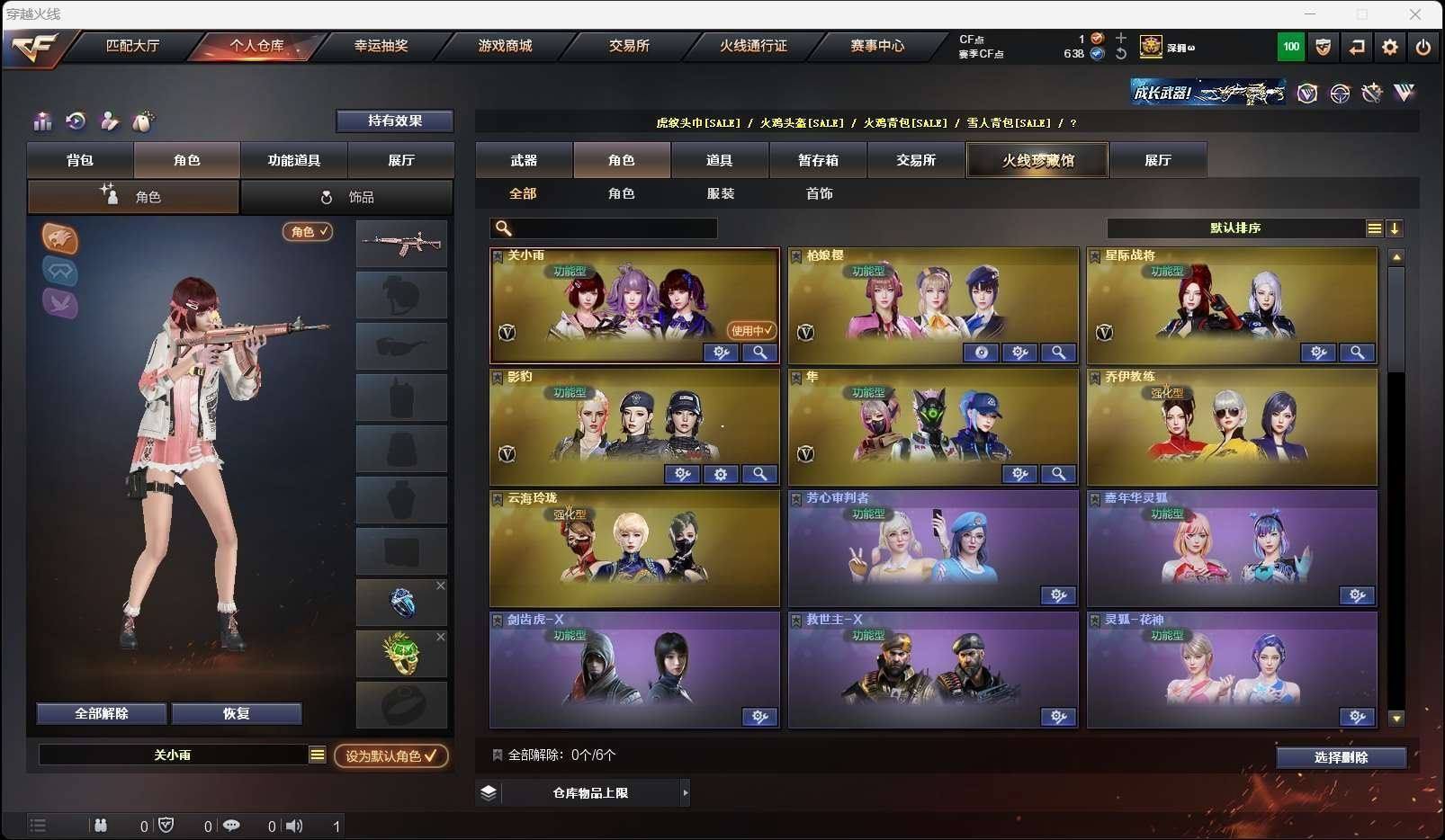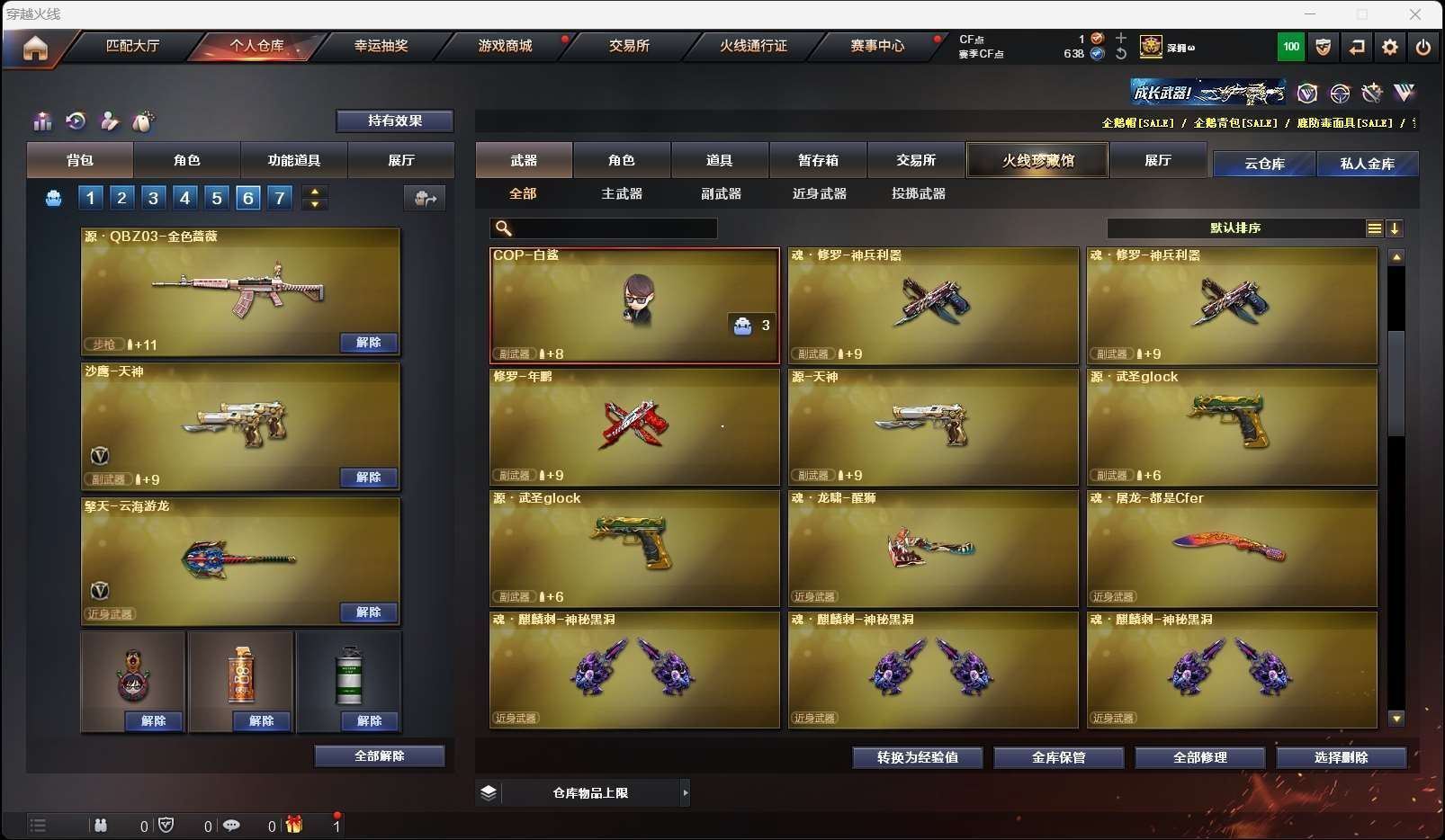 CFD546500号重庆一区 40v 【星神三件套!!!】【m200幻神3冠军之幻皮肤荣耀世冠白鲨2023】【98k星神星神音效卡呛娘默皮肤cop357幻灵】【传说夜影】【g36c幻影】【雷神荣耀之魄皮肤cfpls18冠军皮肤】【王者风势】【天启 超新星 锦绣游龙 猎神 裁决 烈龙】——【cop357幻灵 柯尔特荣耀世冠白鲨2023 沙鹰修罗 沙鹰天神 天神动感闪耀】——【屠龙 幻灵之锋 屠龙动感闪耀 擎天云海游龙】——【幻灵投掷武器套装】——【热门武器/小人呛】【赤狱骑士 雷神小红 玄武呛娘火莲 cop白鲨 斯泰尔-呛娘暗刃 金色小号 牛牛ak47】——【角色】【4防影豹】【关小雨 呛娘樱 星际战将 隼 乔伊教练 云海玲珑】