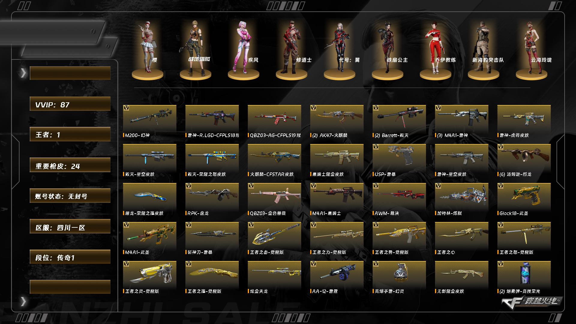 5355/西部/四川一区/可排位/【传奇1】/【lv.102 荣耀元帅】/vip6/85v/【挑战满阶段全部完成】/幻神/q金色蔷薇/qagcfpls19冠军/白虎电玩蓝兔/【裁决三件套】裁决/裁决音效卡/参加叶忙苍灵/火麒麟/雷神/黑骑士/毁灭/极光/黑武士/【生化】6烈龙/炼狱/修罗