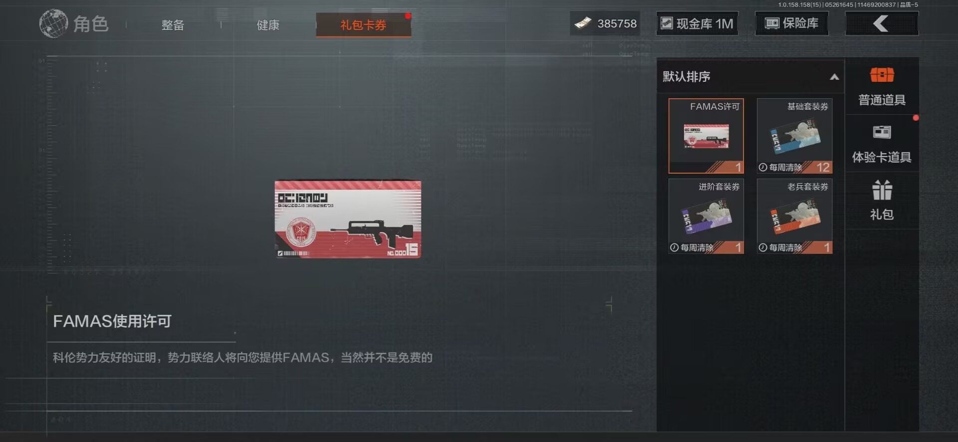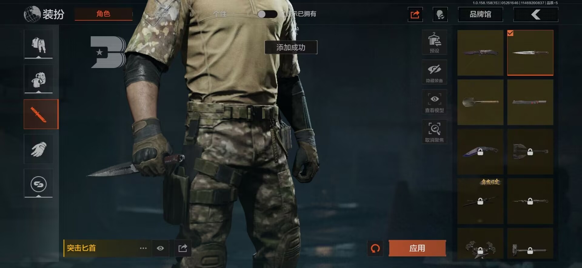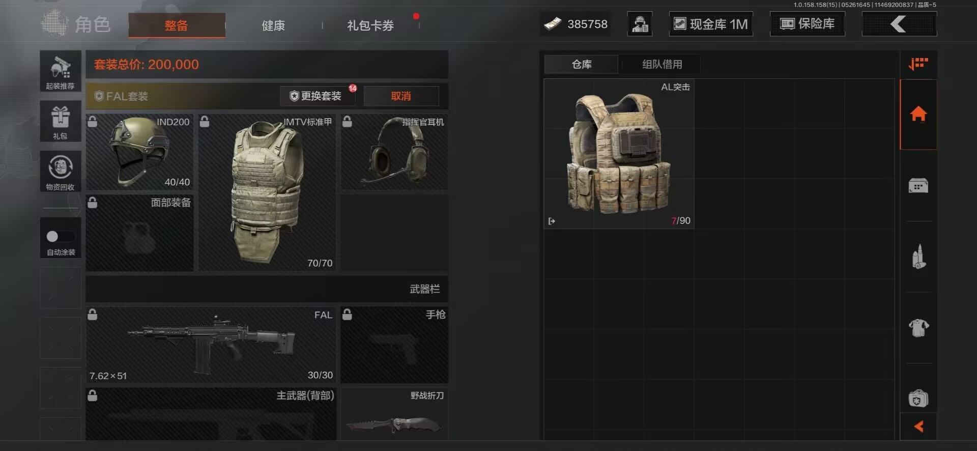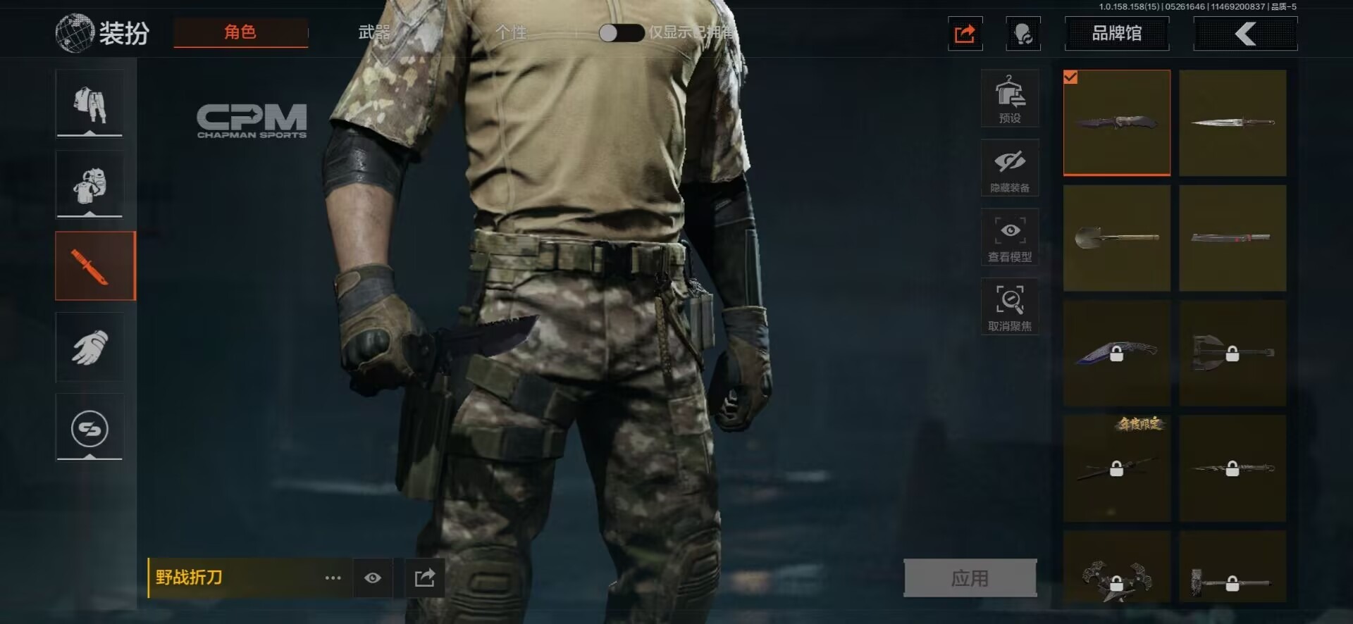[8599666]可二次 柯恩币数量:385758 仓库价值:11.5 近战武器:突击匕首工兵铲来战·开山刀野战折刀