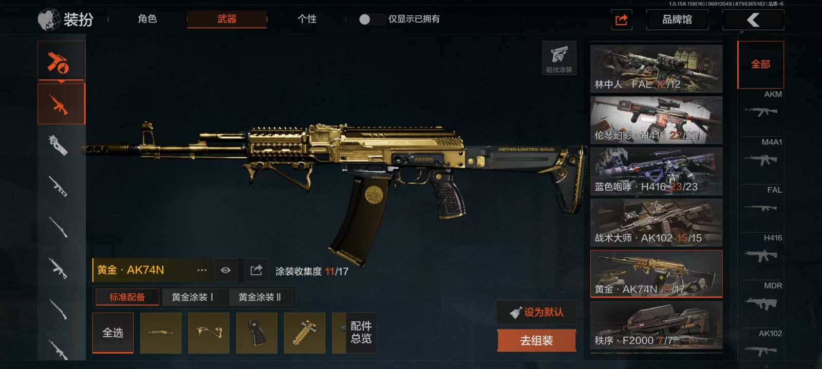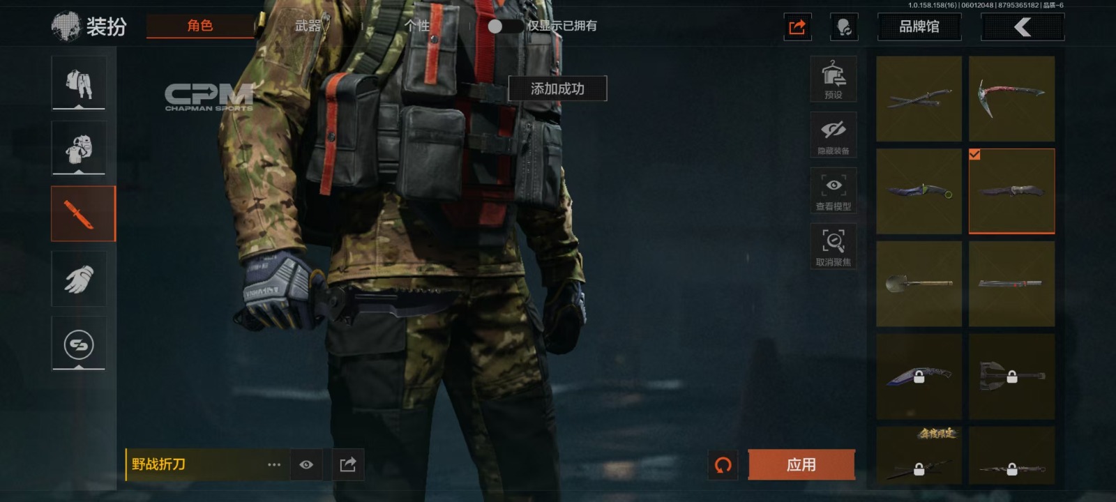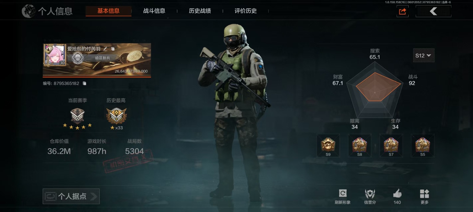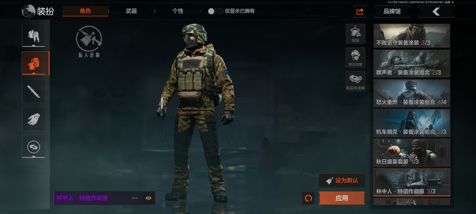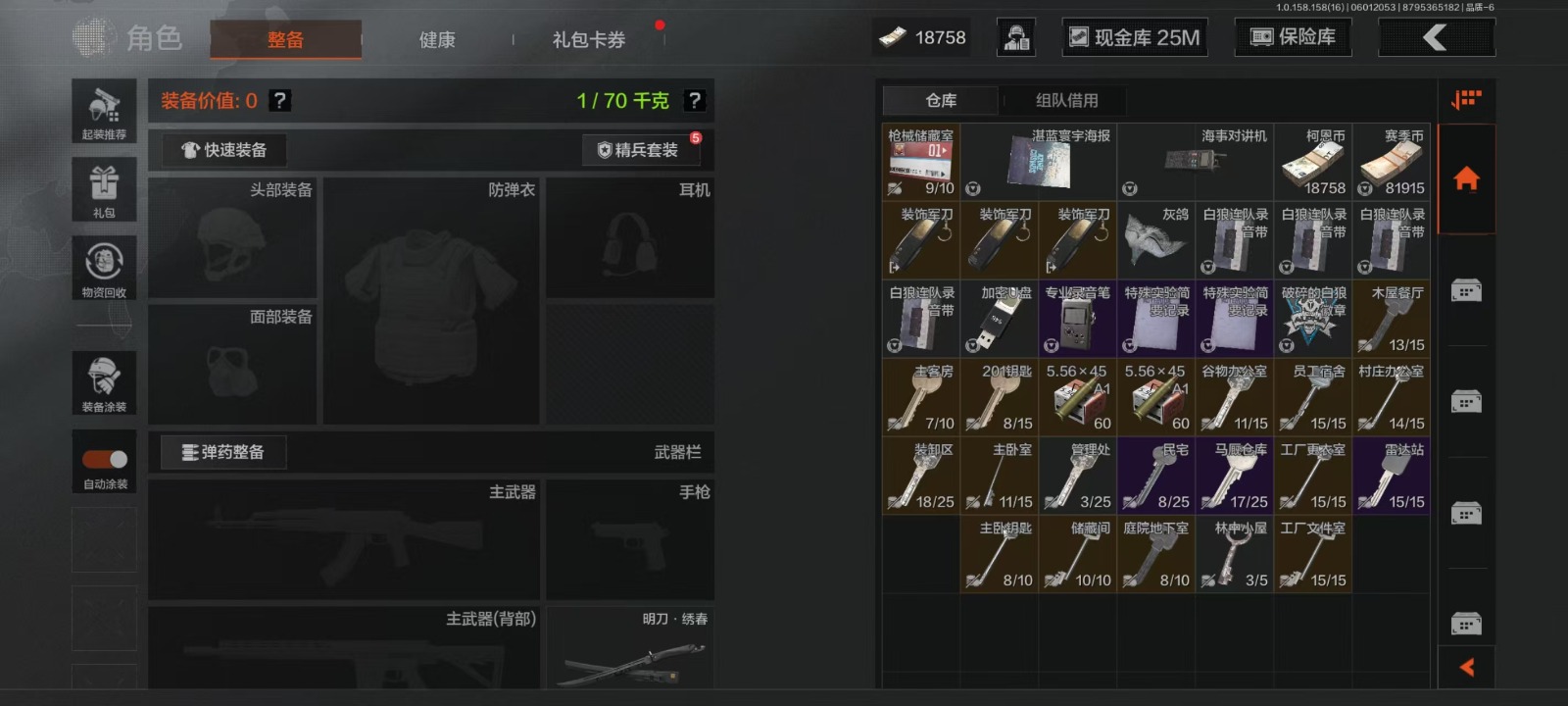 可二次 柯恩币数量:18758 仓库价值:36.2 角色装扮(金):林中人·特遣作战服不败坚守作战服 近战武器:工兵铲来战·开山刀明刀·绣春冬日冰镐急袭弯刀野战折刀 手套:急袭手套 金色呛皮:伦琴幻影·h416蓝色咆哮·h416骑士之剑·m4a1水果·ar57秩序·f2000黄