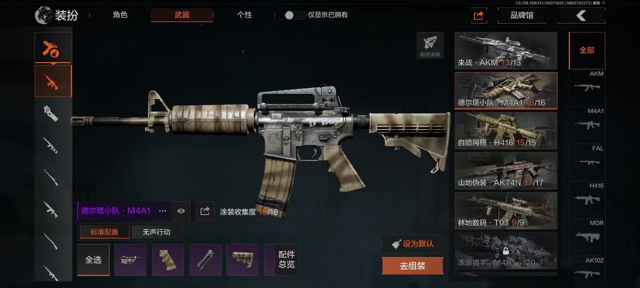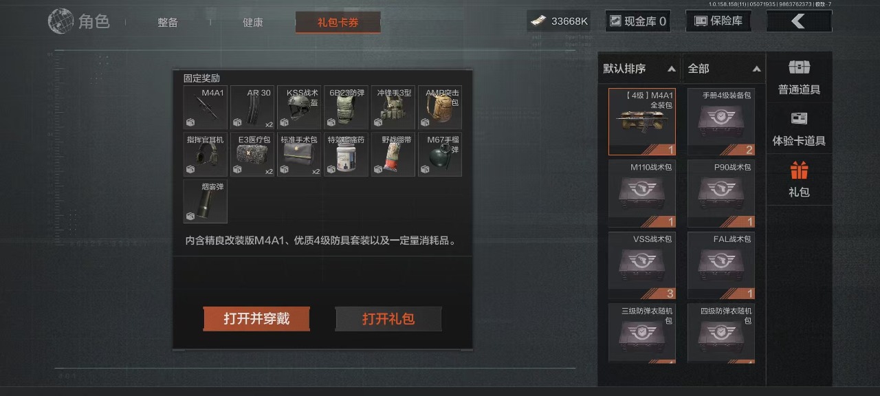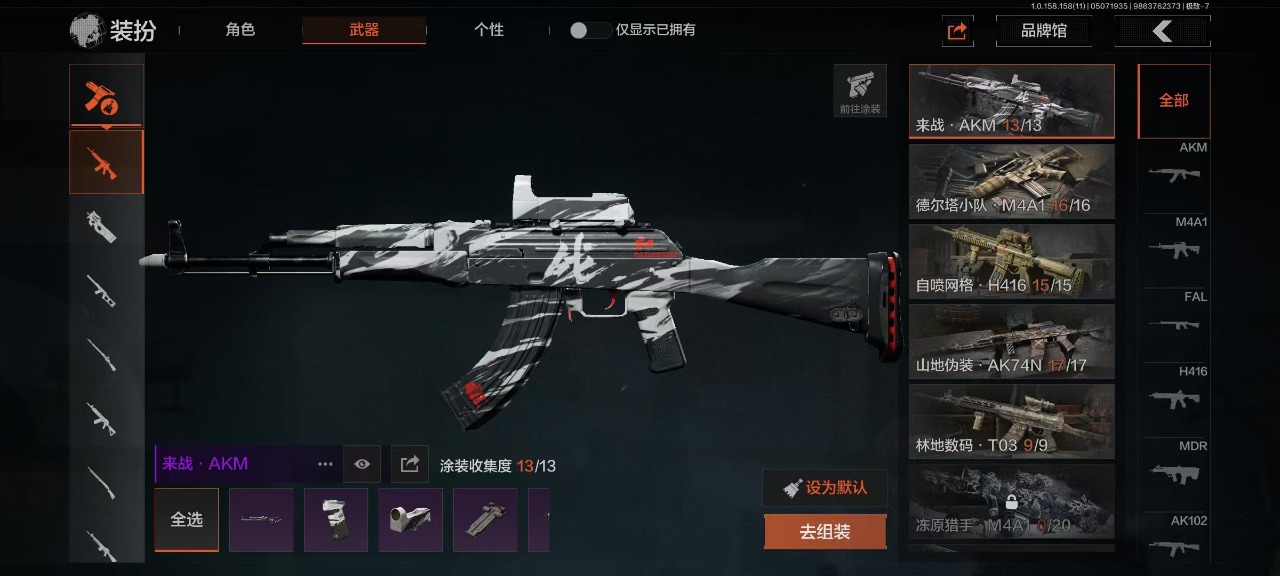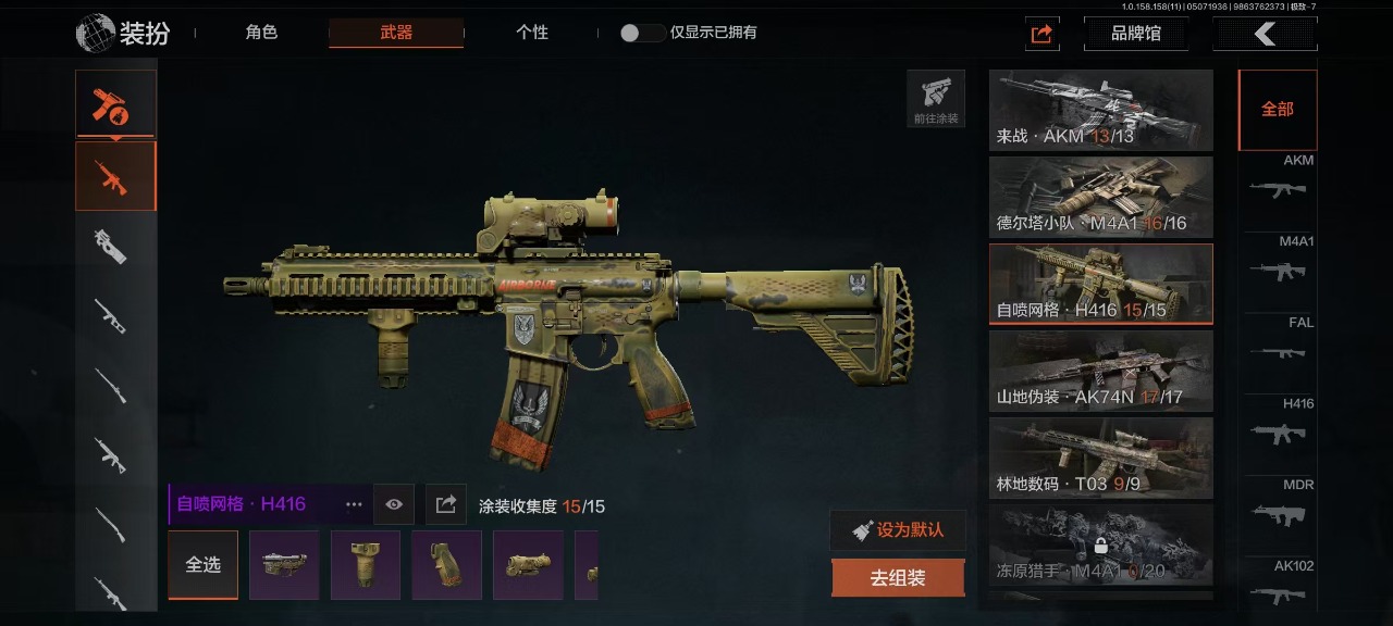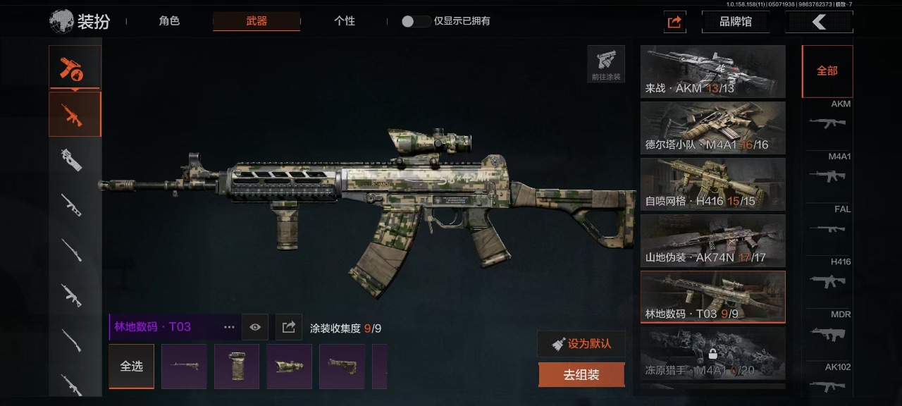 可二次 柯恩币数量:33668 仓库价值:38.3 近战武器:工兵铲来战·开山刀 紫色呛皮:山地伪装·ak74n林地数码·t03德尔塔小队·m4a1自喷网格·h416来战·akm