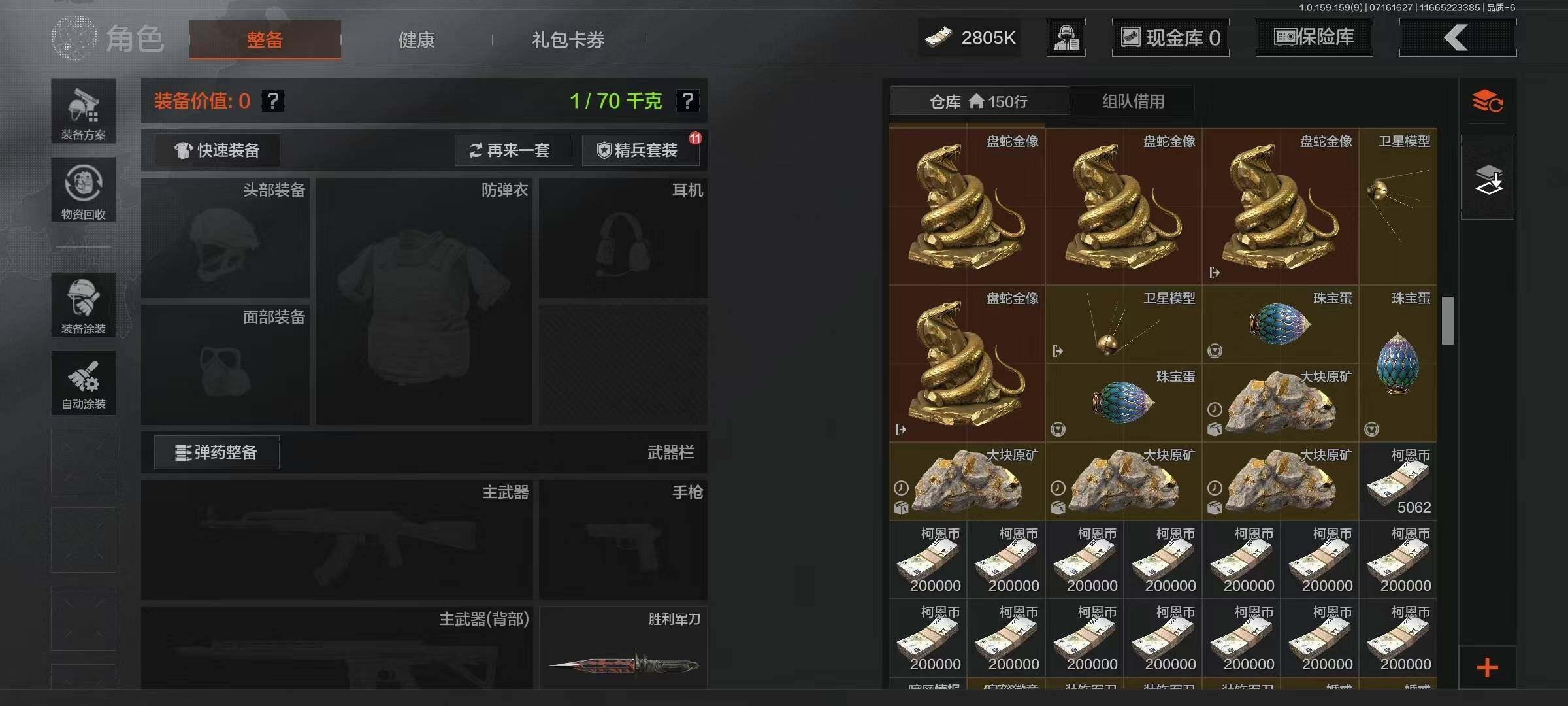 [9920869]暗区 可二次 1刀 1金呛 胜利军刀 竞技·fal 黑金国际·m4a1 最后防线·aek 神锋·vect45 娜迦·rpk16 台长室门卡