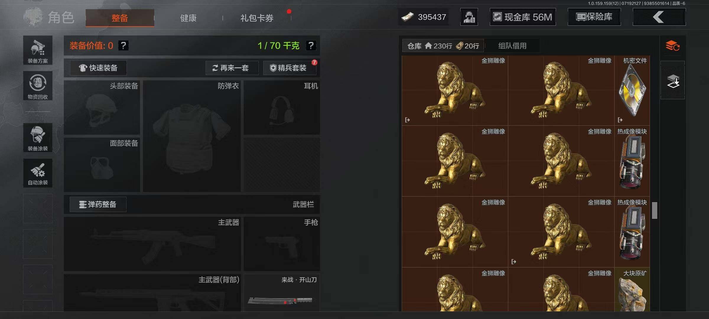 [9992428]暗区 可二次 仓库价值166m 1金呛 现金5600万 机密文件 蓝色咆哮·h416 主客房 理想国 火力倾泻·akm 竞技·m4a1 竞技·aug 最后防线·aek 炎夏浪花·ar57 暗区大鹅陈列 骑士之剑·mk14 骑士之剑·sj16