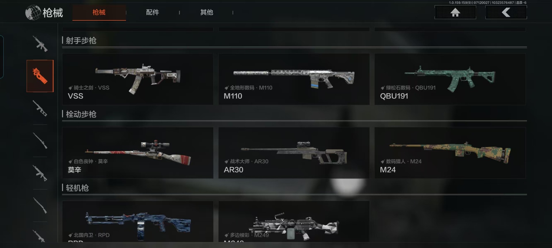 [10020249]可二次 可修改实名 柯恩币数量:1543 仓库价值:8.3 近战武器:寒牙手刺工兵铲来战·开山刀 金色呛皮:骑士之剑·vss 紫色呛皮:07式林地迷彩·q191火绒草·aug神锋·vect45灰鼠幻歌·p90白色丧钟·莫辛雪山之王·f2000雪山之王·m玄戈梨花·vss北国内卫·mdr北国内卫·an94骑士之剑·ace31骑士之剑·aks74u无畏·usas12炎夏浪花·h416炎夏浪花·mp5炎夏浪花·vss林地数码·t03真实之眼spr310德尔塔小队·m4a1来战·akm全地形数码·m110 大金:花瓶