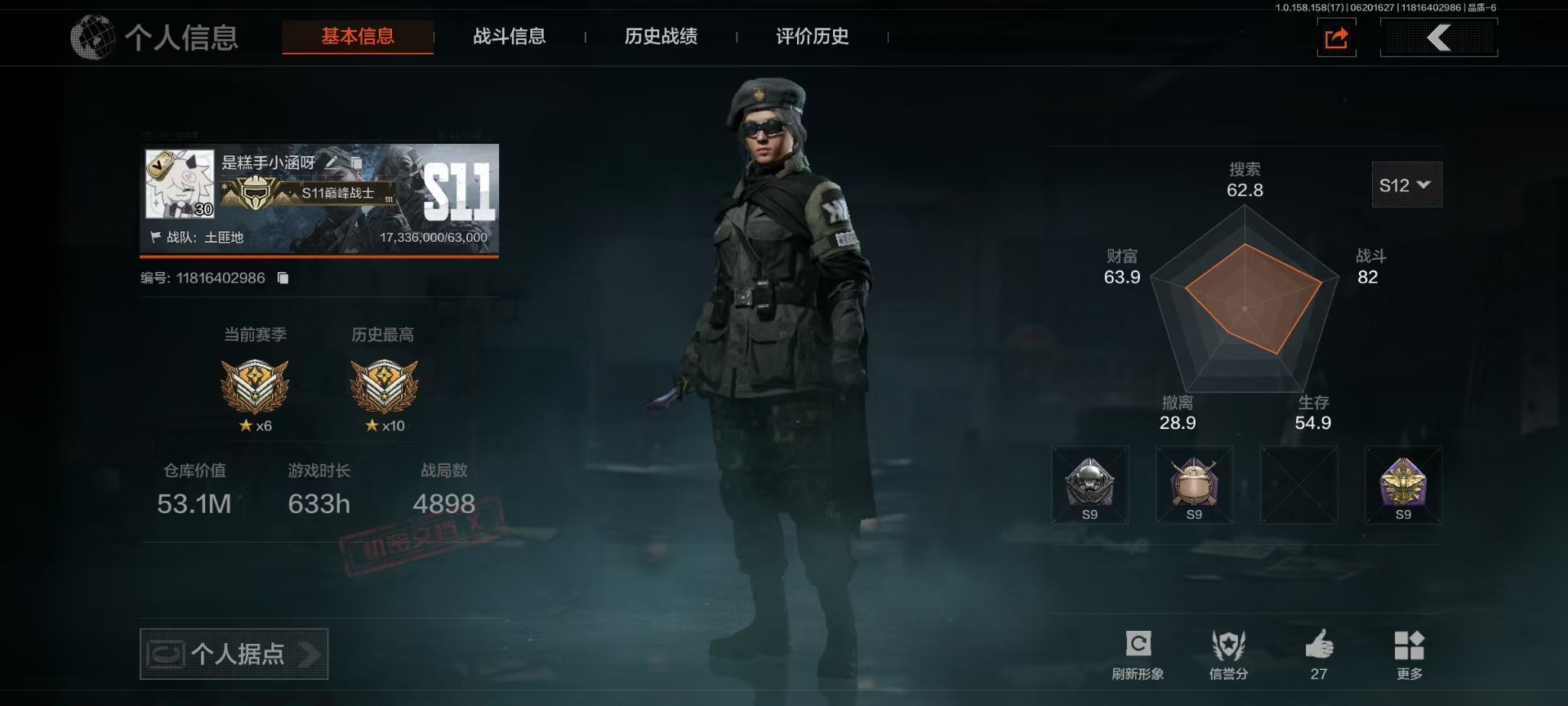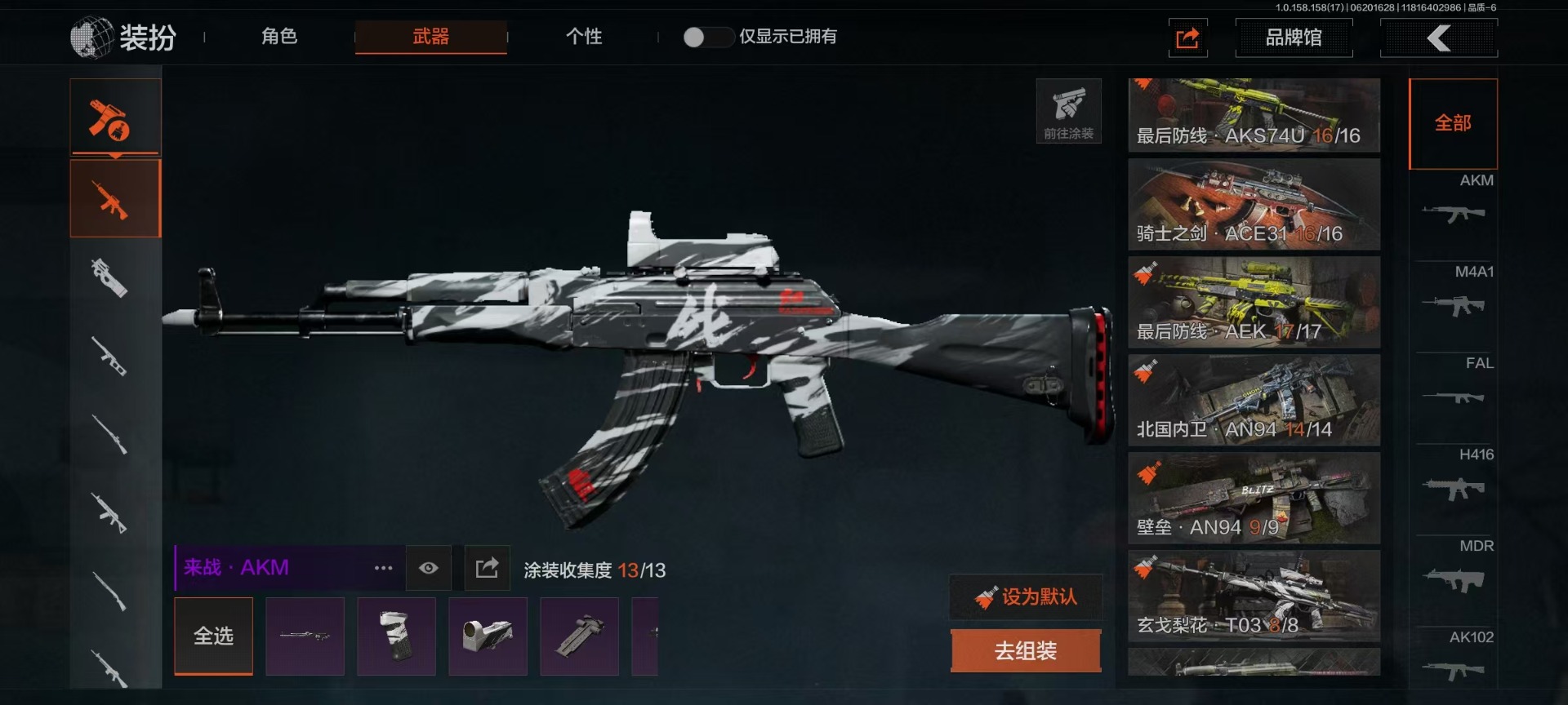 [10072551]可二次 柯恩币数量:785832 仓库价值:53.1 角色装扮(金):钢铁壁垒作战服 近战武器:工兵铲来战·开山刀急袭弯刀 金色呛皮:伦琴幻影·h416蓝色咆哮·h416 紫色呛皮:坚守·akm玄戈梨花·t03玄戈梨花·m伦琴计量·m110敬伙伴·m16最后防线·bm59最后防线·aek最后防线·aks74u掌中盾·mp5白色丧钟·莫辛北国内卫·mdr北国内卫·an94骑士之剑·ace31骑士之剑·sj16壁垒·an94竞技·m4a1来战·akm