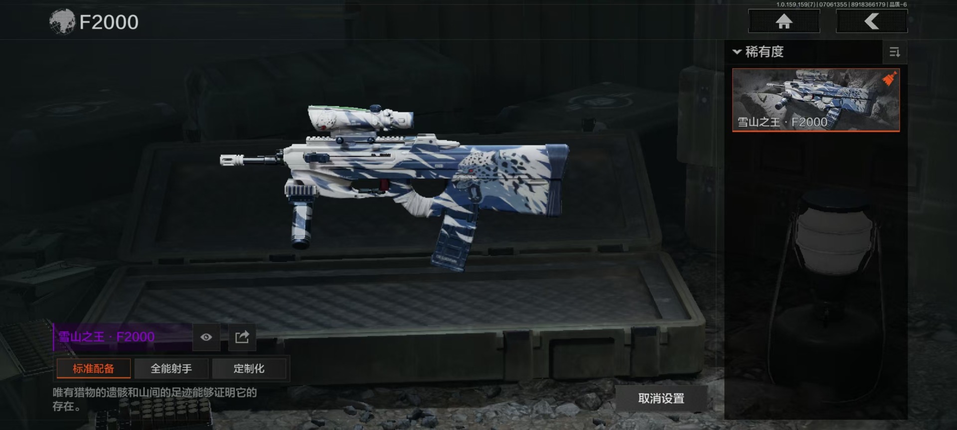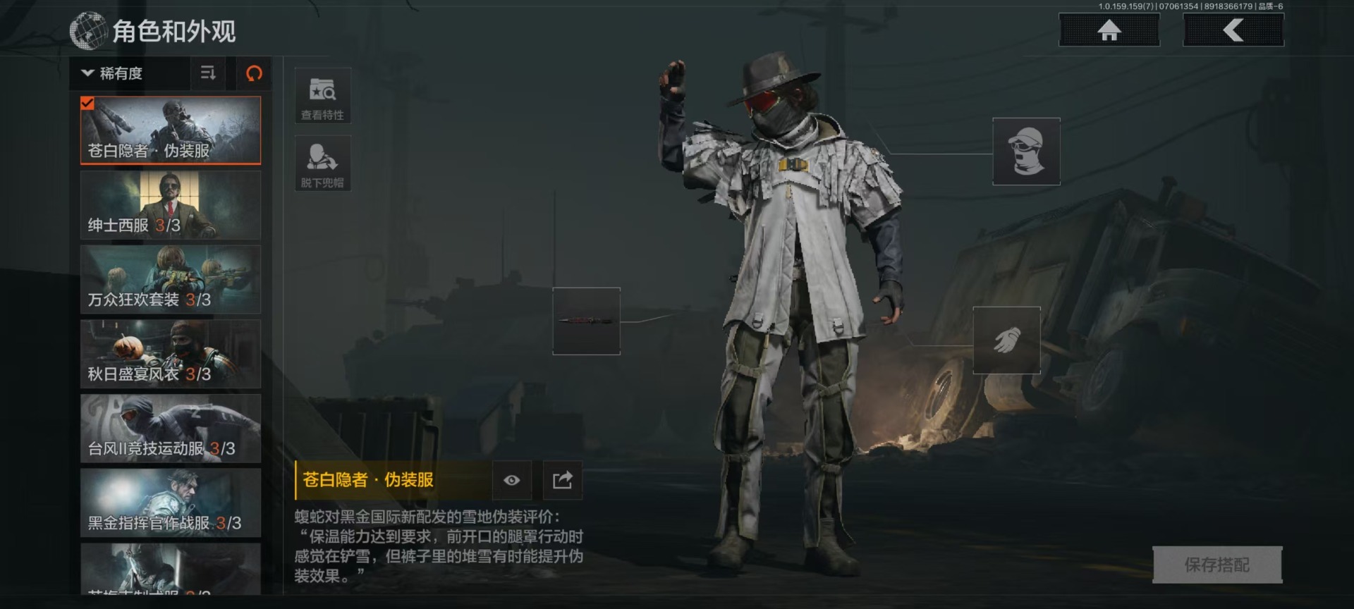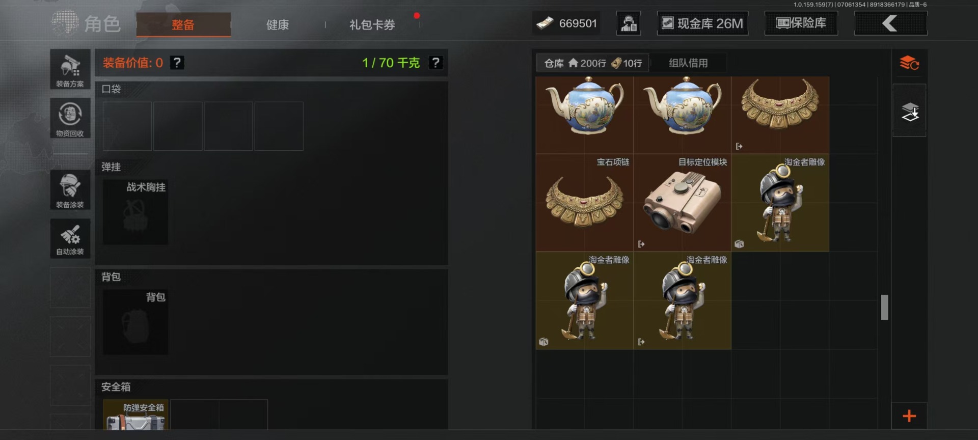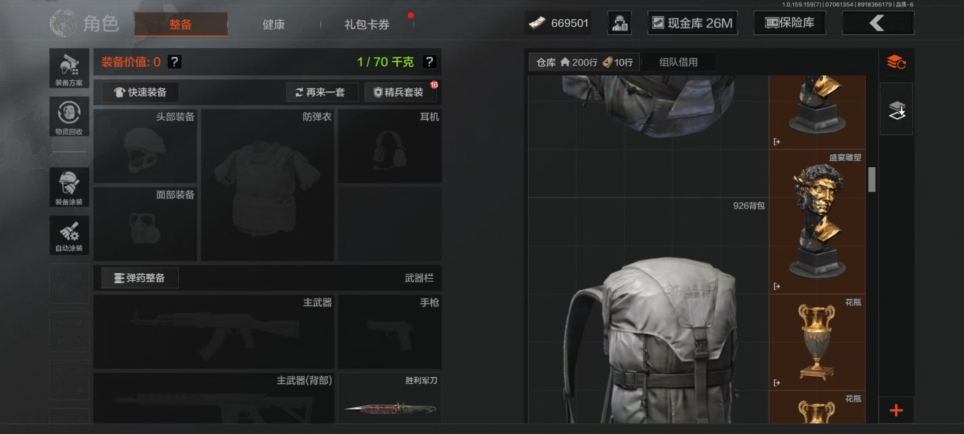 [10147009]可二次 可修改实名 柯恩币数量:669501 仓库价值:53.7 角色装扮(金):苍白隐者·伪装服绅士西服 近战武器:寒牙手刺工兵铲来战·开山刀胜利军刀裁决手杖剑 金色呛皮:午夜梦魇·fal 紫色呛皮:07式林地迷彩·q191缟兵玄墨·akm山地伪装·ak74n和平之手·fal禁止访问·ump45白色丧钟·莫辛雪原凌锋·ak74n雪原凌锋·svds雪山之王·f2000雪山之王·m缟兵玄墨·t03林地数码·t03逆火·mdr巅峰·m4a1自喷网格·h416来战·akm全地形数码·m110午夜梦魇·m110来战·ak74n恶念·vect9 角色装扮(紫):台风ii竞技运动服秋日盛宴风衣万众狂欢套装