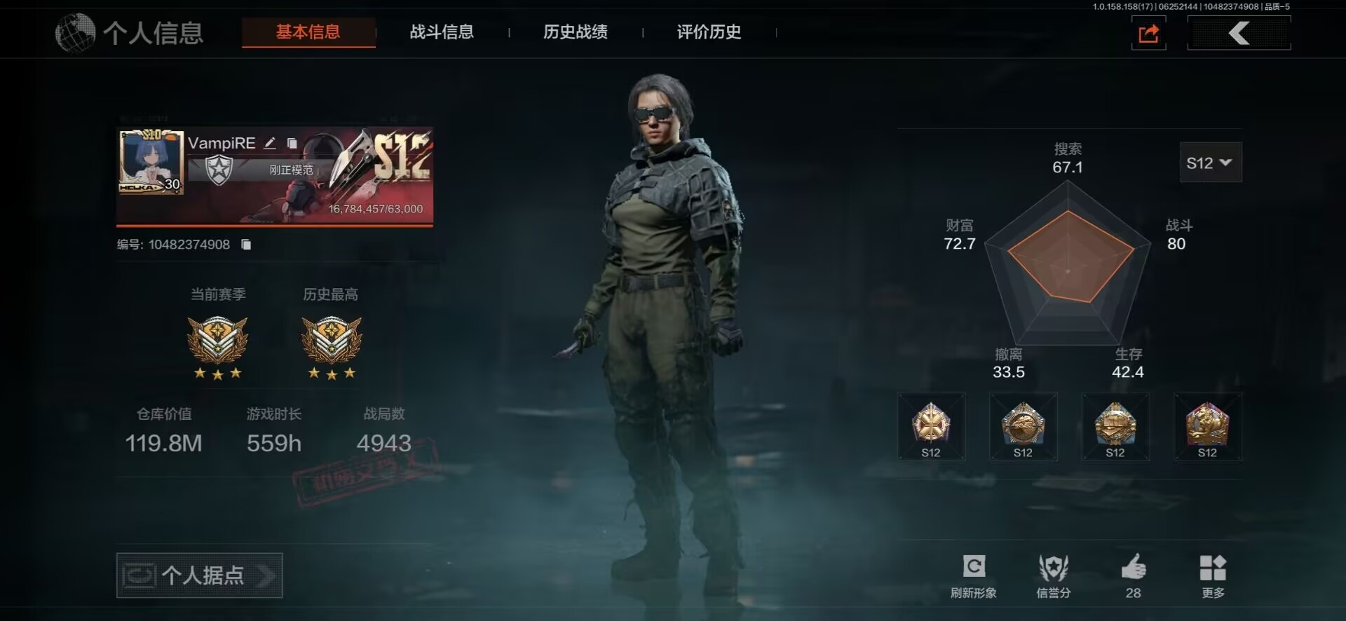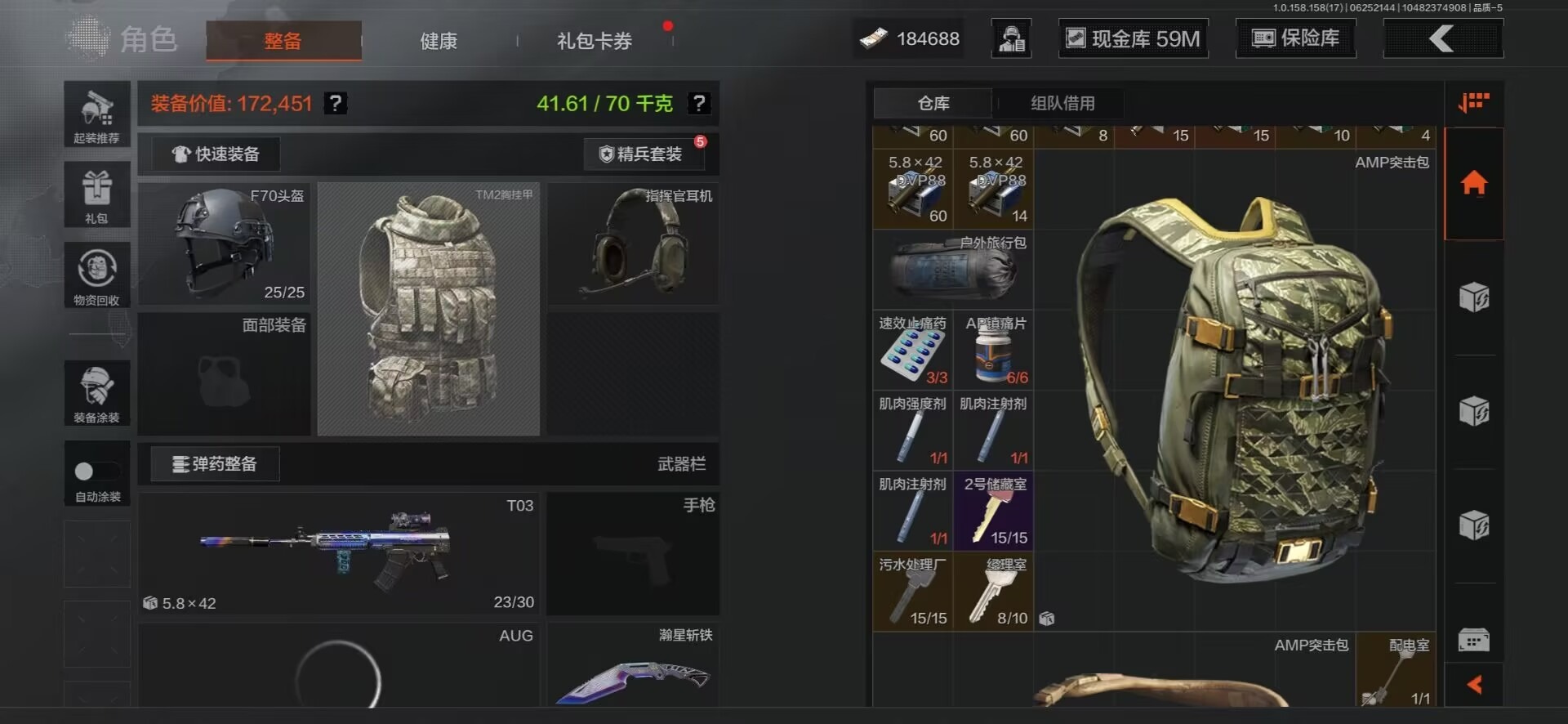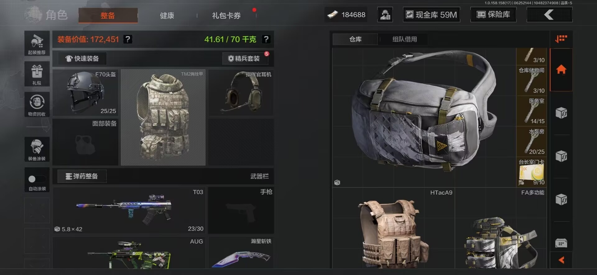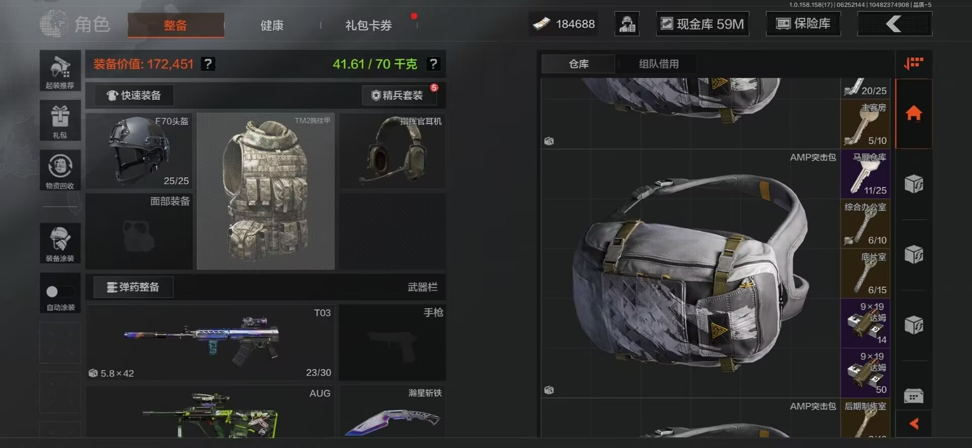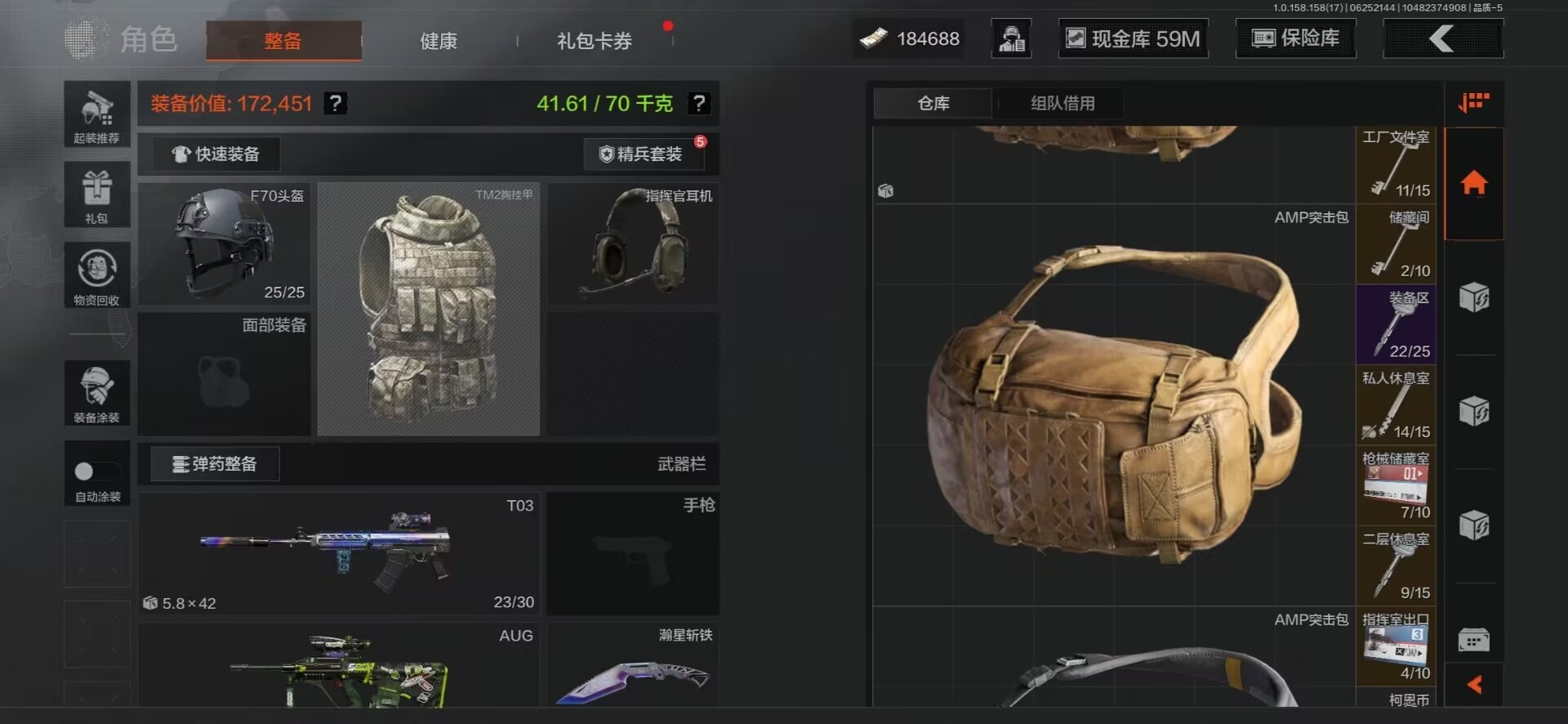 [10401818]可二次 柯恩币数量:184688 仓库价值:119.8 角色装扮(金):噤声者吉利服 近战武器:瀚星斩铁盘牙·彻甲短刃工兵铲来战·开山刀急袭弯刀精英指虎 金色呛皮:竞技·fal骑士之剑·vss蓝色咆哮·h416 紫色呛皮:缟兵玄墨·m缟兵玄墨·m110湖冰倒影·mp5无畏·usas12和平之手·fal禁止访问·ump45白色丧钟·莫辛北国内卫·mdr骑士之剑·sj16骑士之剑·mk14白狼连队·vss自喷网格·h416涂鸦·m德尔塔小队·h416 小金:金豹雕像 金手镯 金块 金手表 钻戒 胸针 金魔方 金杯 大金:茶壶 花瓶 机密文件 金狮子 盘蛇金像