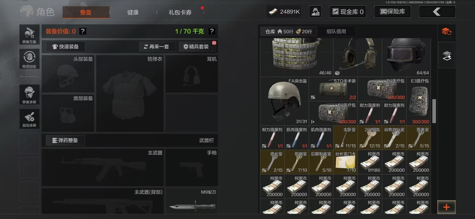 [10416905]可二次 可修改实名 柯恩币数量:24891 仓库价值:32.2 近战武器:工兵铲 紫色呛皮:火力倾泻·aug