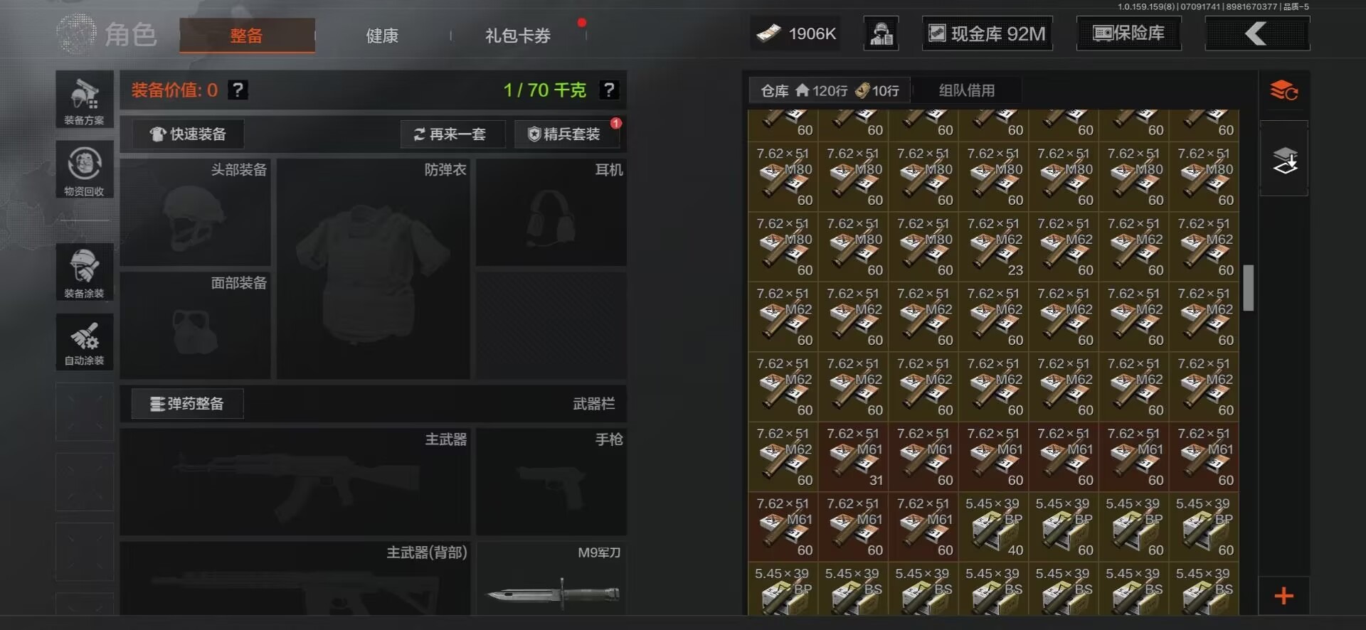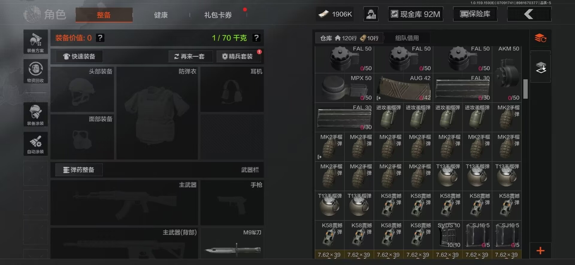可二次 可修改实名 柯恩币数量:1906 仓库价值:105.2 紫色呛皮:最后防线·aek无畏·usas12炎夏浪花·mp5
