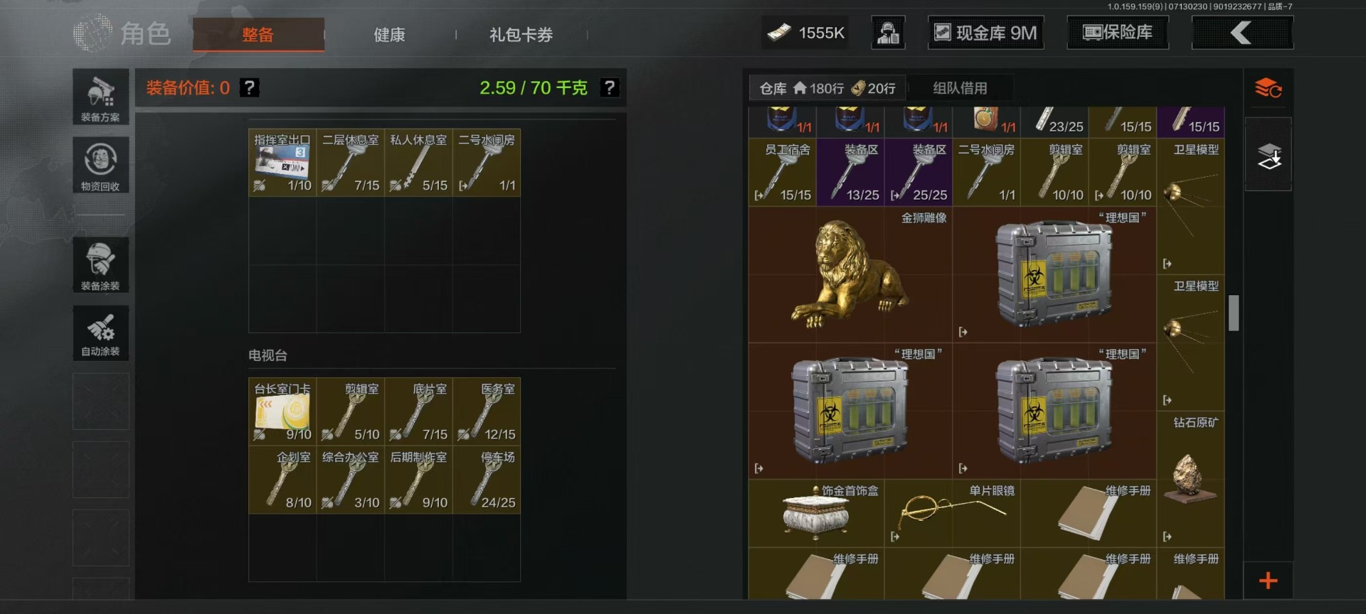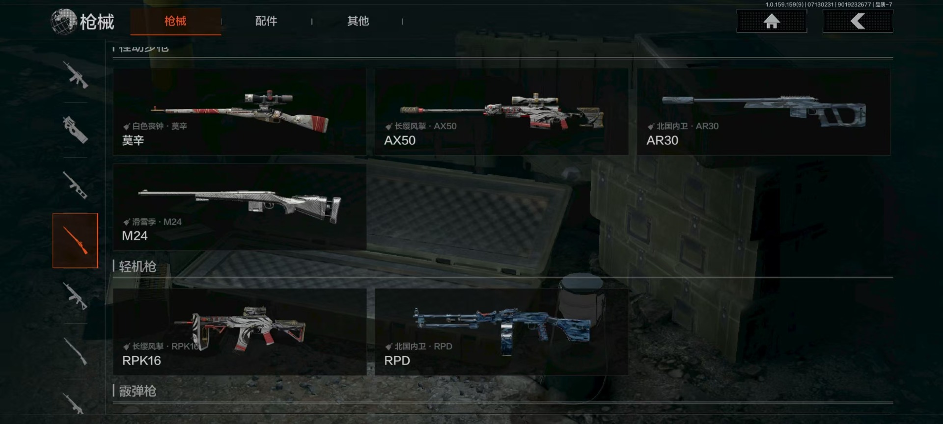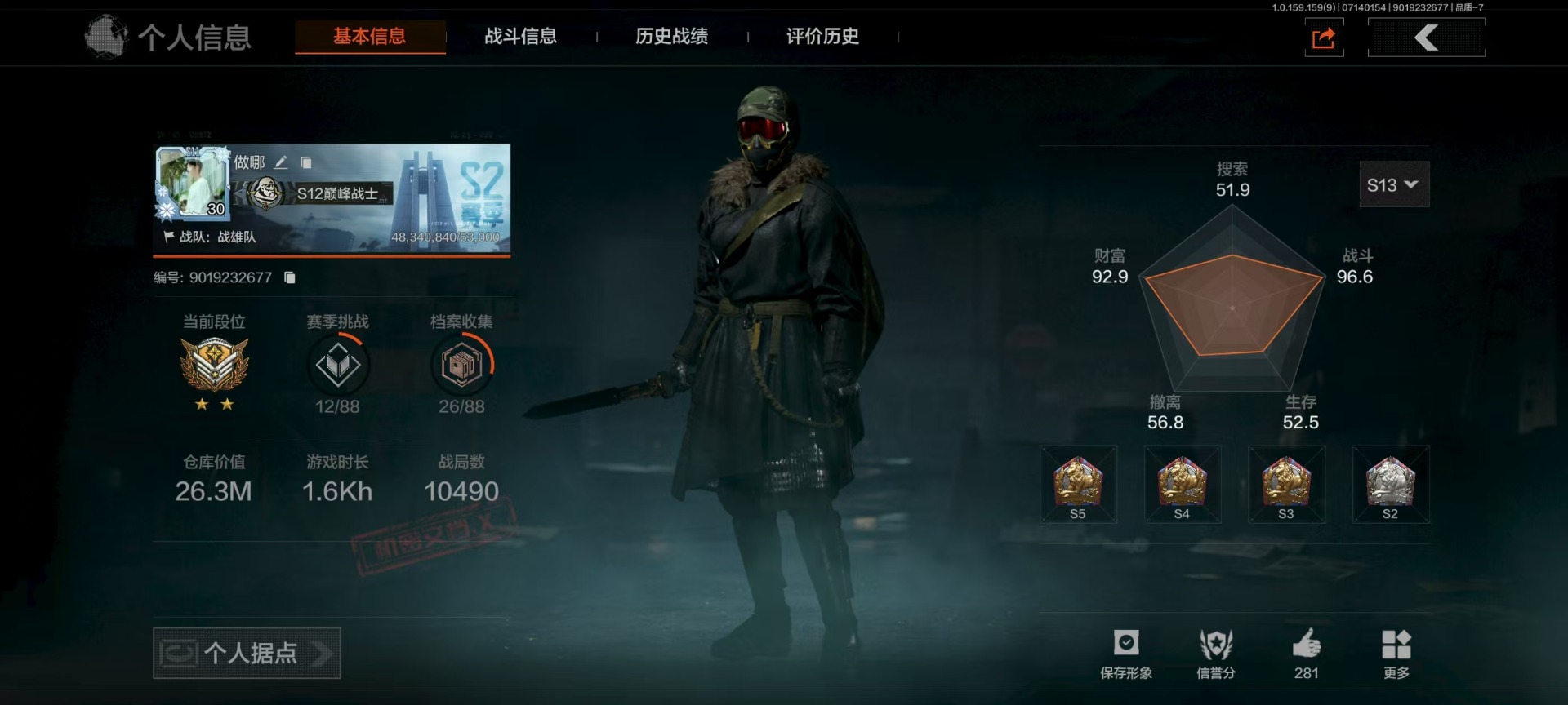[10425785]可二次 可修改实名 柯恩币数量:1555 仓库价值:26.3 角色装扮(金):都护铁衣·战术甲胄绕指玉鸾·战术甲胄苍白隐者·伪装服 近战武器:三尺万仞·战术剑工兵铲来战·开山刀涂鸦利刃胜利军刀明刀·绣春冬日冰镐急袭弯刀 手套:角弓得控·手套 金色呛皮:长缨风掣·rpk16长缨风掣·ax50冰河碎影·mk14蓝色咆哮·h416 紫色呛皮:白色丧钟·莫辛北国内卫·mdr07式林地迷彩·q191玄戈梨花·vss湖冰倒影·mp5雪原凌锋·svds德尔塔小队·h416骑士之剑·mk14无畏·usas12炎夏浪花·h416竞技·aug最后防线·aks74u雪原凌锋·ak74n竞技·m4a1涂鸦·ak102来战·akm涂鸦·g18c娜迦·rpk16涂鸦·m光粒子·m110 角色装扮(紫):台风ii竞技运动服都市夜影套装