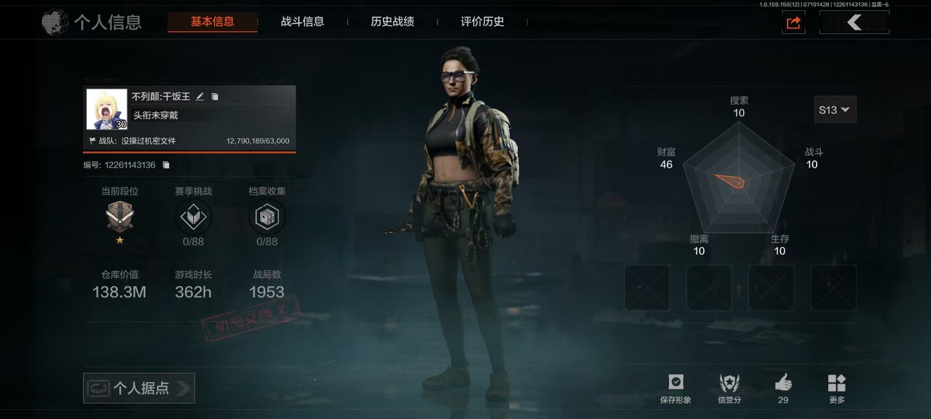[10426717]可二次 可修改实名 柯恩币数量:6935 仓库价值:138.3 角色装扮(金):危崖魅影作战服 近战武器:盘牙·彻甲短刃来战·开山刀裁决手杖剑急袭弯刀 金色呛皮:竞技·fal骑士之剑·vss蓝色咆哮·h416堕落者·h416诸星之子·fal 紫色呛皮:玄戈梨花·vss