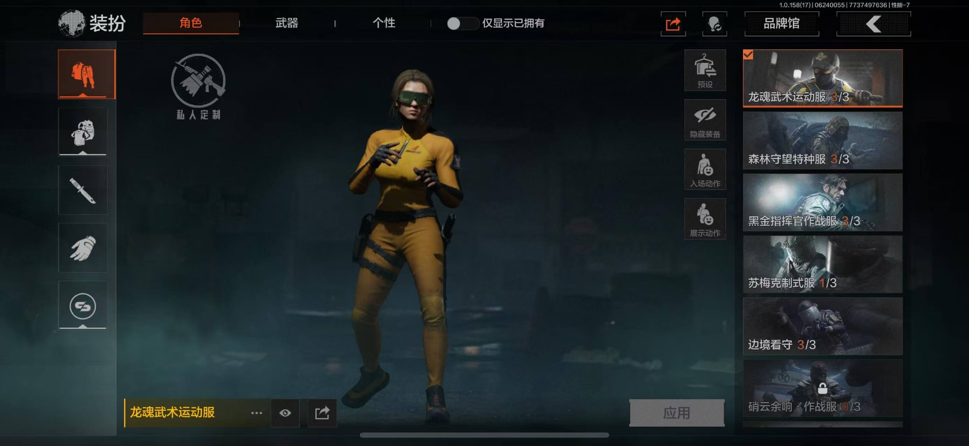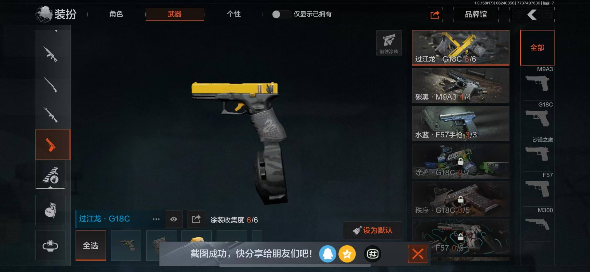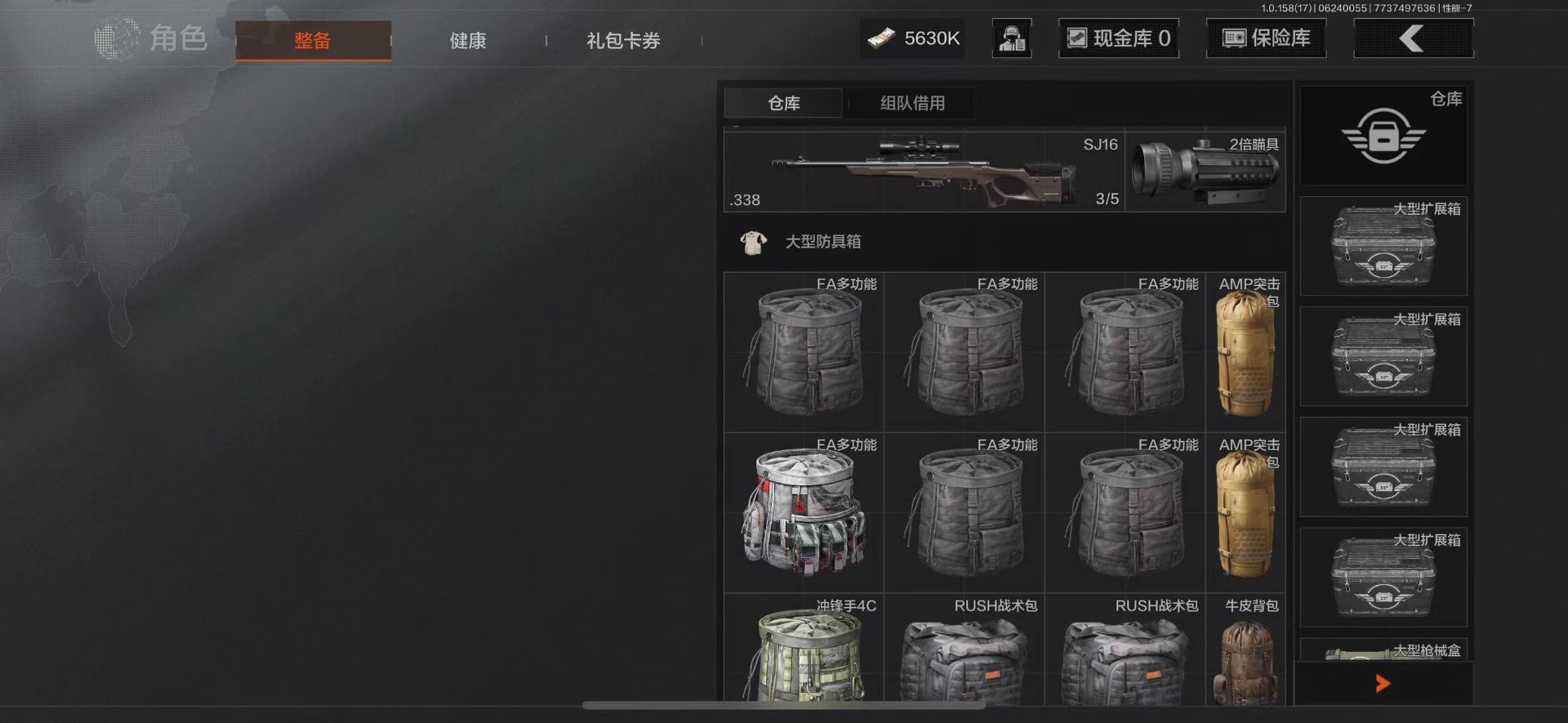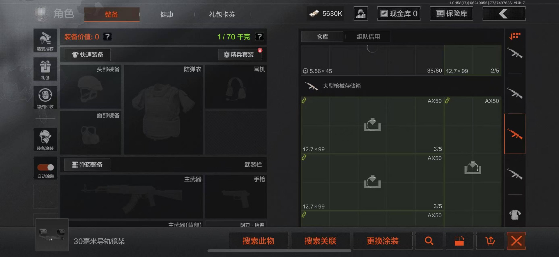 可二次 柯恩币数量:5630 仓库价值:21.9 角色装扮(金):龙魂武术运动服 近战武器:工兵铲明刀·绣春龙魂·双节棍 金色呛皮:竞技·fal长缨风掣·vect9 紫色呛皮:缟兵玄墨·akm缟兵玄墨·m110玄戈梨花·vss玄戈梨花·t03玄戈梨花·m缟兵玄墨·vss最后