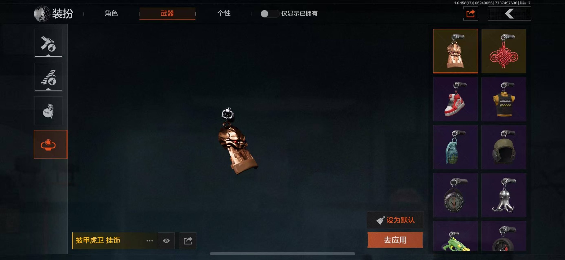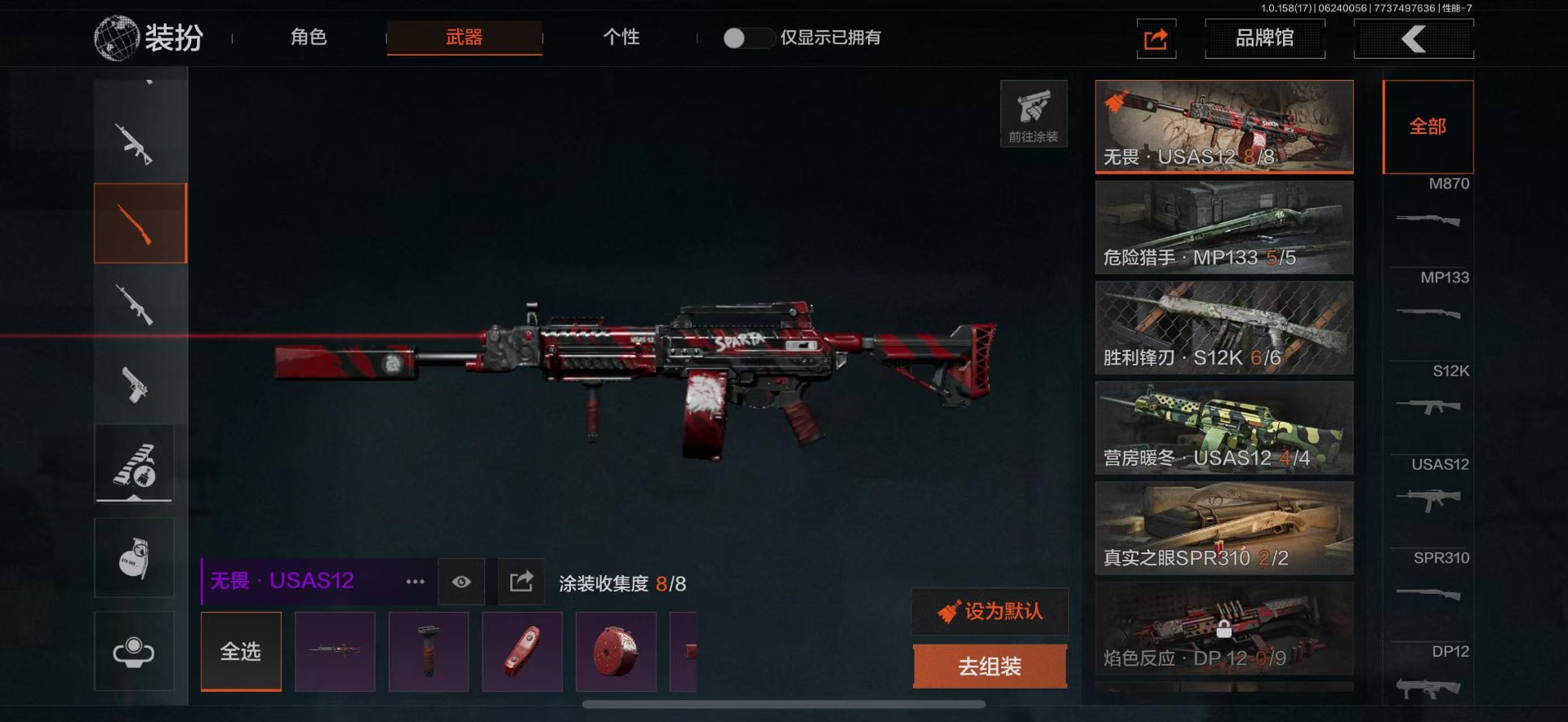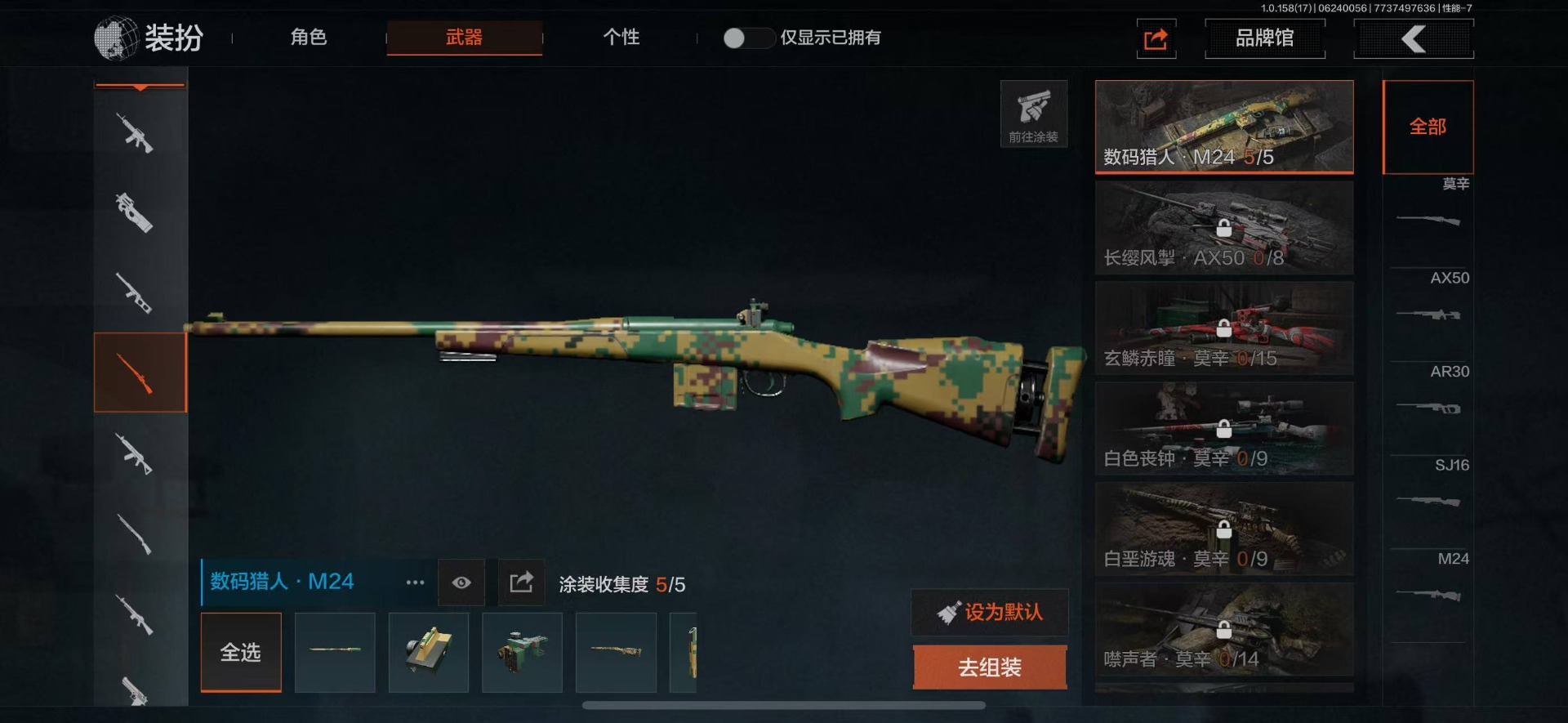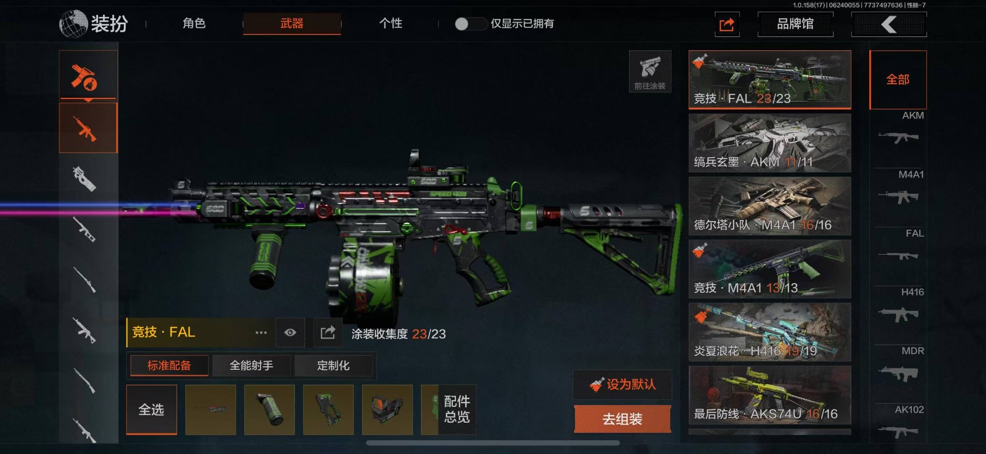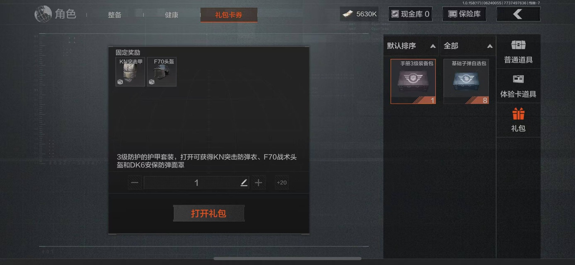 可二次 柯恩币数量:5630 仓库价值:21.9 角色装扮(金):龙魂武术运动服 近战武器:工兵铲明刀·绣春龙魂·双节棍 金色呛皮:竞技·fal长缨风掣·vect9 紫色呛皮:缟兵玄墨·akm缟兵玄墨·m110玄戈梨花·vss玄戈梨花·t03玄戈梨花·m缟兵玄墨·vss最后