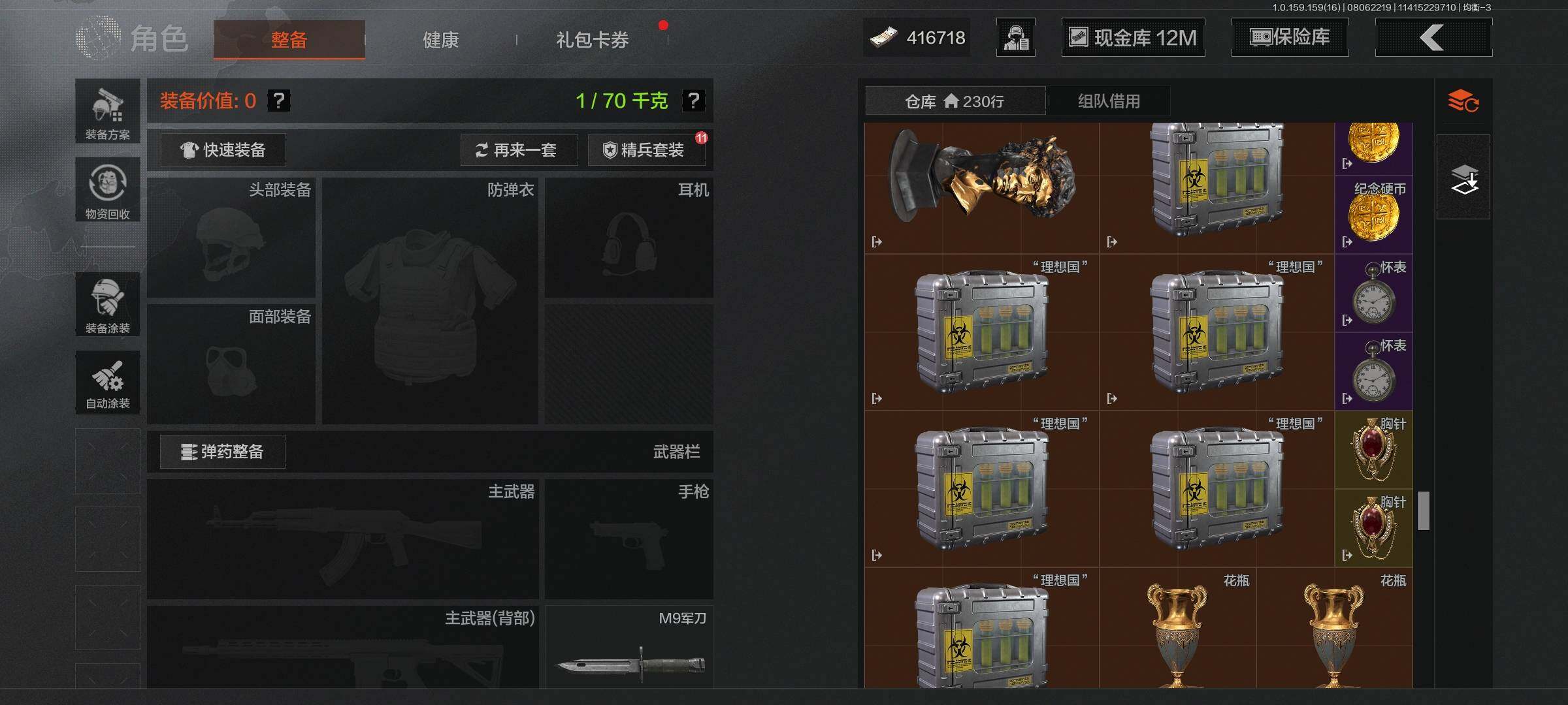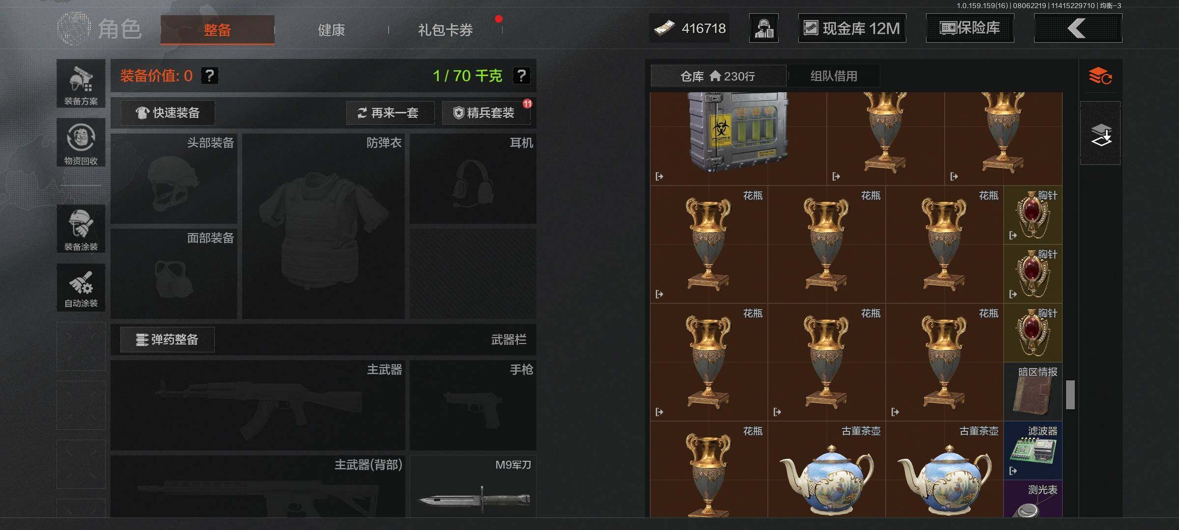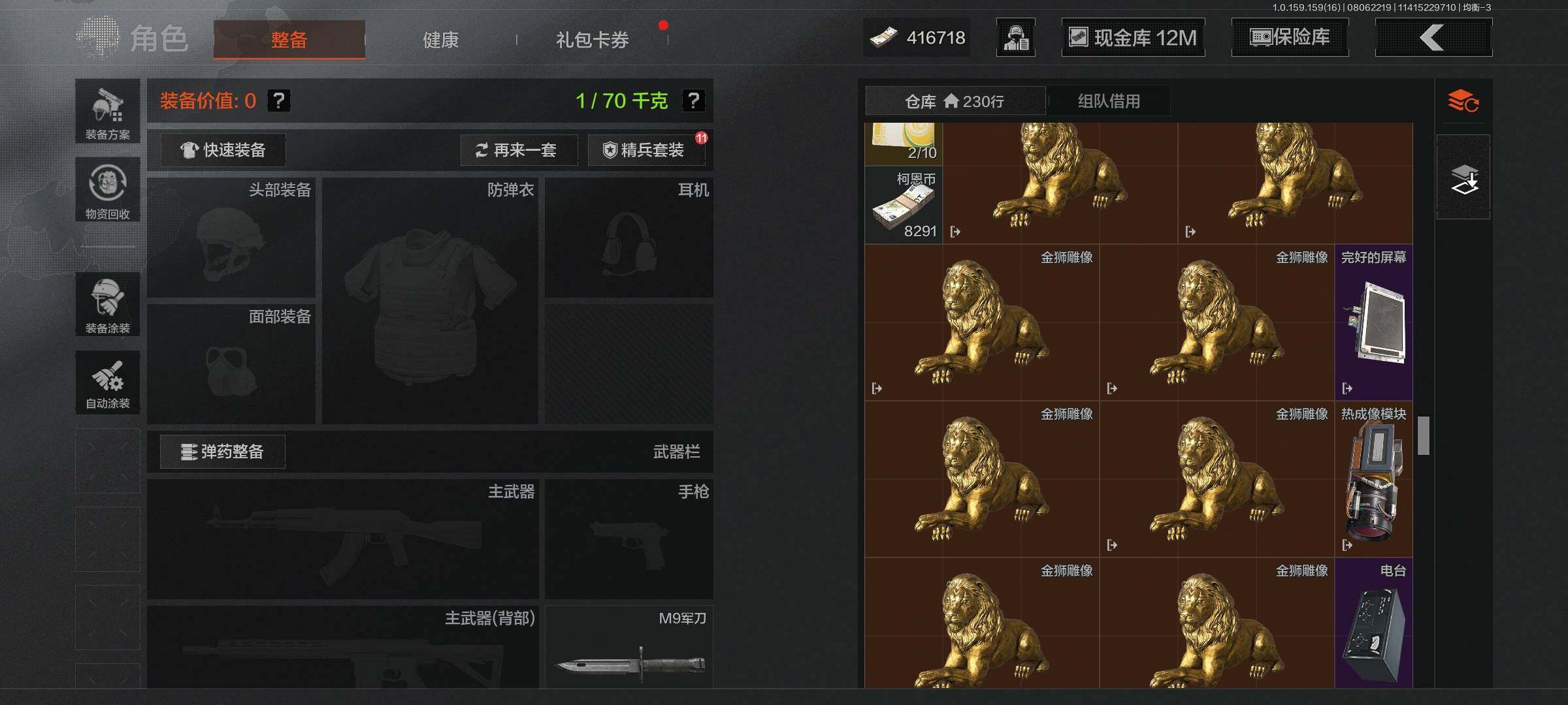 [10468630]暗区 可二次 欧皇摸金号 多大金 仓库价值80.2m 现金1200万 理想国 秋宴fal 火力倾泻aug 理想国陈列 金狮雕像 盛宴雕像 理想国 花瓶 古董茶壶 宝石项链 义手模型 石中剑 ,“理想国”试剂盒,盛宴雕塑,金狮子,花瓶,茶壶