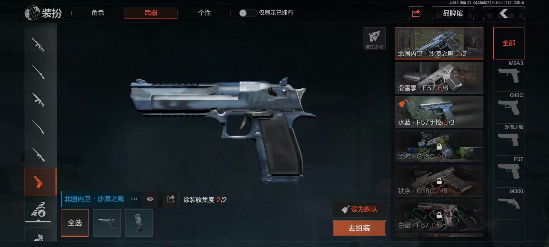 可二次 柯恩币数量:171477 仓库价值:97.2 近战武器:工兵铲明刀·绣春 手套:战术甲胄·防护手套 金色呛皮:战术大师·vss 紫色呛皮:玄戈梨花·t03玄戈梨花·m涂绘猎人·ar57湖冰倒影·ace31竞技·aug无畏·usas12北国内卫·an94骑士之剑·ace31