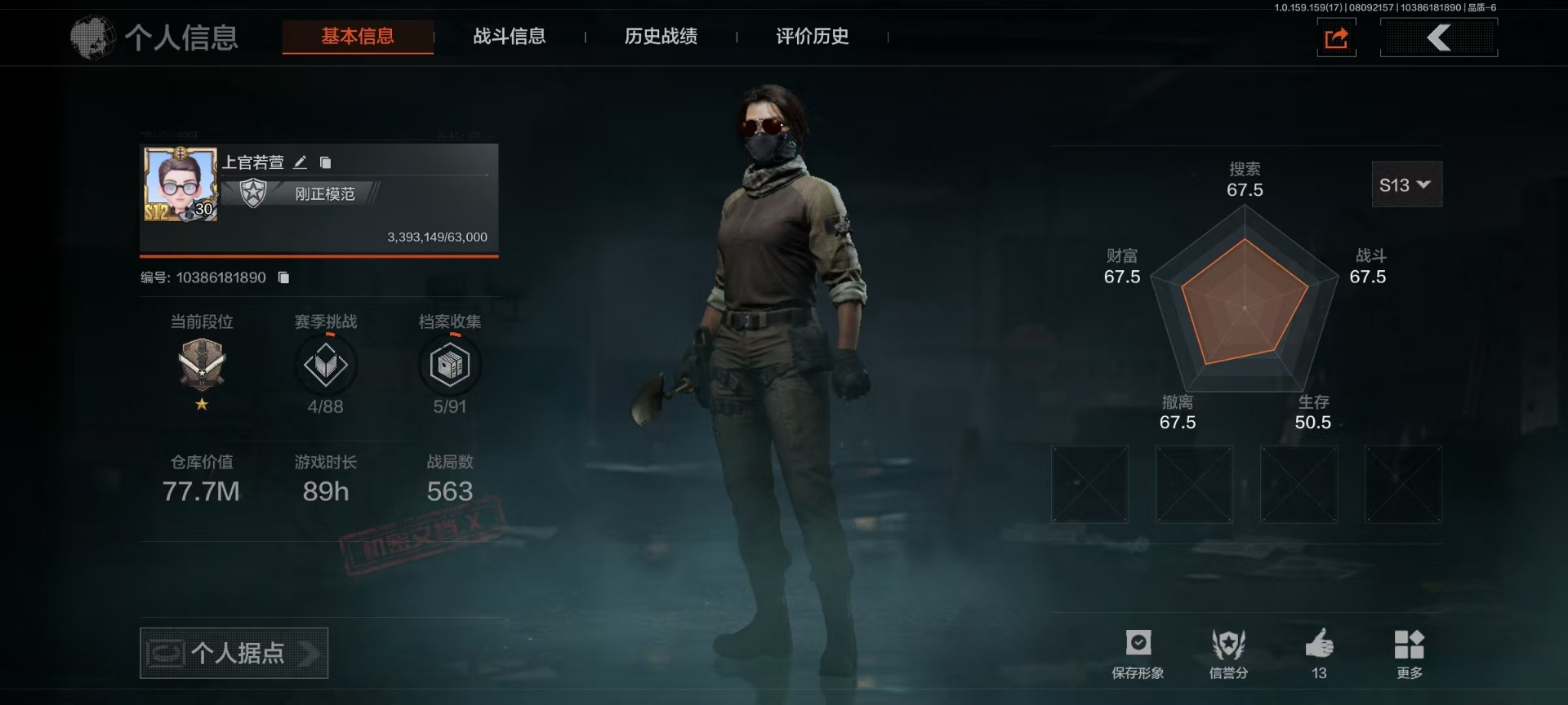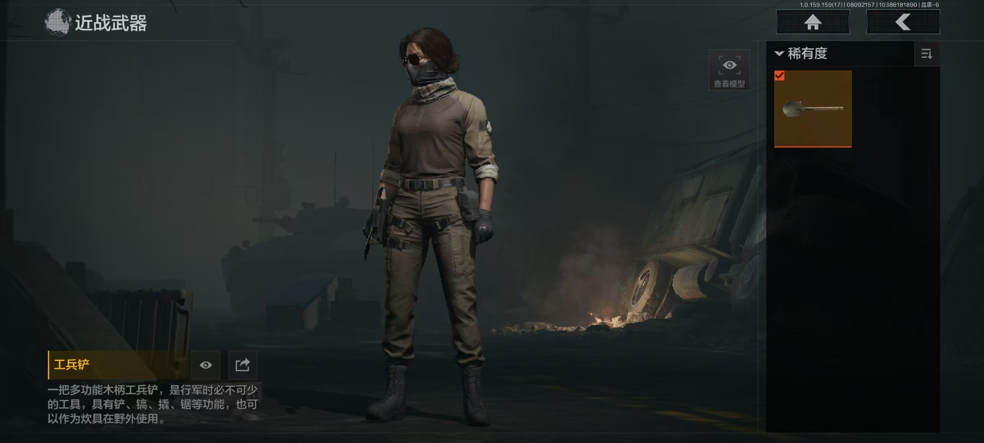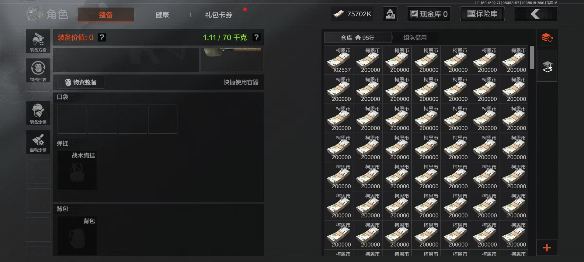 库存价值77.7 1近战武器 可修改实名 柯恩币数量:75702 近战武器:工兵铲